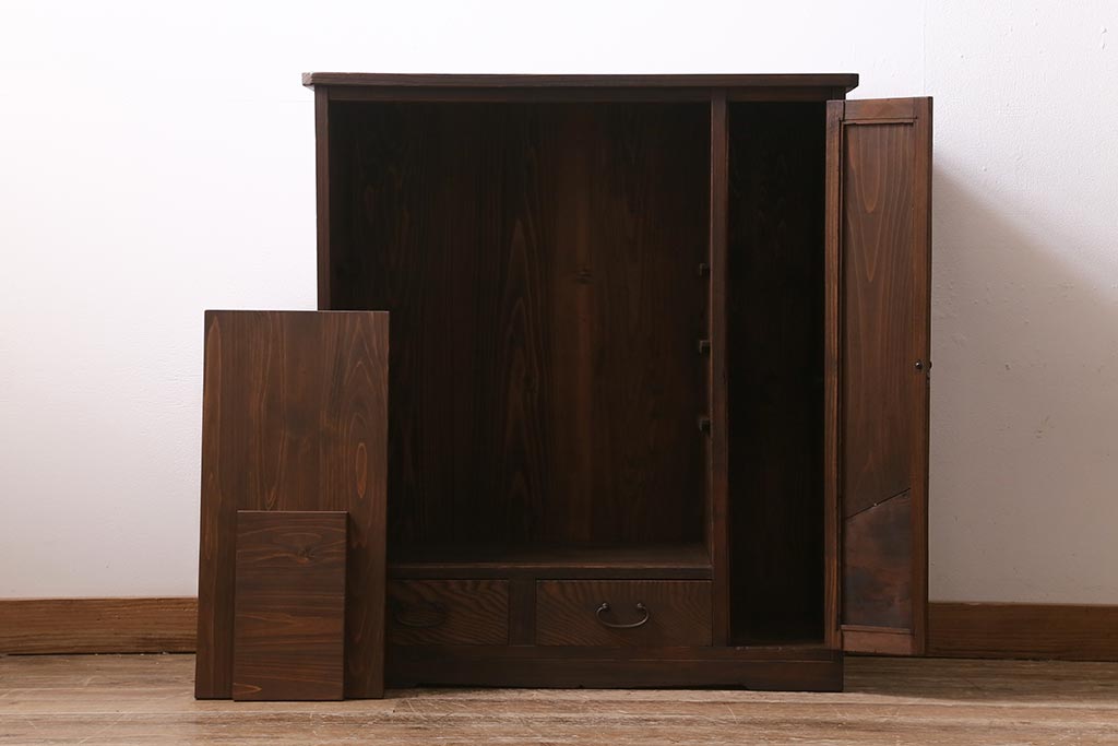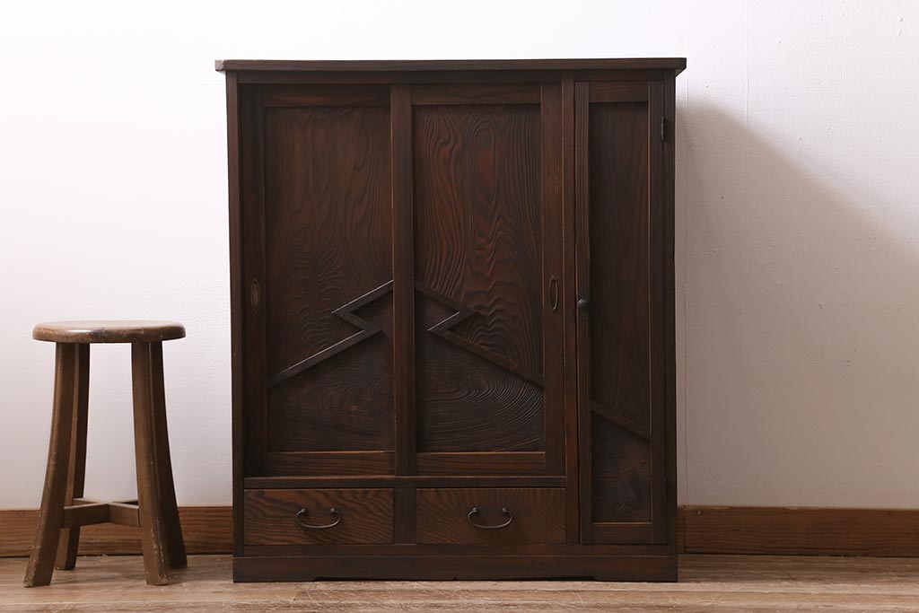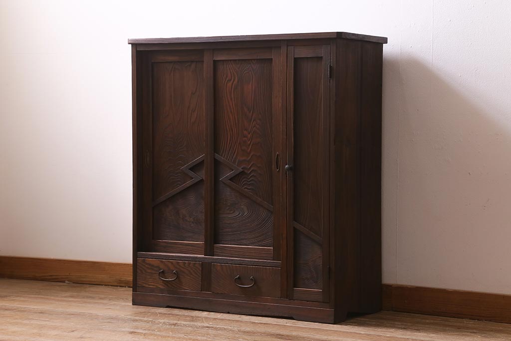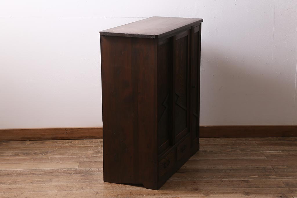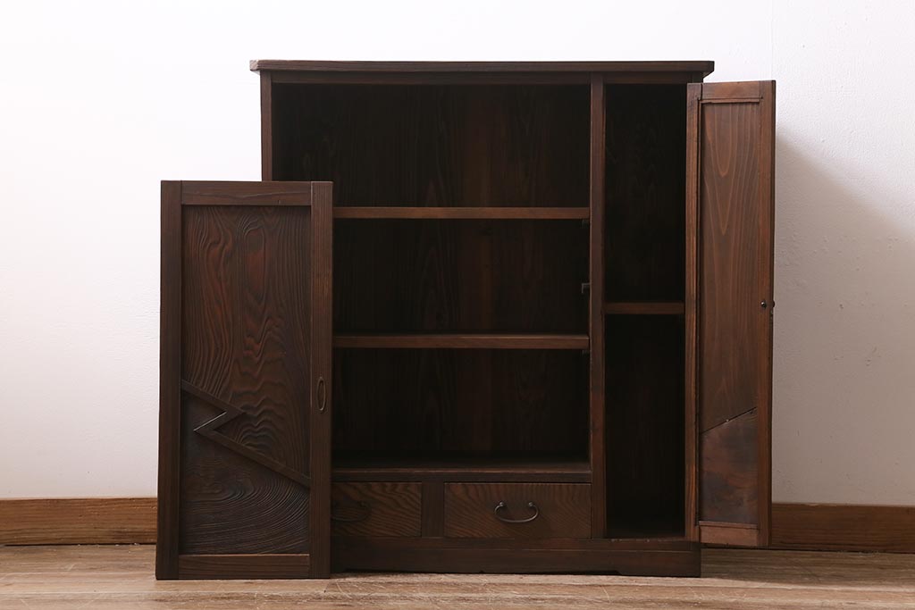 アンティーク家具 和製アンティーク 引き出し付き! 杢目の美しい杉材を使った昭和初期の下駄箱(収納棚、戸棚)(R-043356)