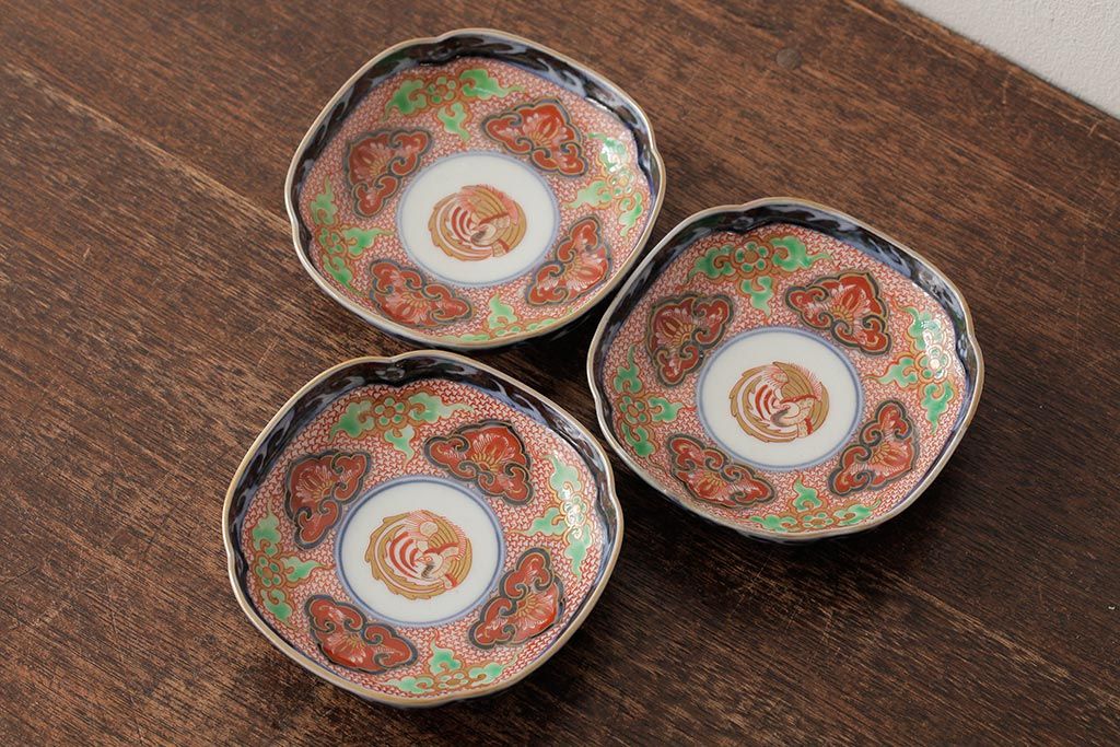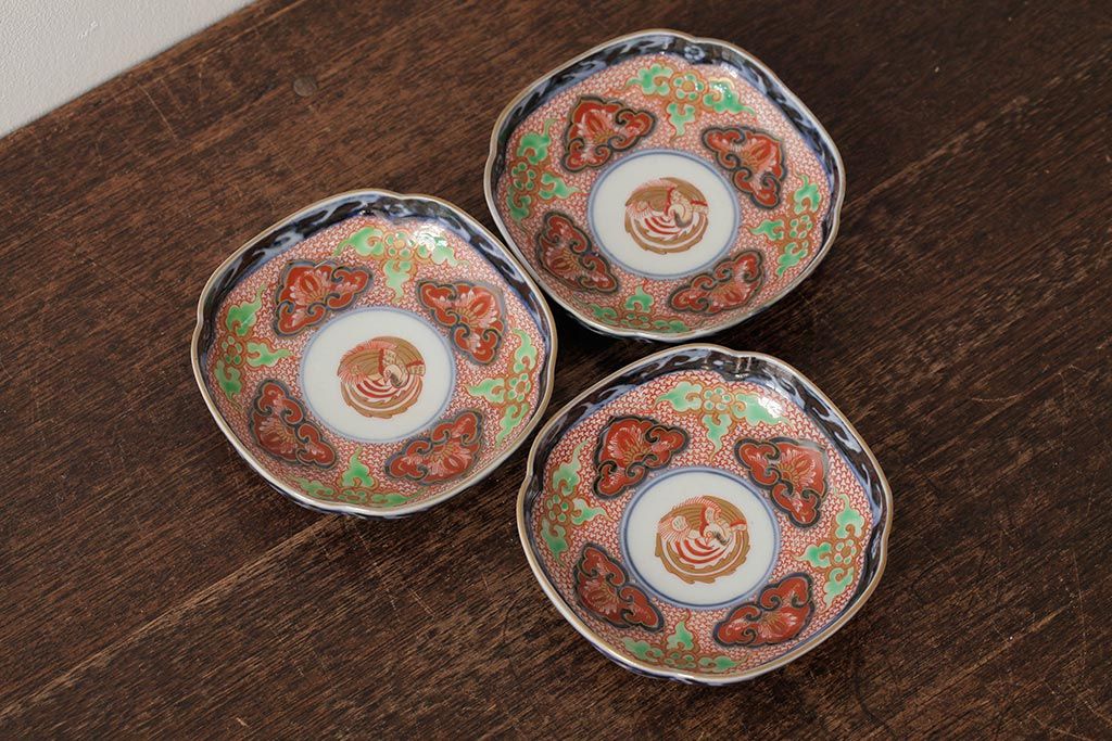 ラフジュ工房> 和食器・茶道具> 鉢 > アンティーク雑貨 江戸期 古伊万里 大明成化年製 色絵染付小皿3枚セット(和食器)(R-042699)