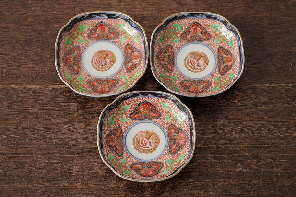 ラフジュ工房> 骨董・美術品> 骨董-陶磁器 > アンティーク雑貨 江戸期 古伊万里 大明成化年製 色絵染付小皿3枚セット(和食器)(R-042699)