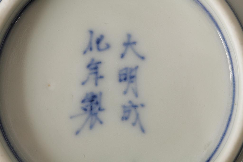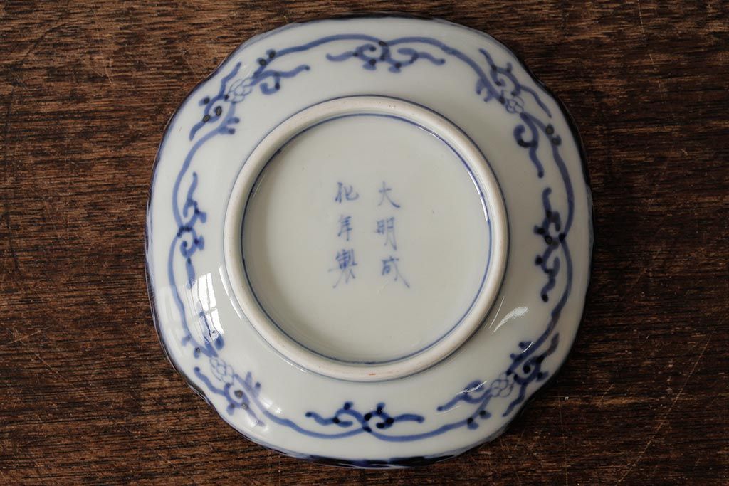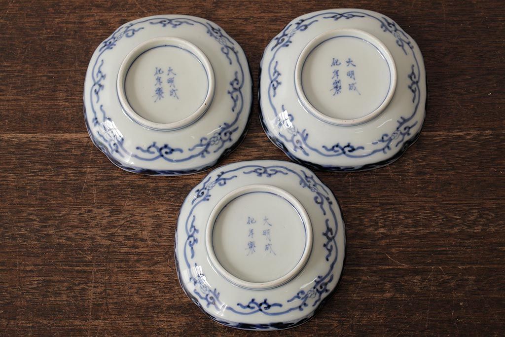 アンティーク雑貨 江戸期 古伊万里 大明成化年製 色絵染付小皿3枚セット(和食器)(R-042699)