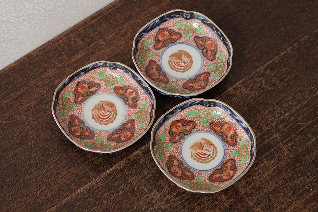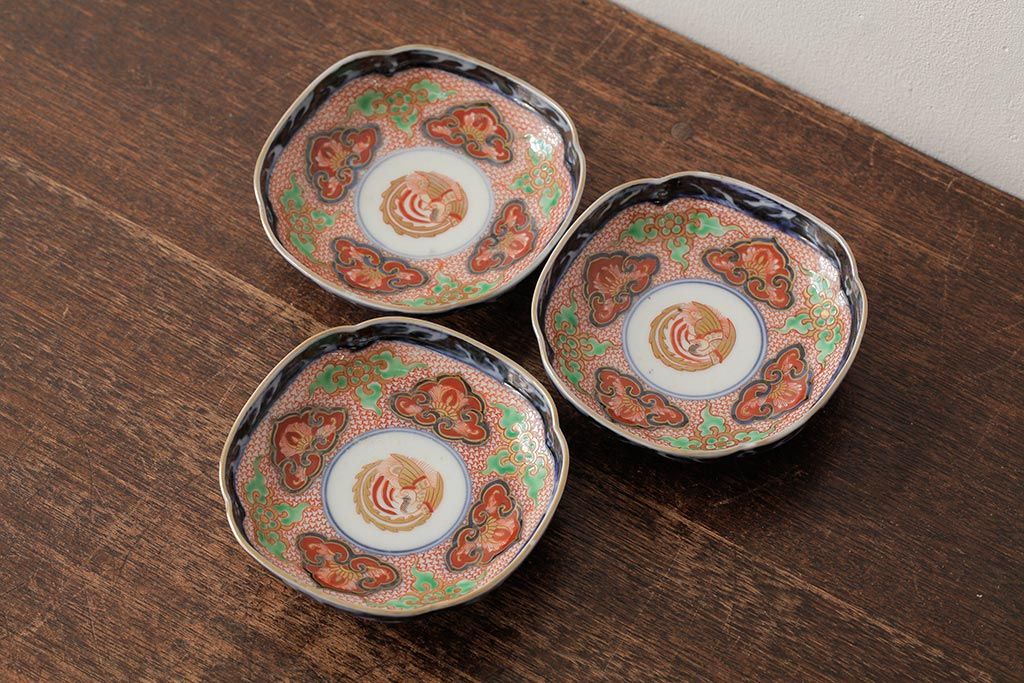 ラフジュ工房> 和食器・茶道具> 鉢 > アンティーク雑貨 江戸期 古伊万里 大明成化年製 色絵染付小皿3枚セット(和食器)(R-042700)