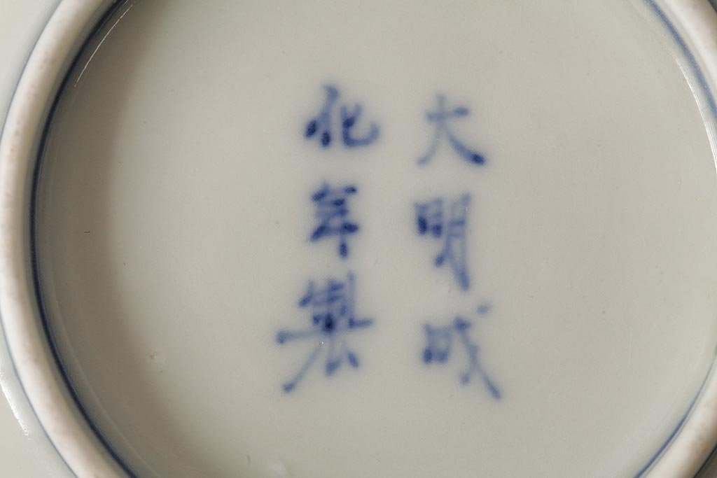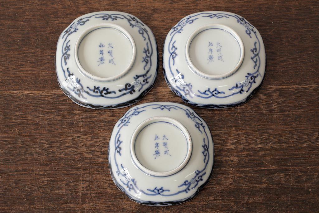 アンティーク雑貨 江戸期 古伊万里 大明成化年製 色絵染付小皿3枚セット(和食器)(R-042700)