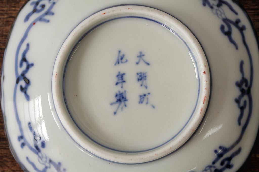 ラフジュ工房> 和食器・茶道具> 皿 > アンティーク雑貨 江戸期 古伊万里 大明成化年製 色絵染付小皿3枚セット(和食器)(R-042700)