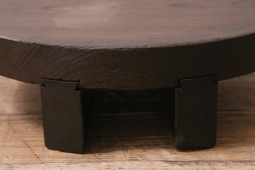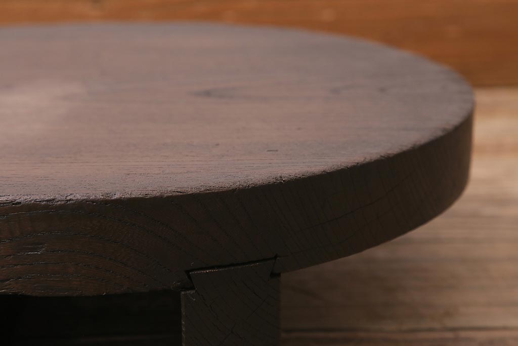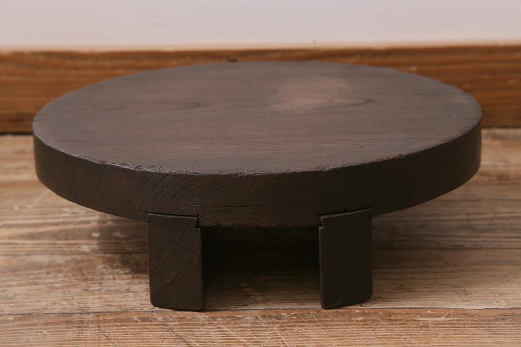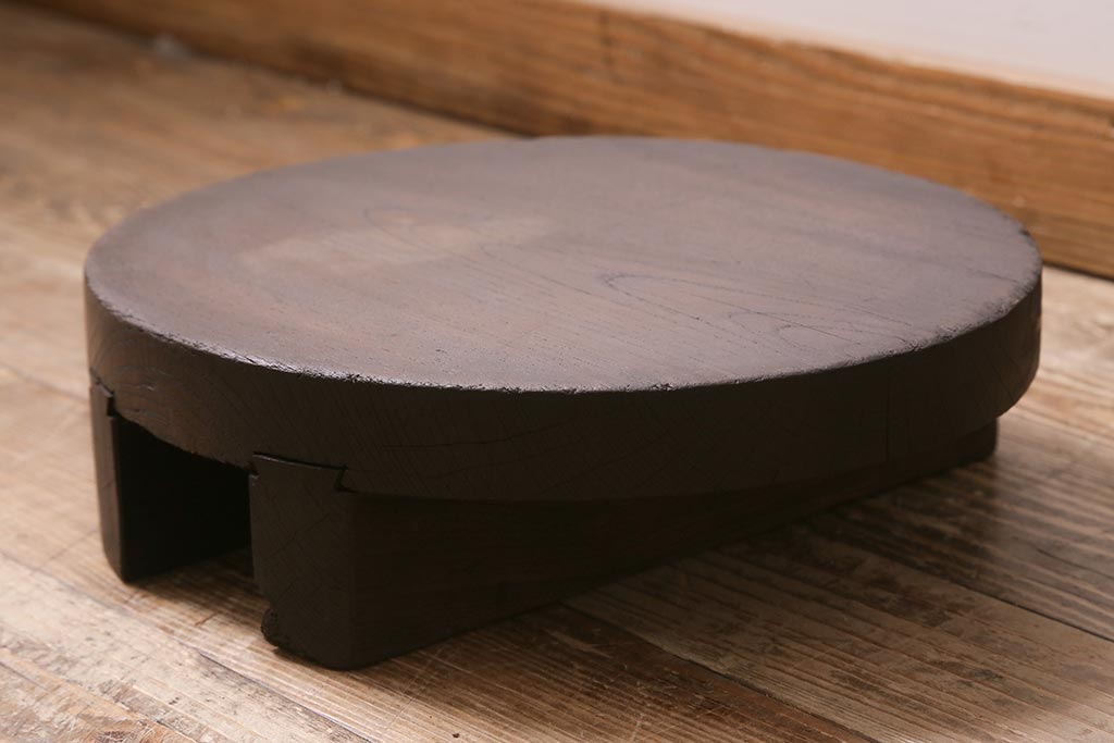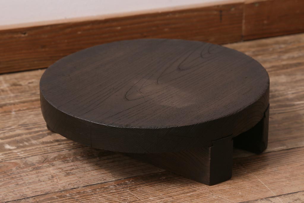 花台・飾り台 > アンティーク雑貨 総ケヤキ材 花台にぴったりな古い味わいのある釜の蓋(飾り台、飾り棚)(R-043379)