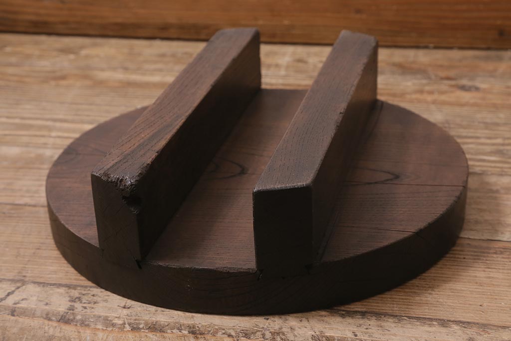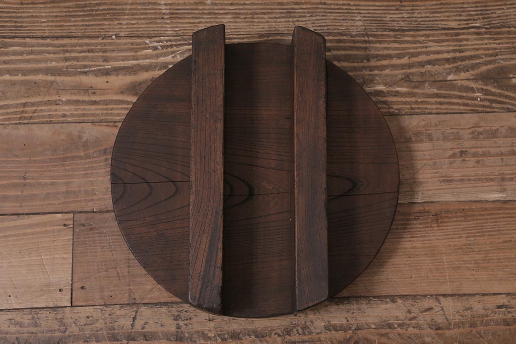 アンティーク雑貨 総ケヤキ材 花台にぴったりな古い味わいのある釜の蓋(飾り台、飾り棚)(R-043379)です。
