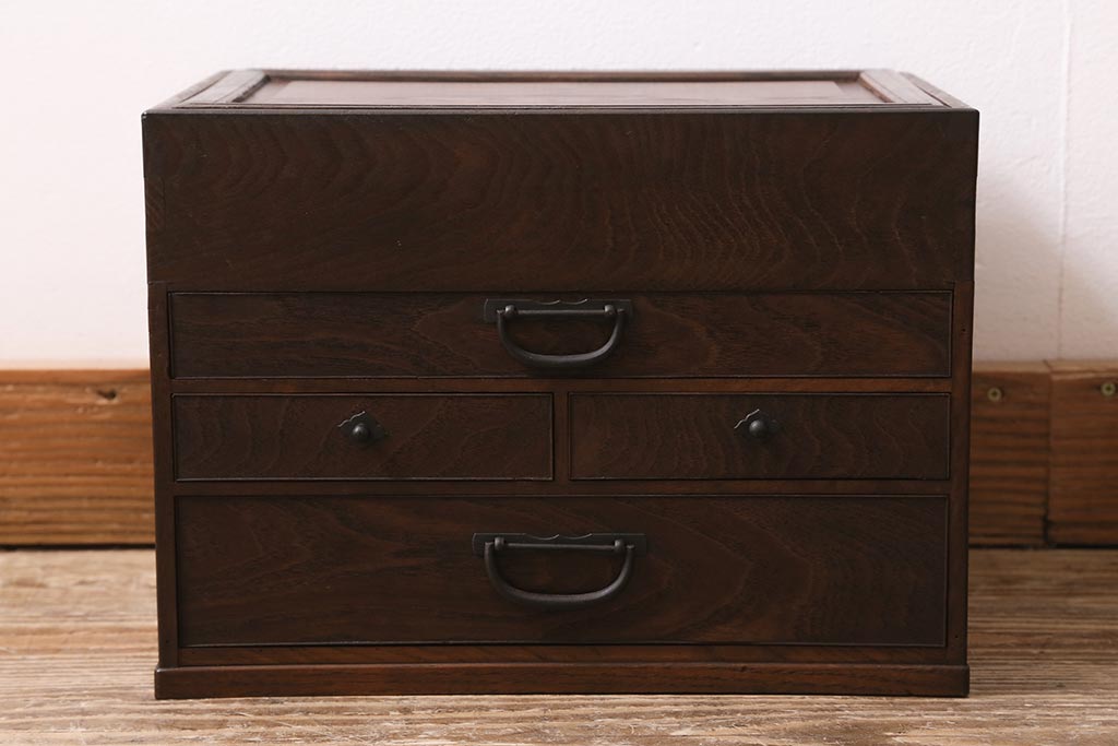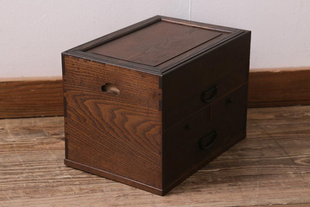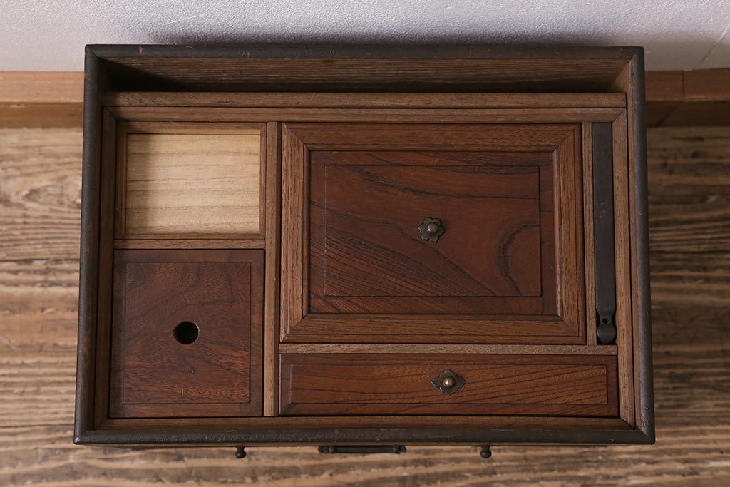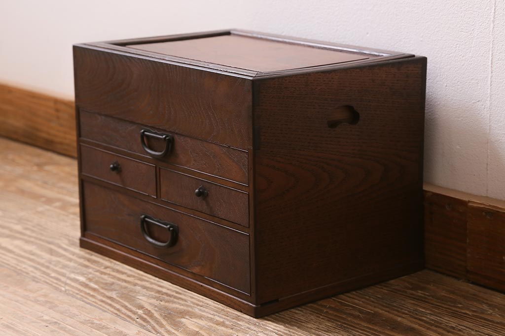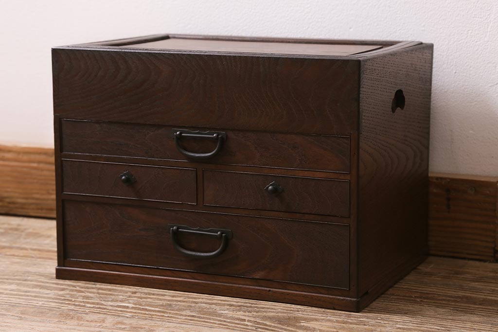 アンティーク家具 桑・欅・桐材 真鍮金具 上手物の小引き出し(裁縫箱)(R-043383)