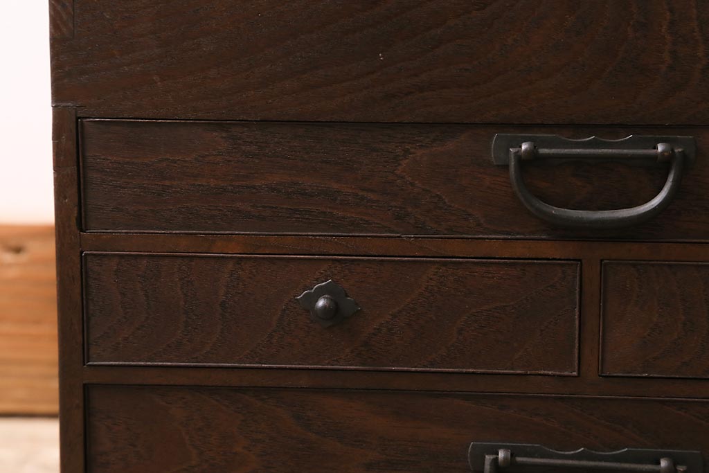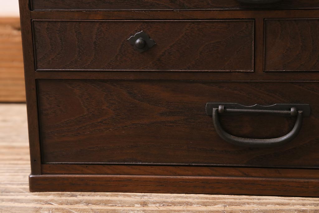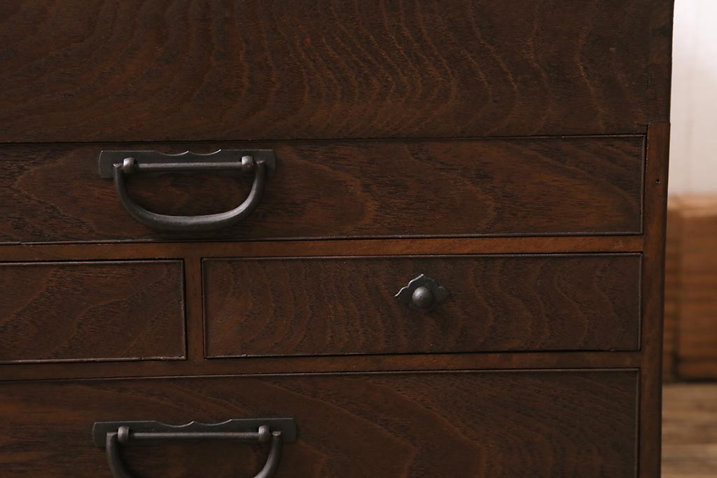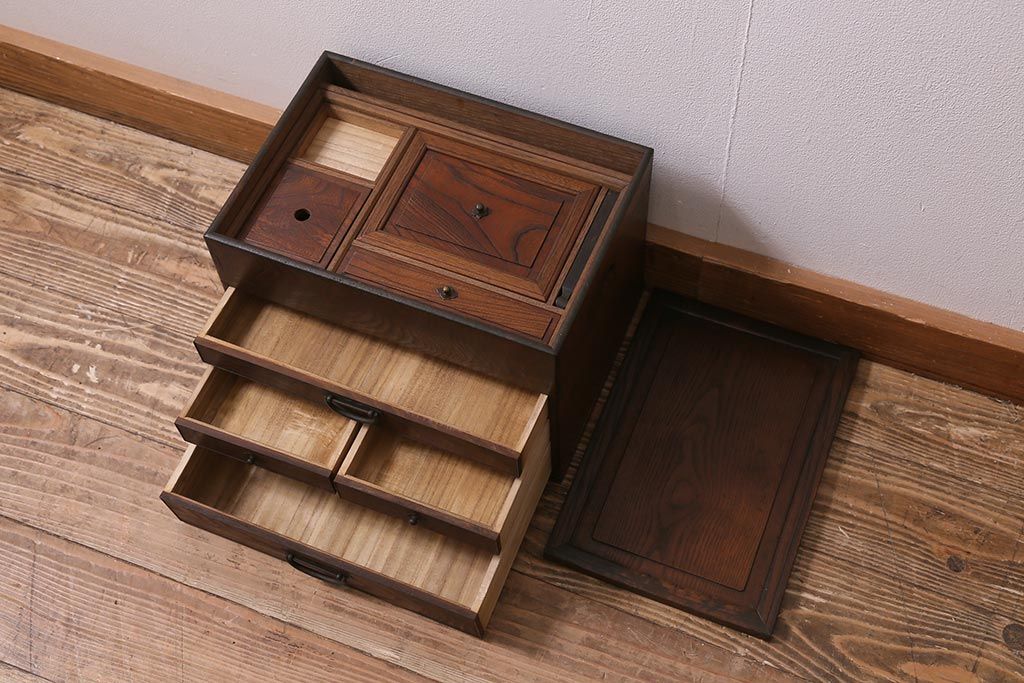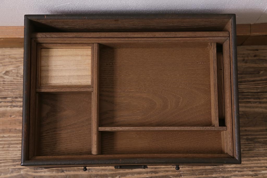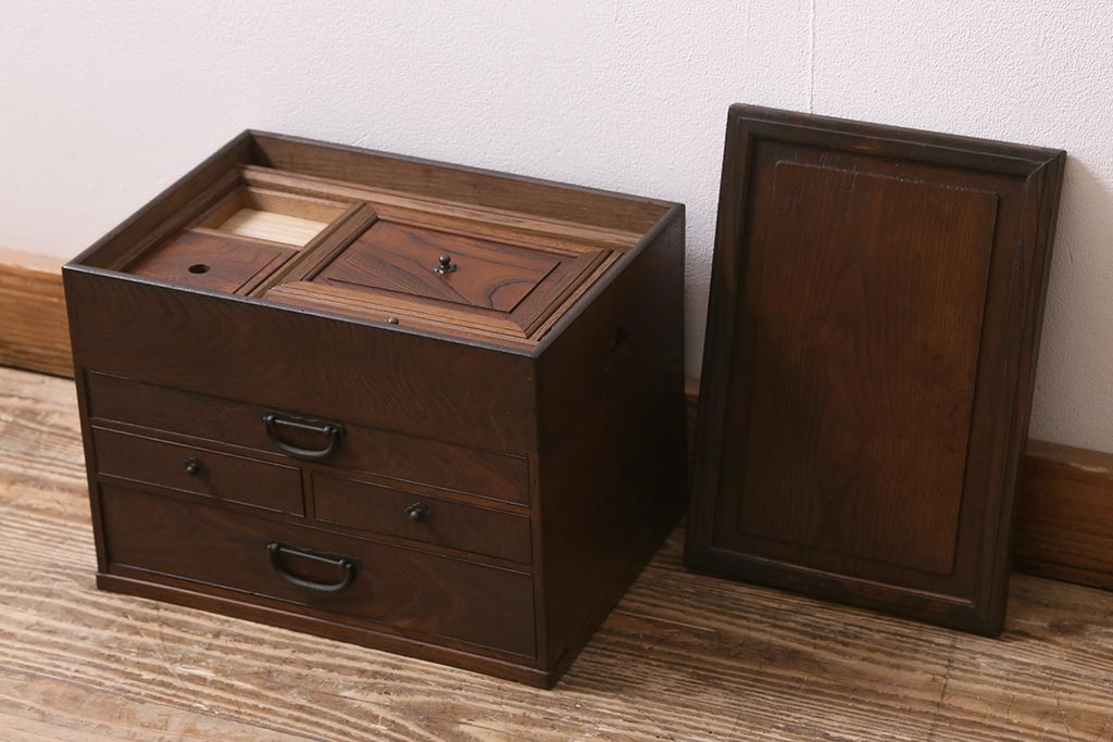 アンティーク家具 桑・欅・桐材 真鍮金具 上手物の小引き出し(裁縫箱)(R-043383)