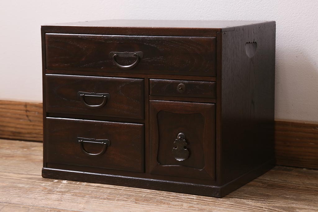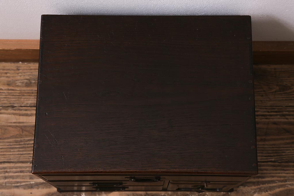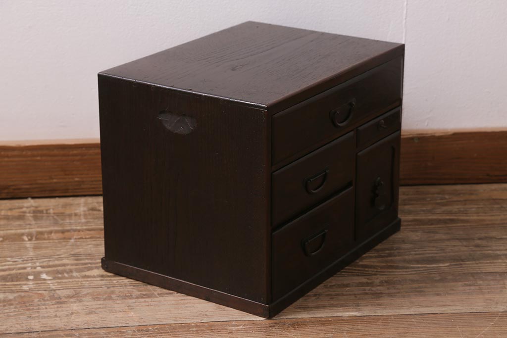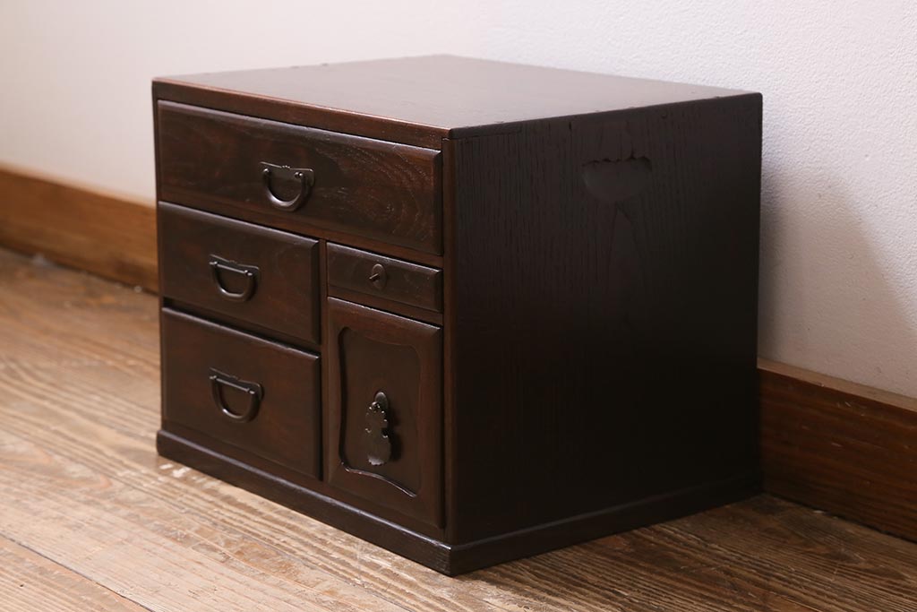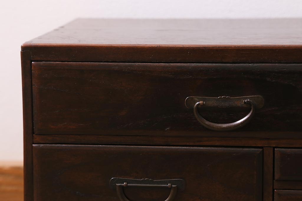 アンティーク家具 指物家具 総桑材 真鍮金具 上質な和の雰囲気漂う小引き出し(小物収納、卓上収納)(R-043384)です。
