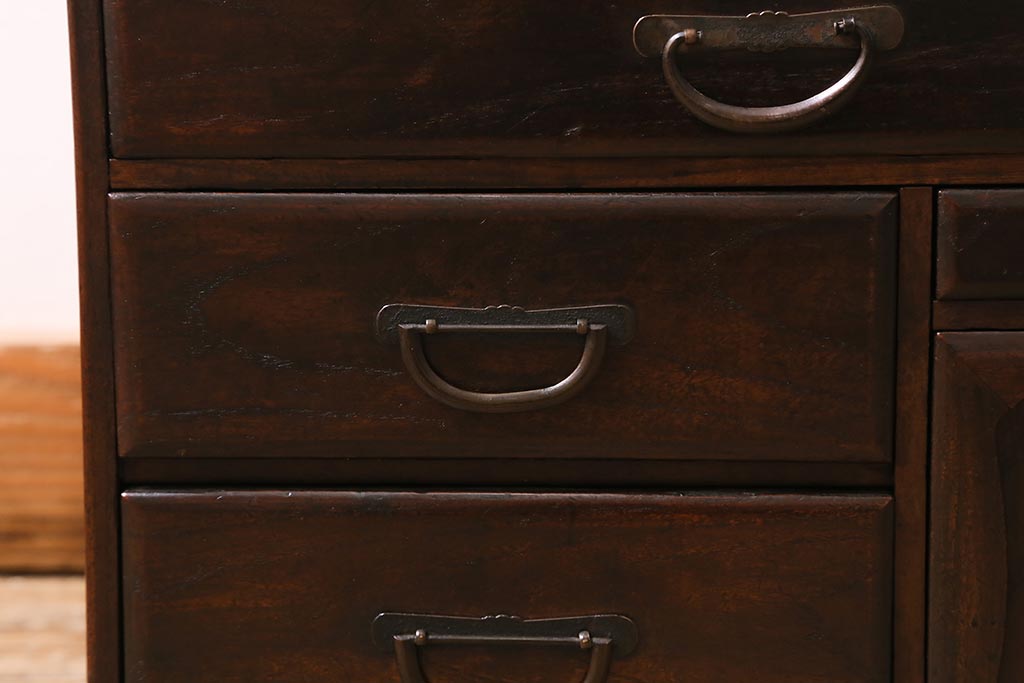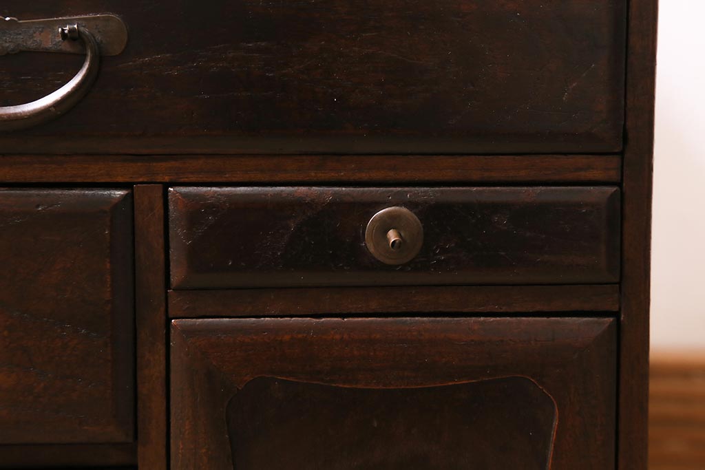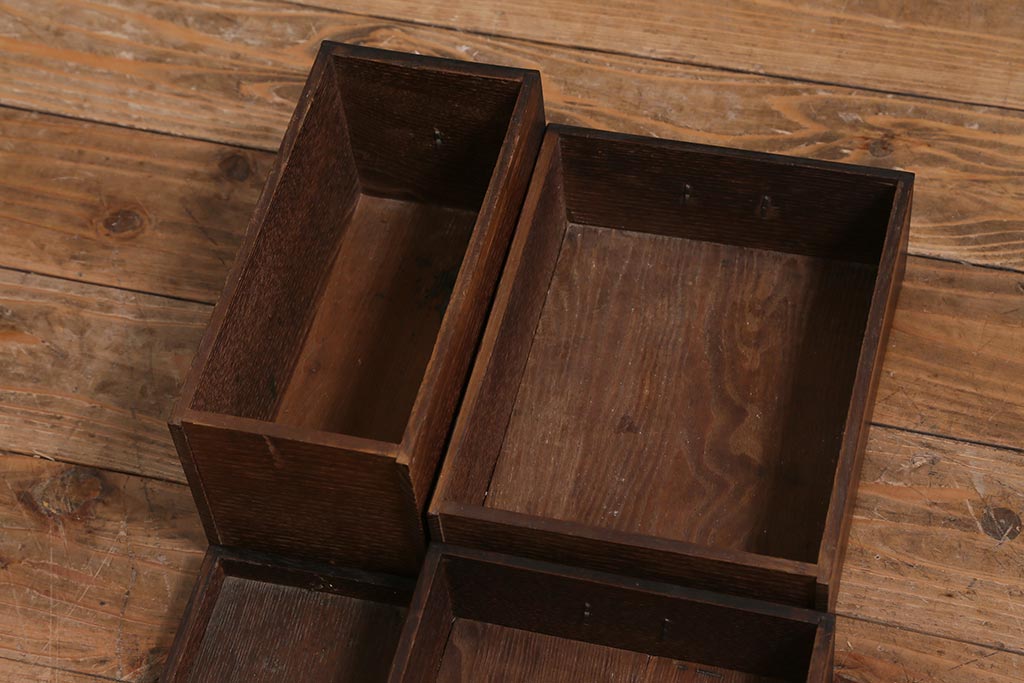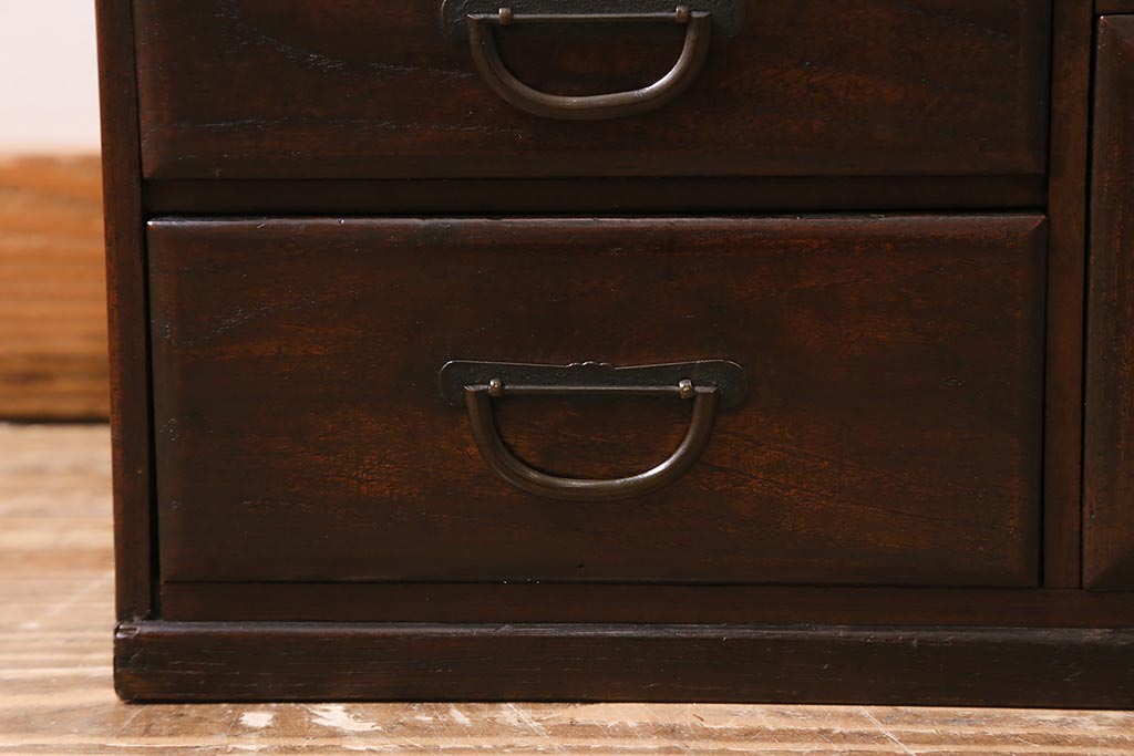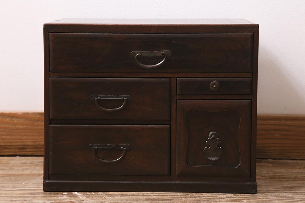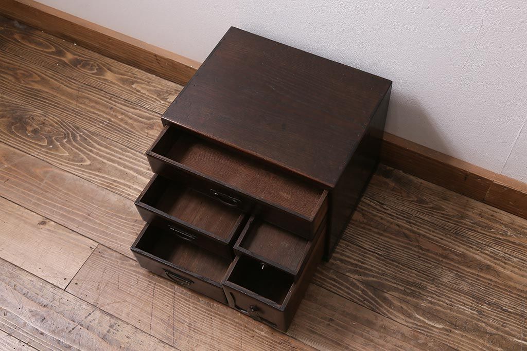 アンティーク家具 指物家具 総桑材 真鍮金具 上質な和の雰囲気漂う小引き出し(小物収納、卓上収納)(R-043384)です。