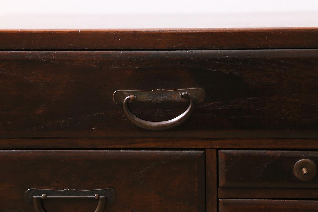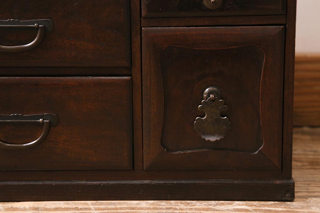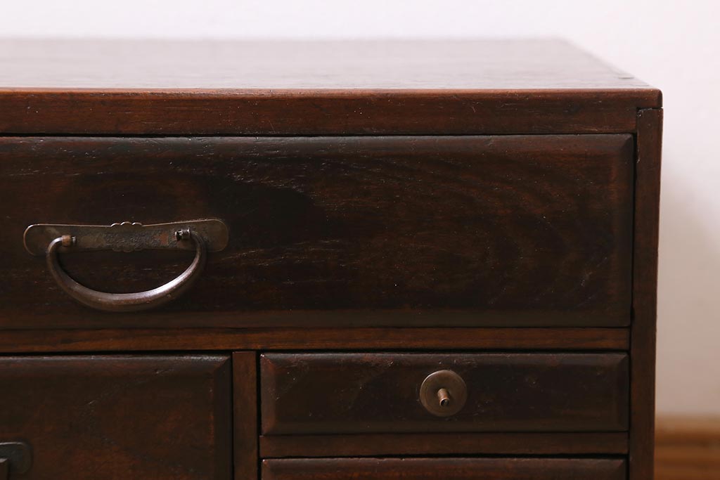 アンティーク家具 指物家具 総桑材 真鍮金具 上質な和の雰囲気漂う小引き出し(小物収納、卓上収納)(R-043384)