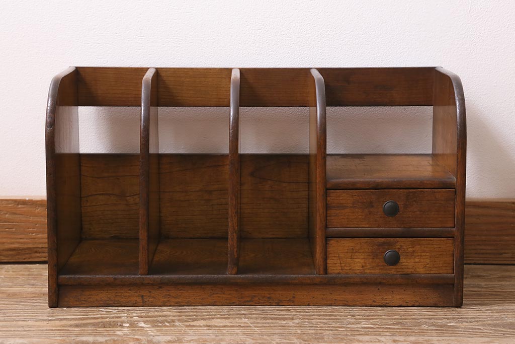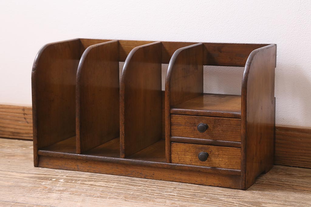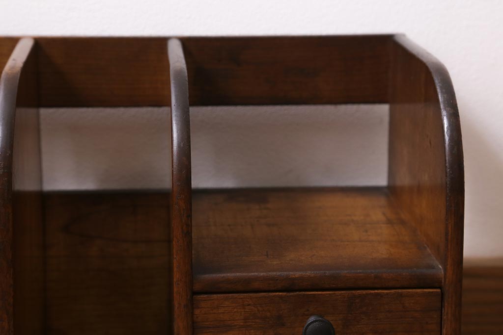 アンティーク雑貨 引き出し付き 栓材 木製の本立て(ブックスタンド)(R-043378)