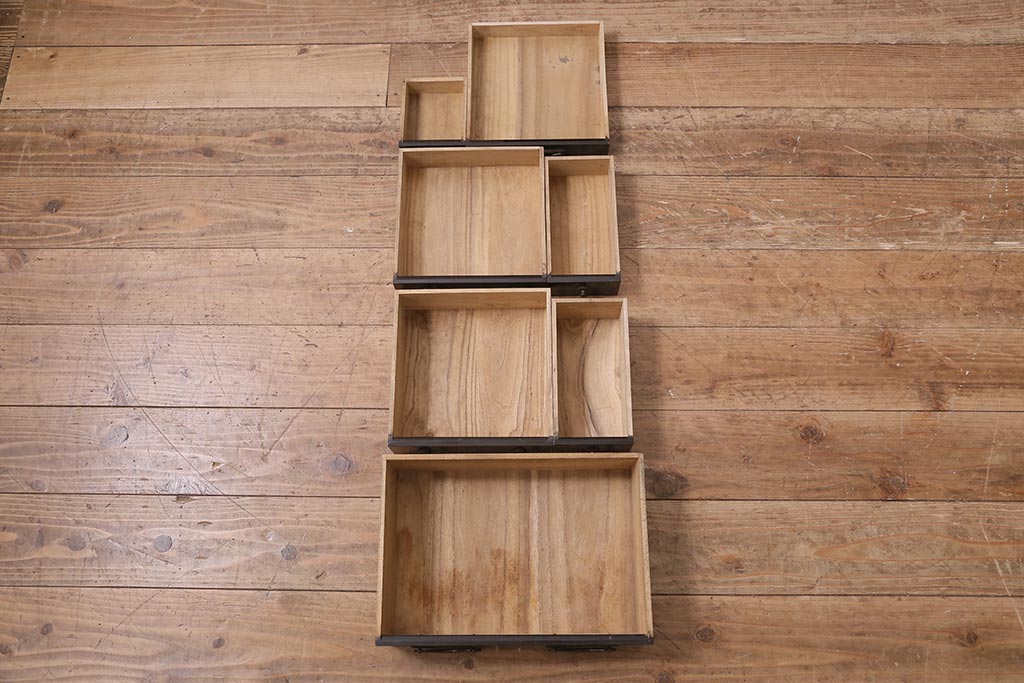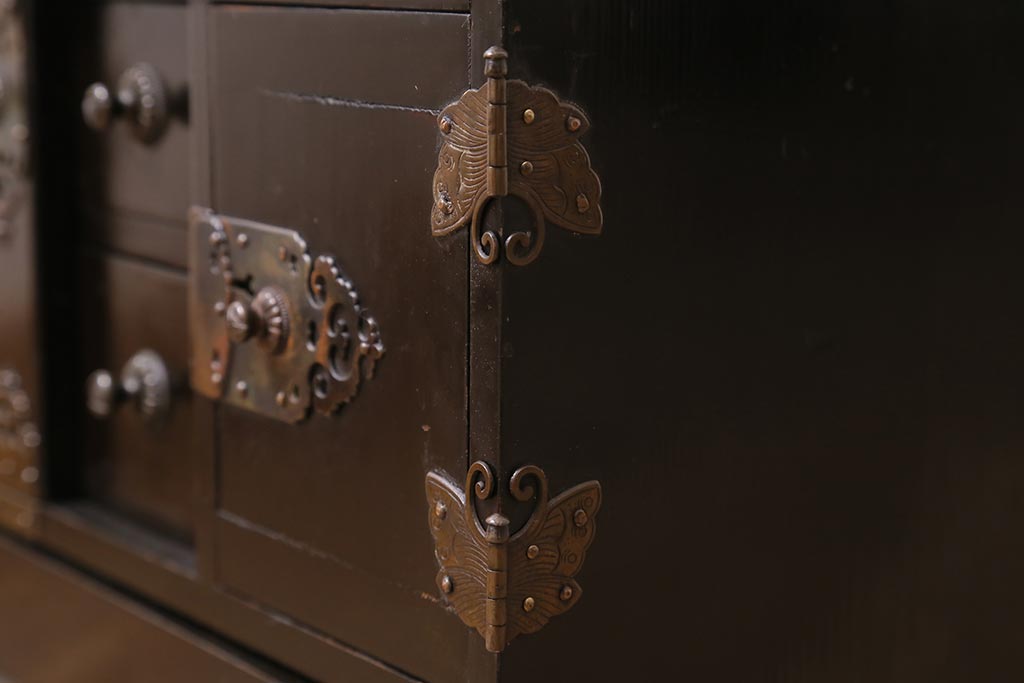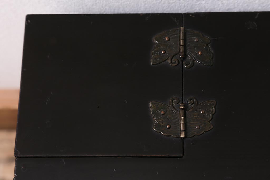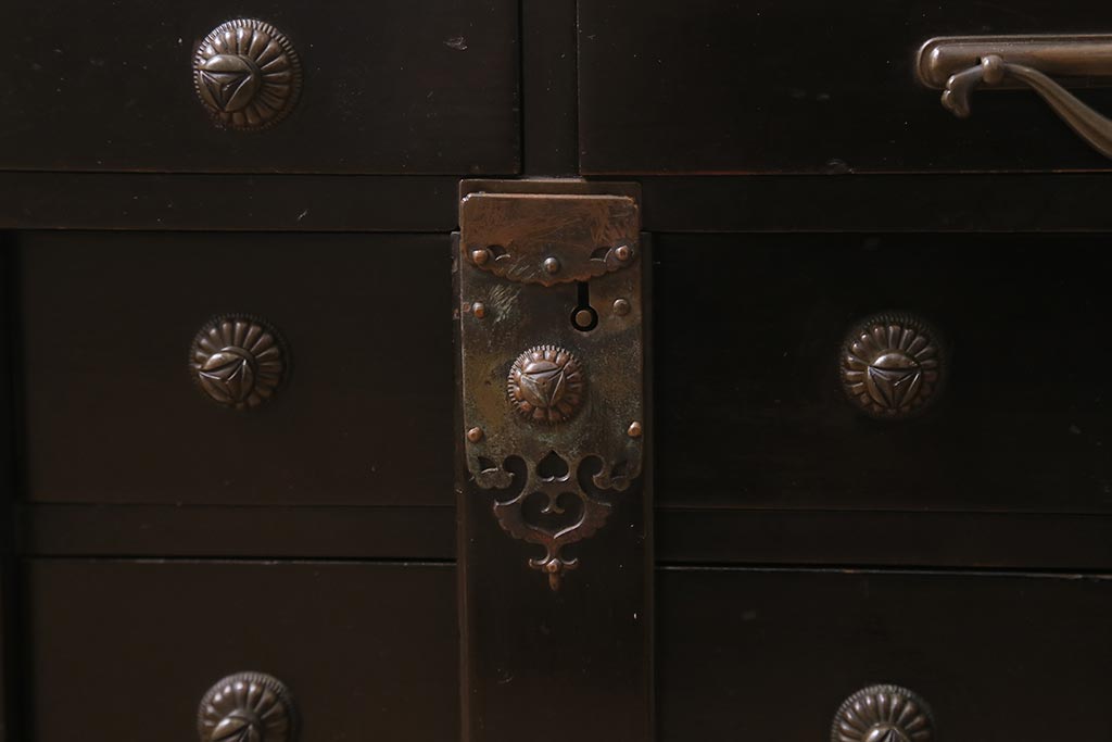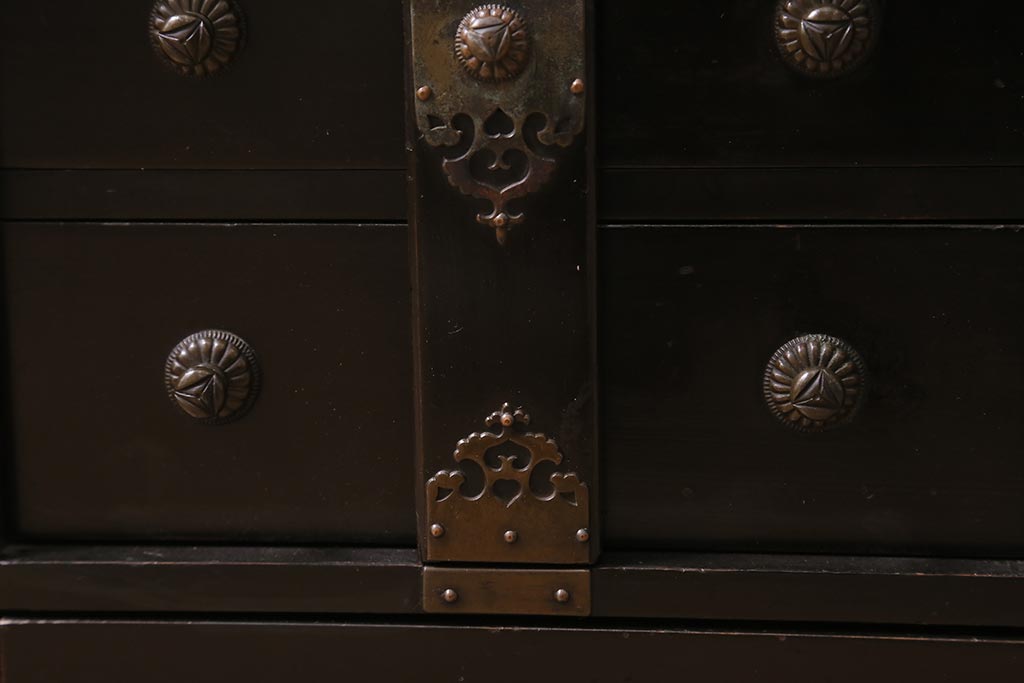 ラフジュ工房> 小物収納・トランク > アンティーク家具 工芸家具 桐材 黒漆 凝った真鍮金具が高級感漂う上手物の裁縫箱(小引き出し)(R-043322)