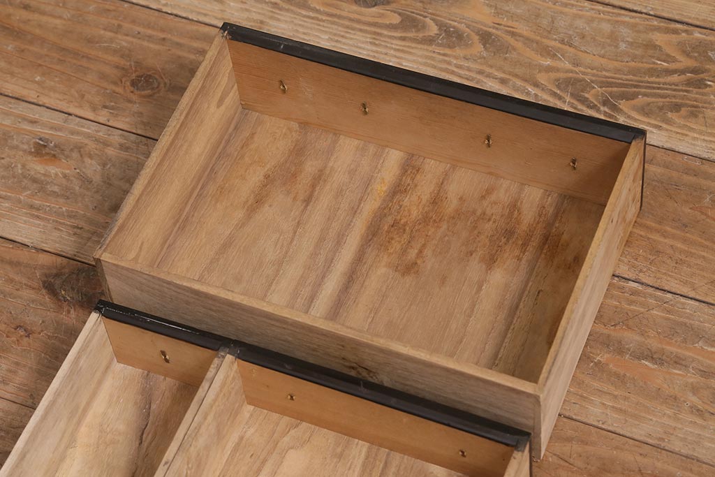 ラフジュ工房> 小物収納・トランク> 裁縫箱・ソーイングボックス > アンティーク家具 工芸家具 桐材 黒漆 凝った真鍮金具が高級感漂う上手物の裁縫箱(小引き出し)(R-043322)