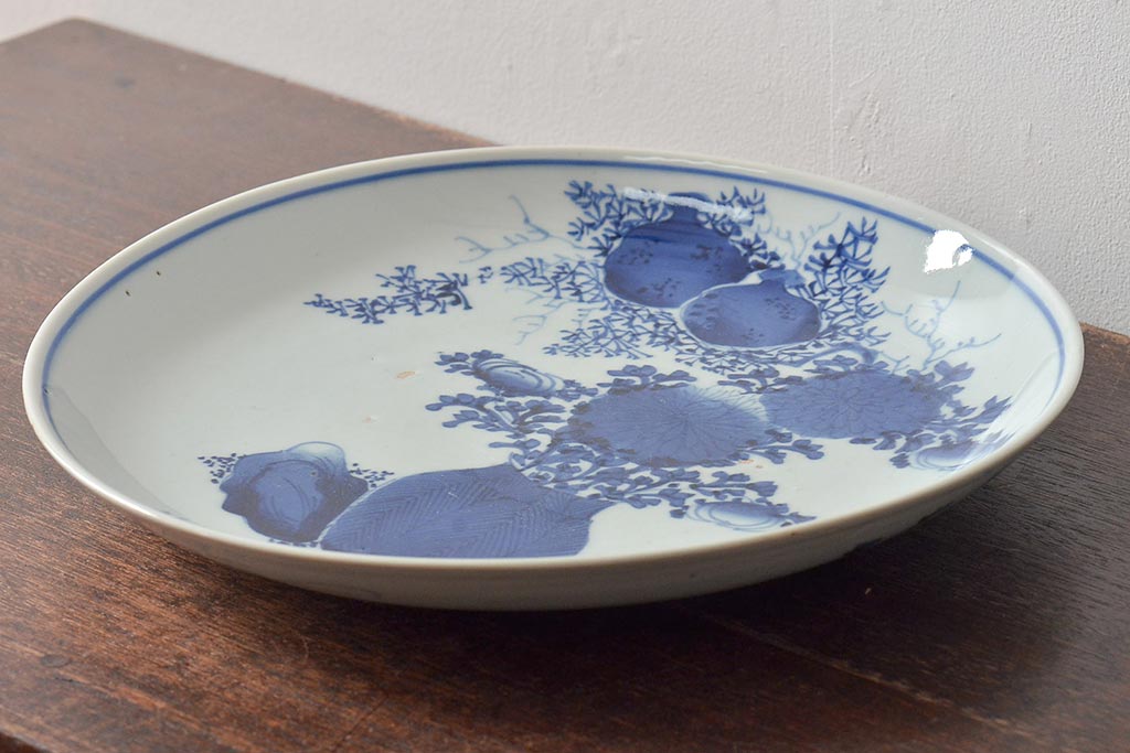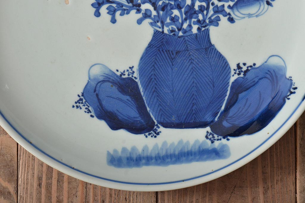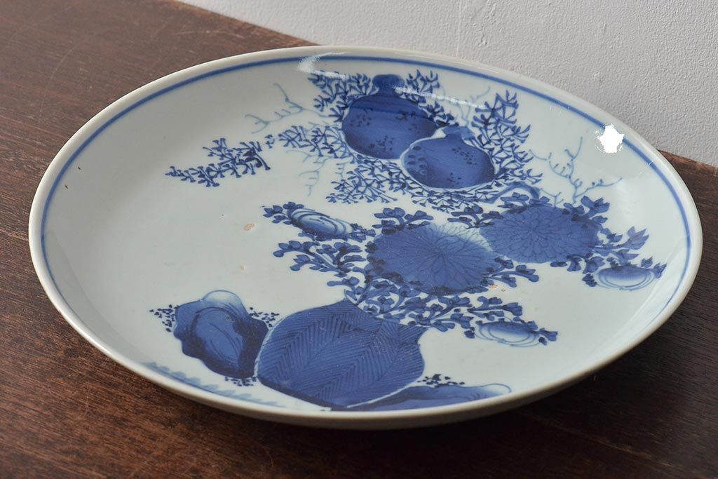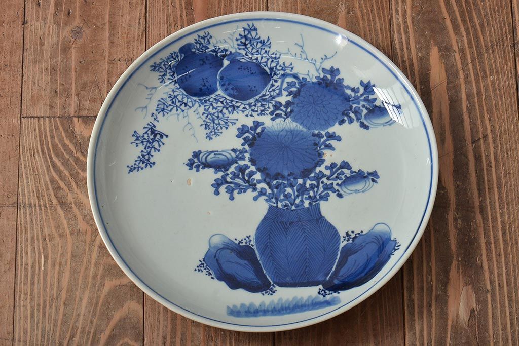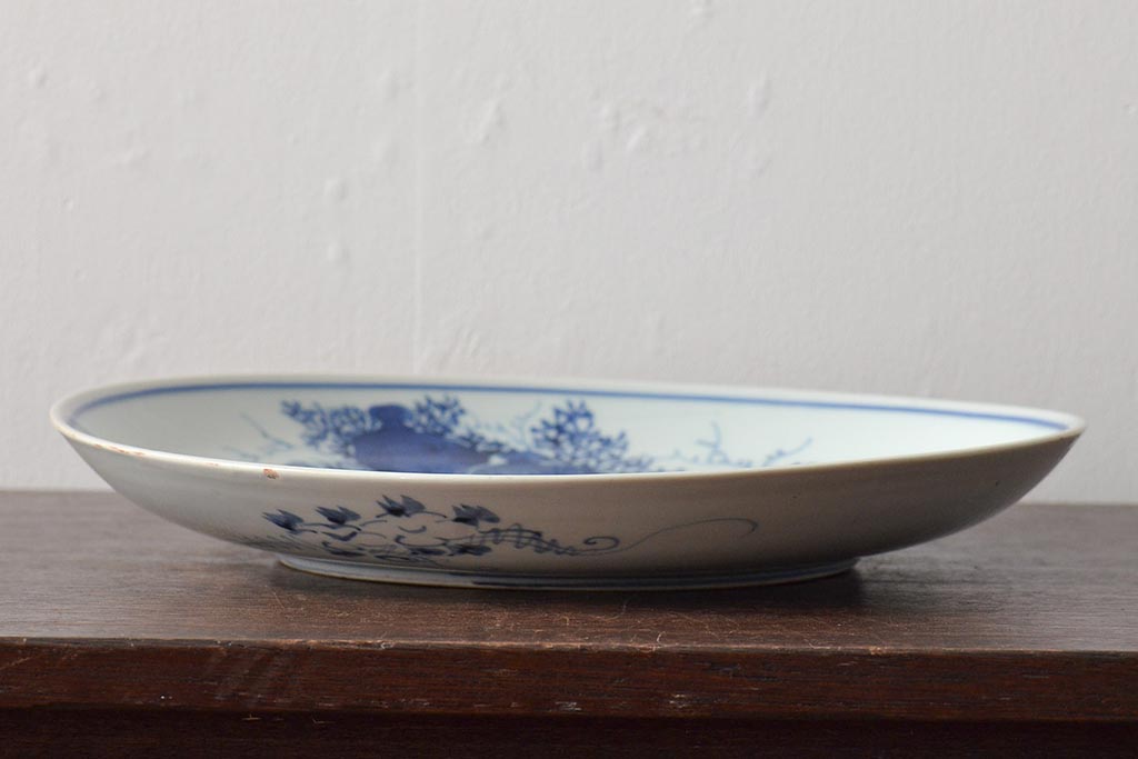 ラフジュ工房> 和食器・茶道具 > アンティーク雑貨 江戸期 古伊万里 花籠図 染付 尺皿(大皿)(R-043066)