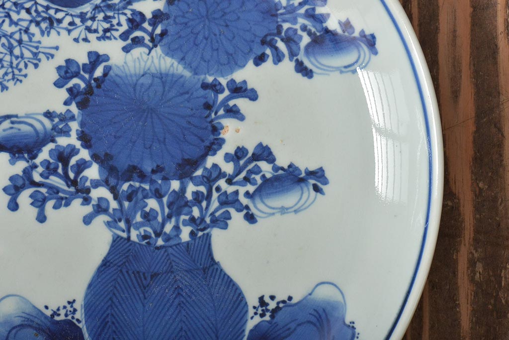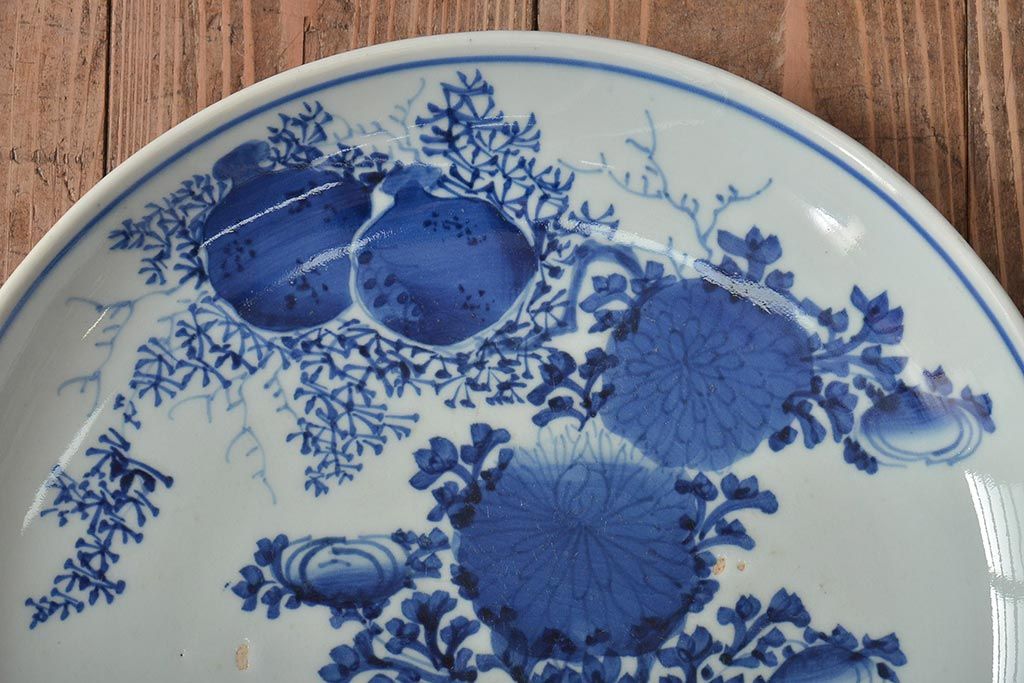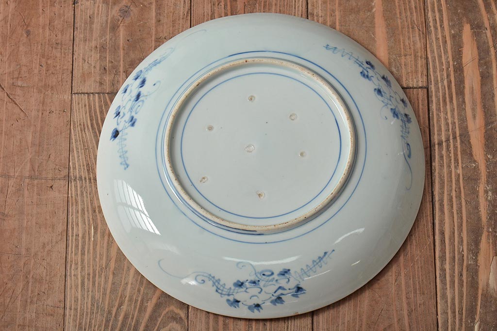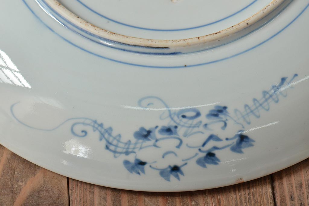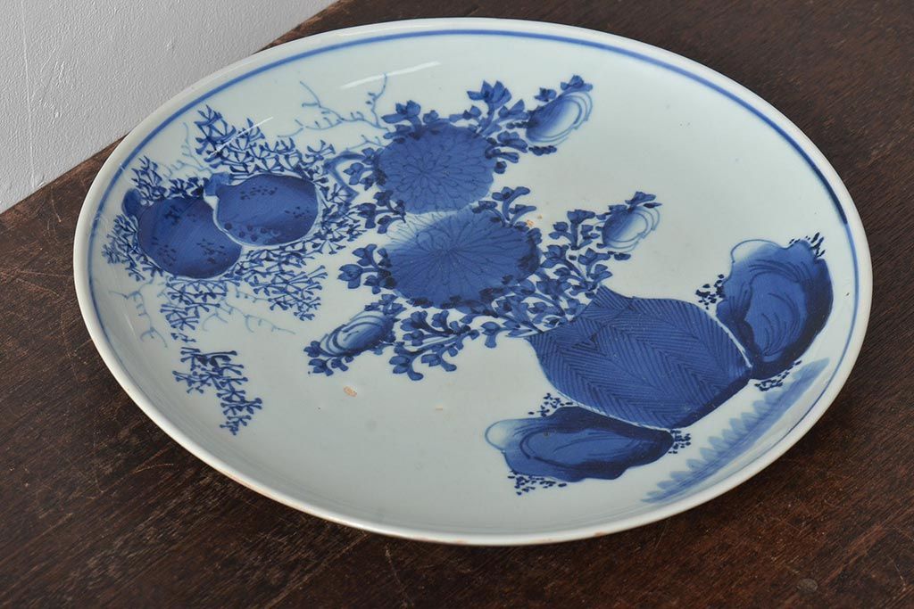 ラフジュ工房> 和食器・茶道具 > アンティーク雑貨 江戸期 古伊万里 花籠図 染付 尺皿(大皿)(R-043066)