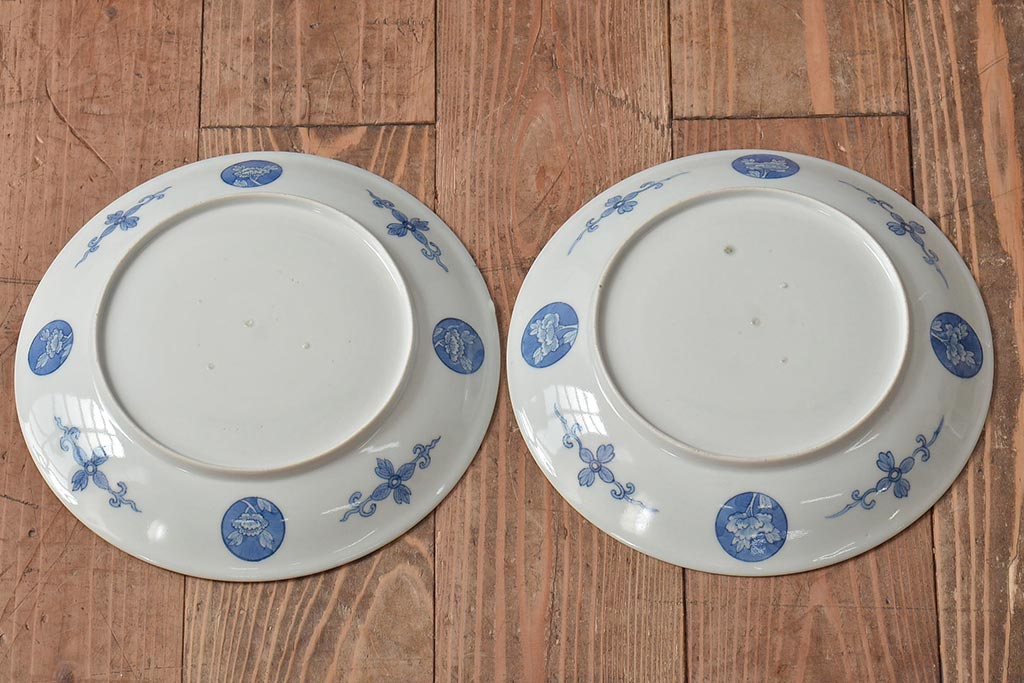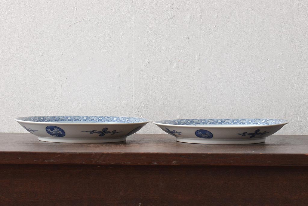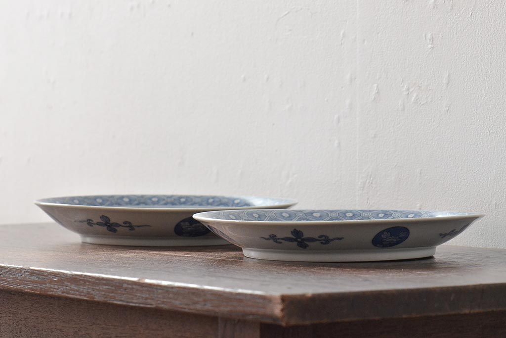ラフジュ工房> 和食器・茶道具 > アンティーク雑貨 明治期 楼閣・山水・人物図 染付 八寸皿2枚セット(中皿、伊万里)(R-043070)