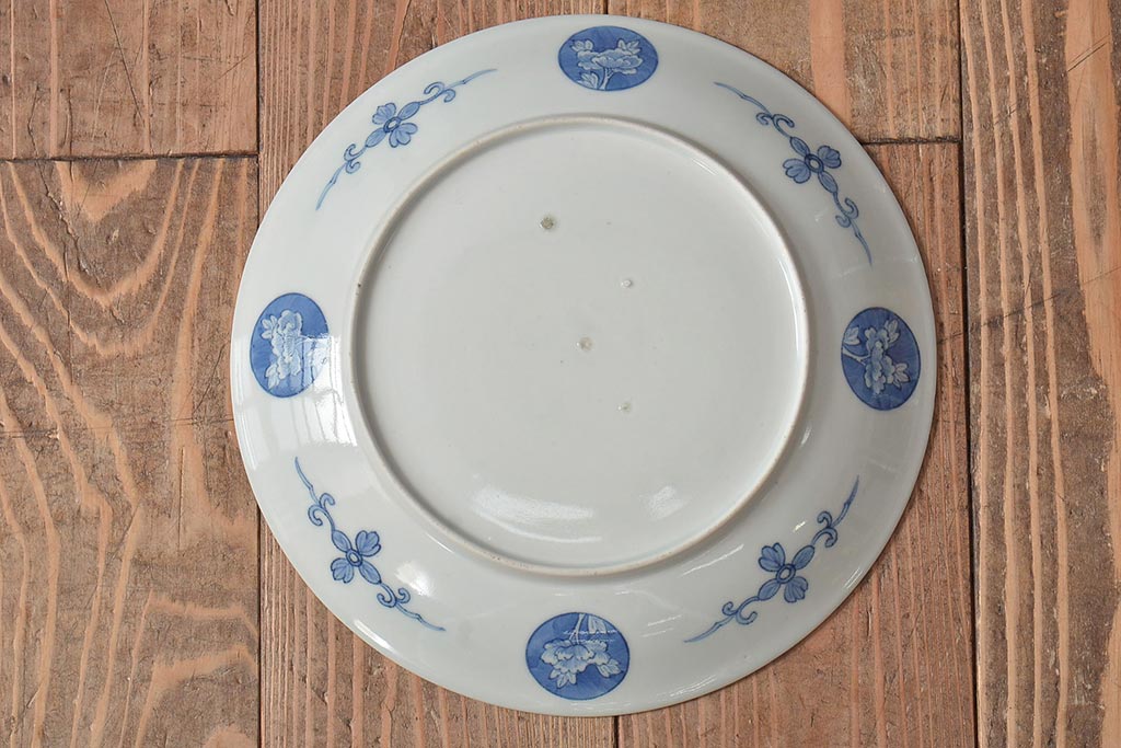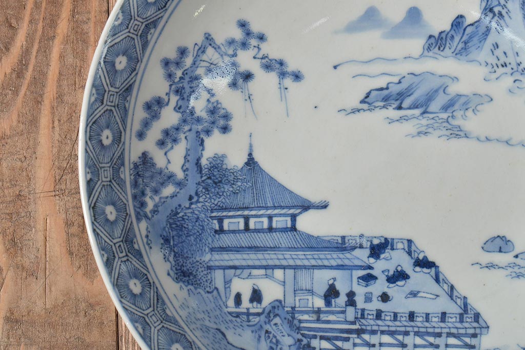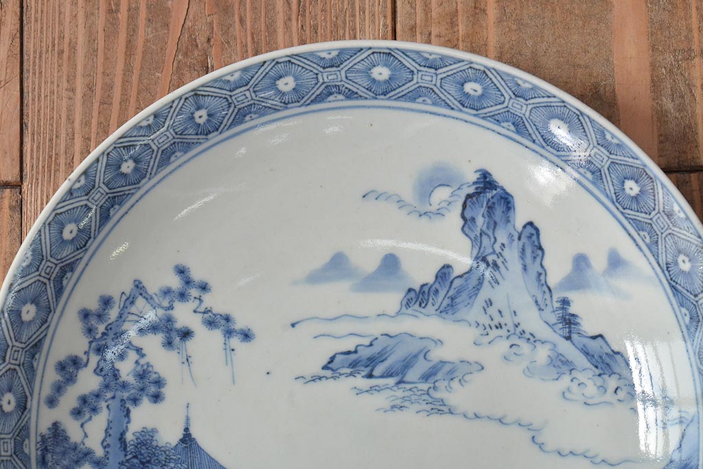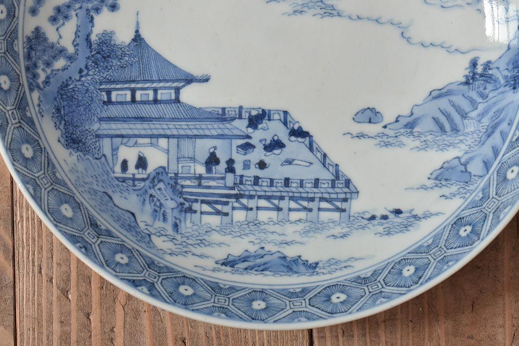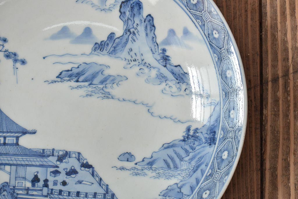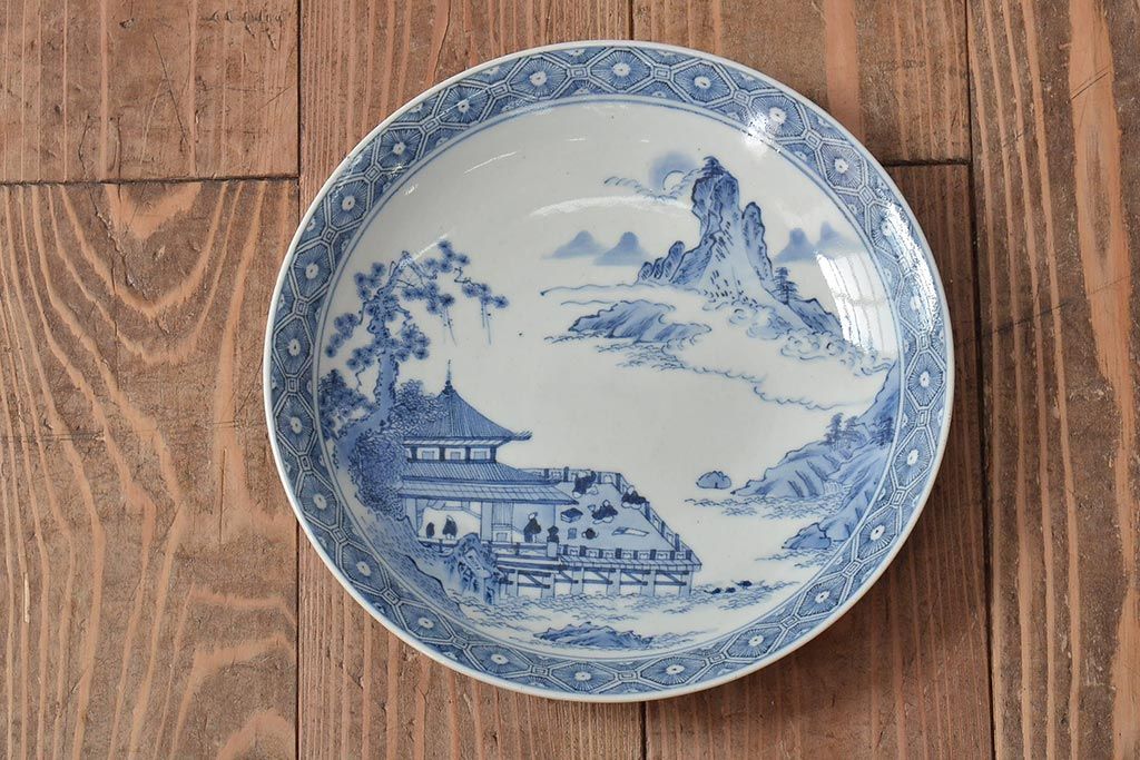 ラフジュ工房> 和食器・茶道具> 皿 > アンティーク雑貨 明治期 楼閣・山水・人物図 染付 八寸皿2枚セット(中皿、伊万里)(R-043070)