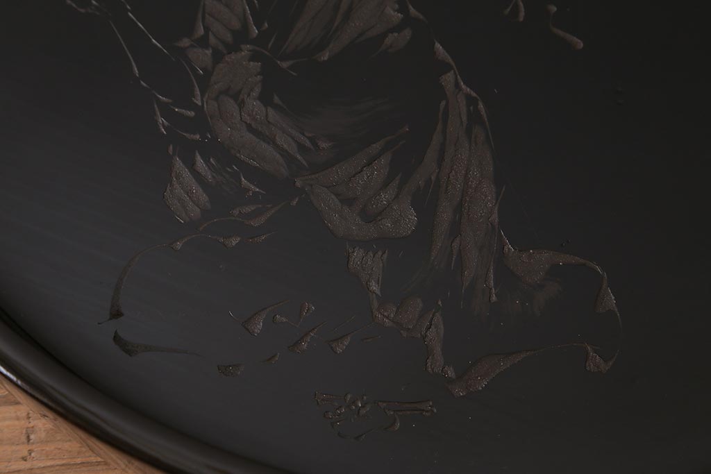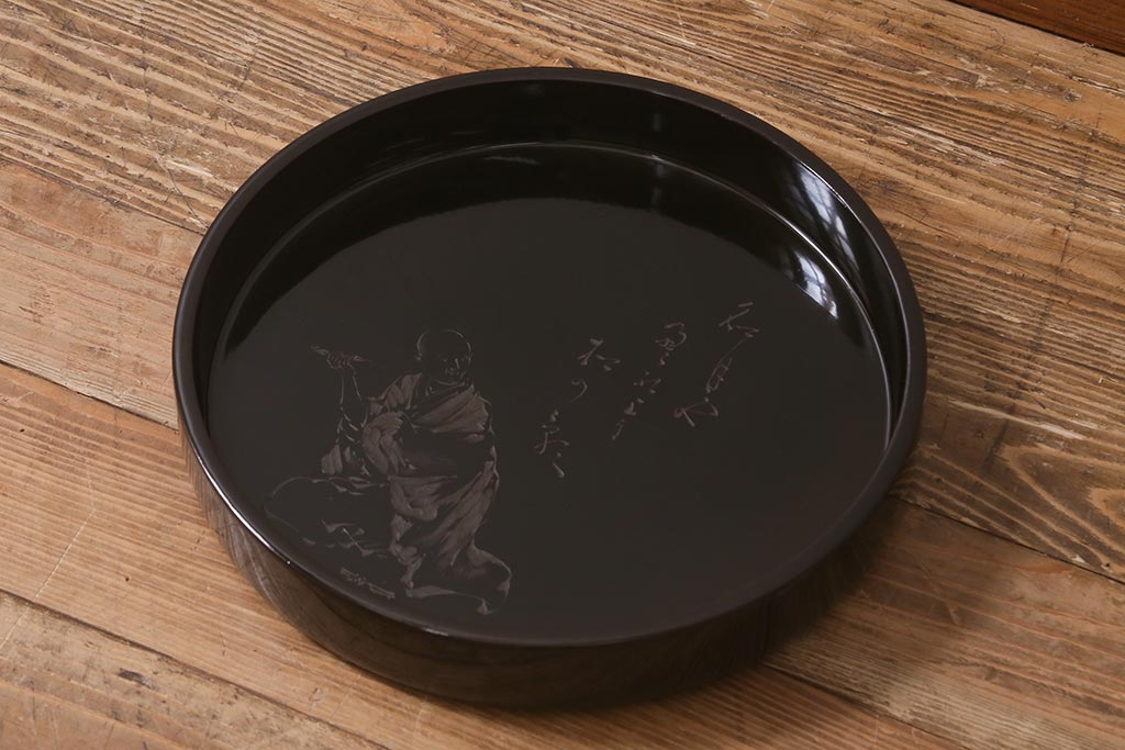 ラフジュ工房> 和食器・茶道具> お盆・お膳・お重 > アンティーク雑貨 工芸品 大正昭和初期 俳句 名月や〜 彫刻 上手物! 漆塗り 木製お盆(漆器、トレー、丸盆)(R-043041)