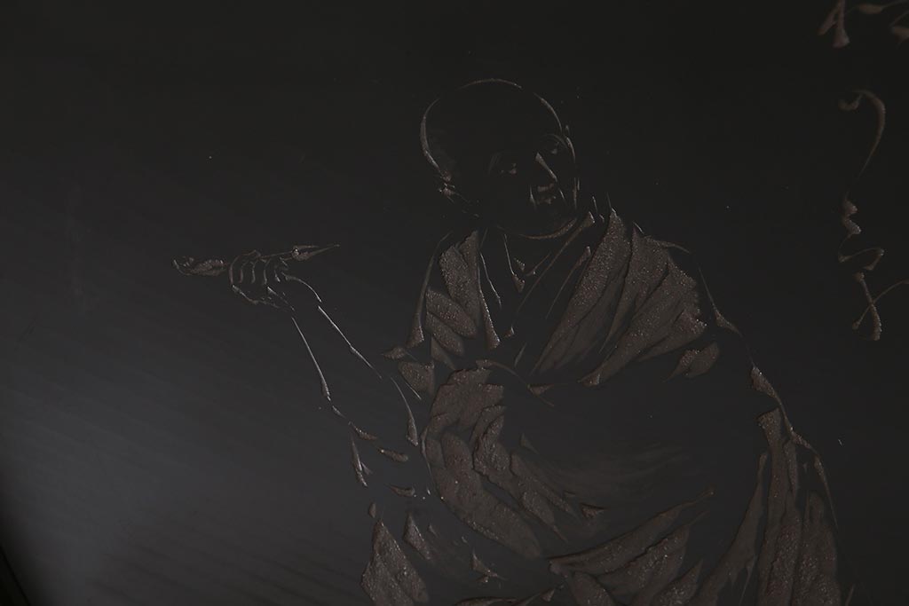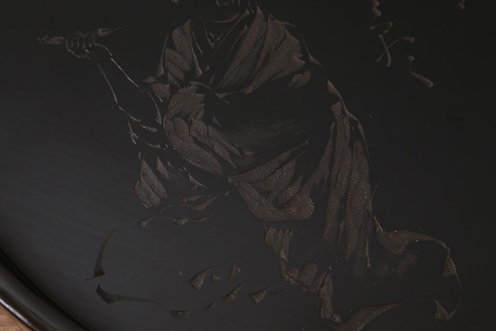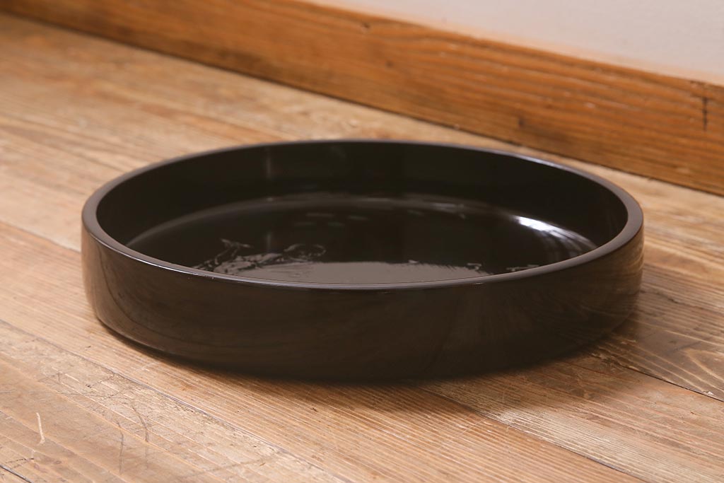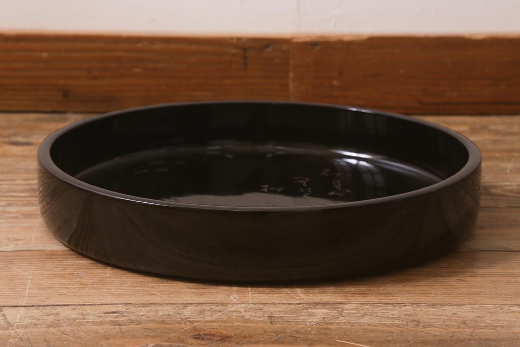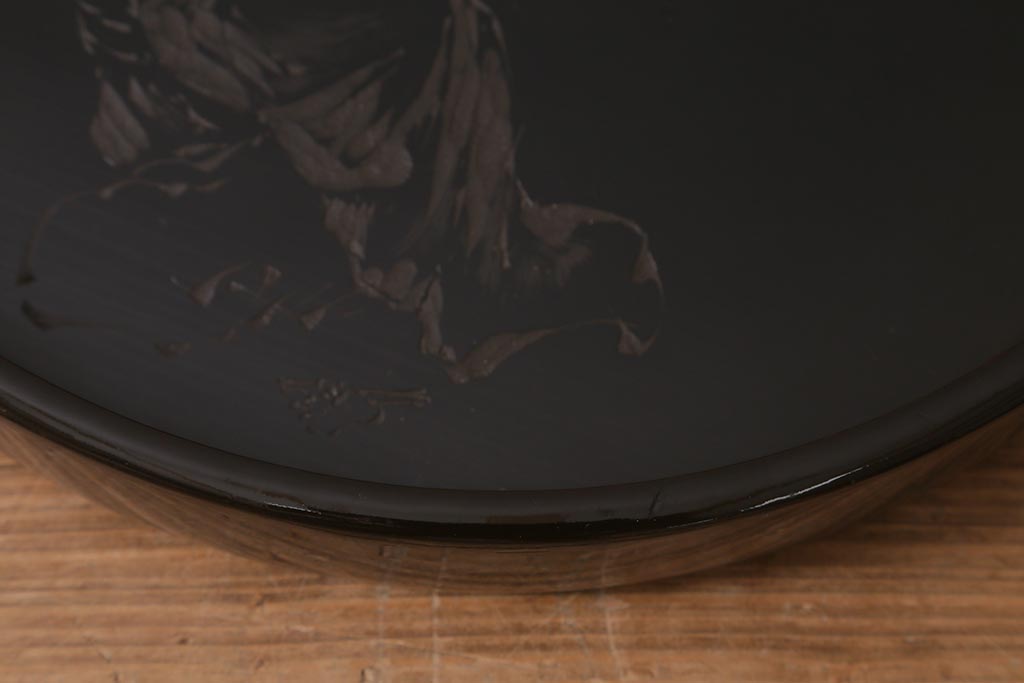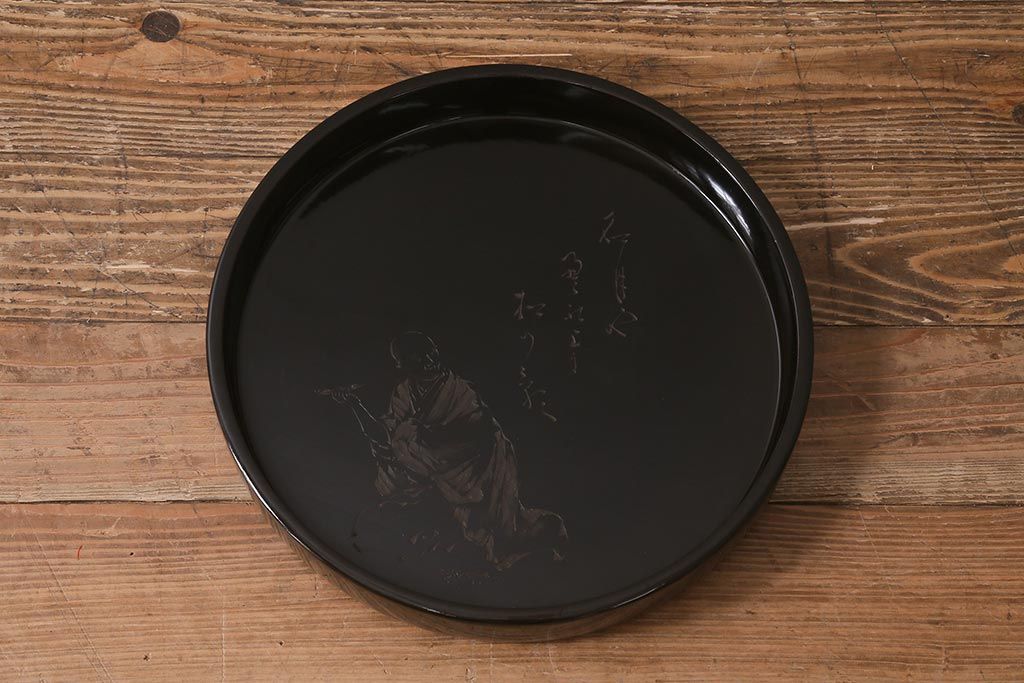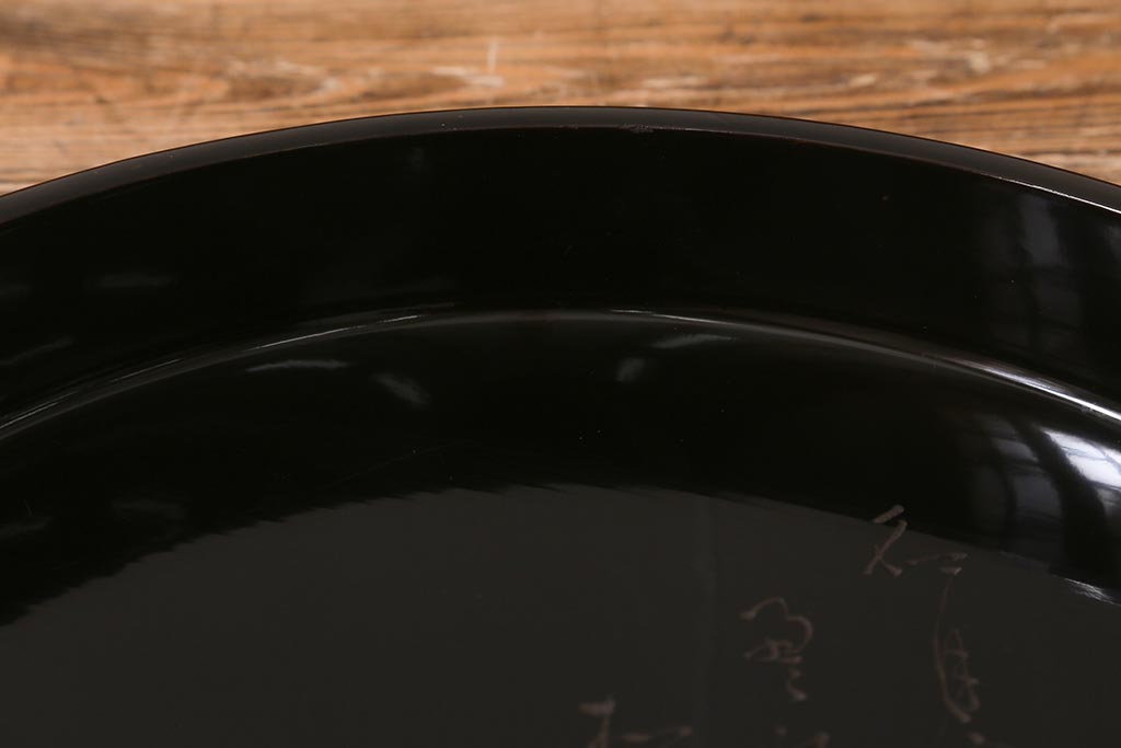 アンティーク雑貨 工芸品 大正昭和初期 俳句 名月や〜 彫刻 上手物! 漆塗り 木製お盆(漆器、トレー、丸盆)(R-043041)