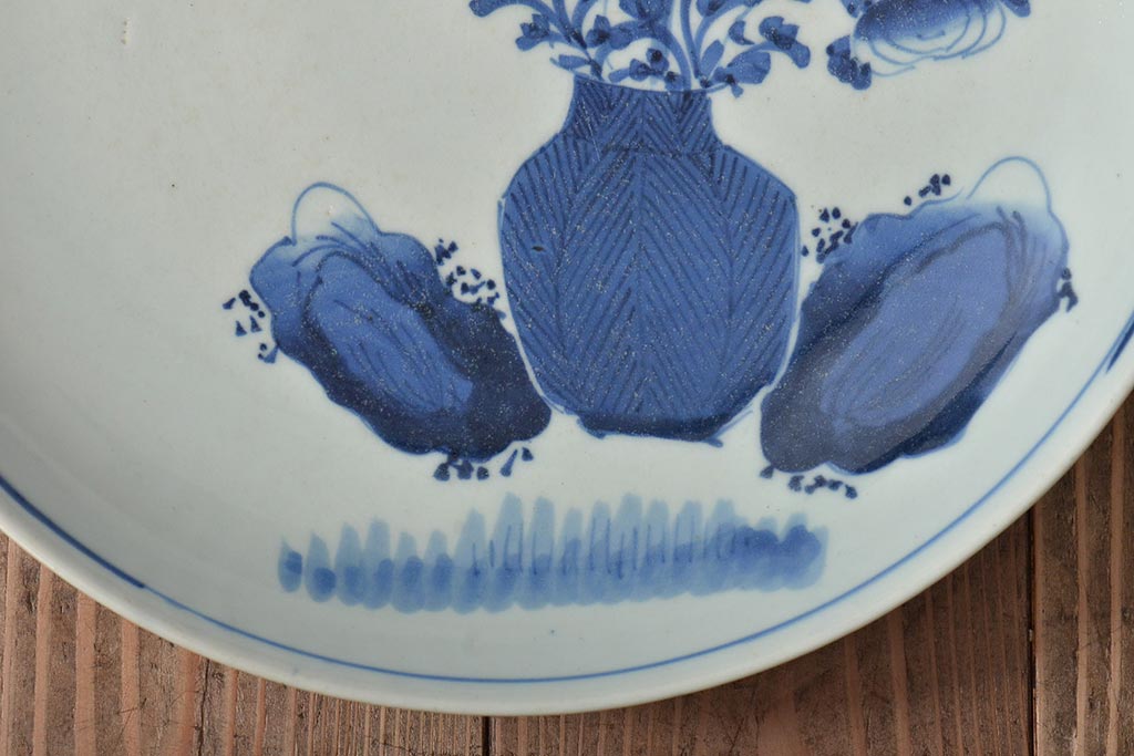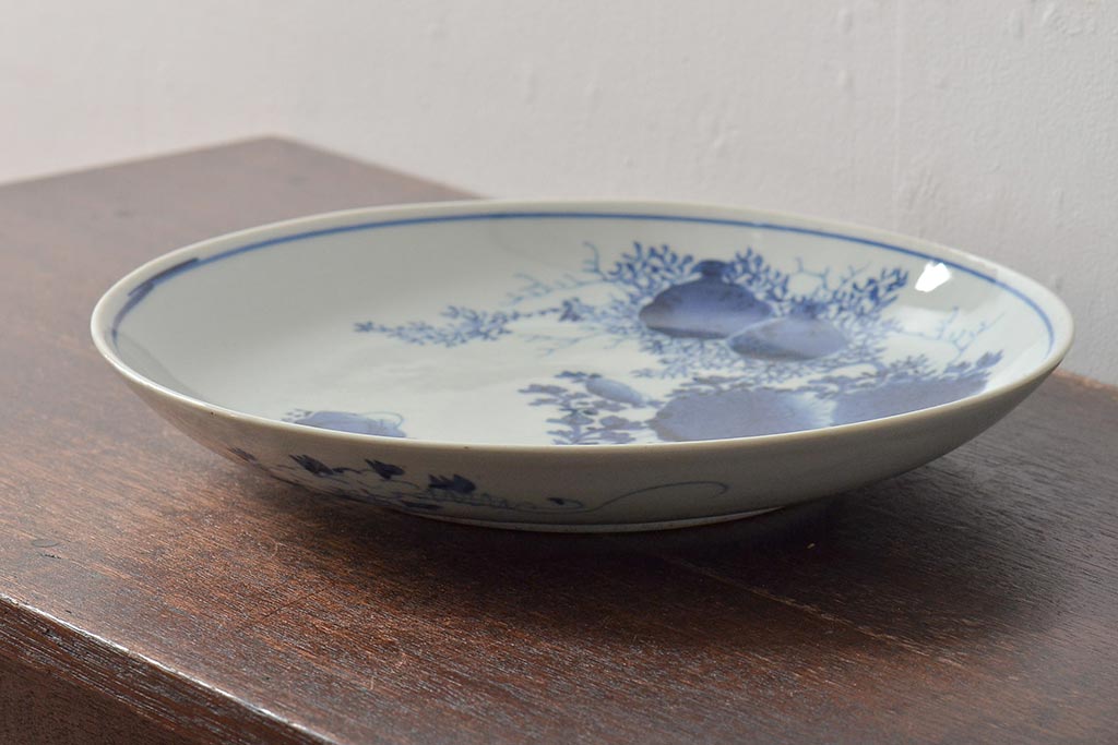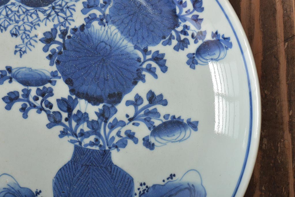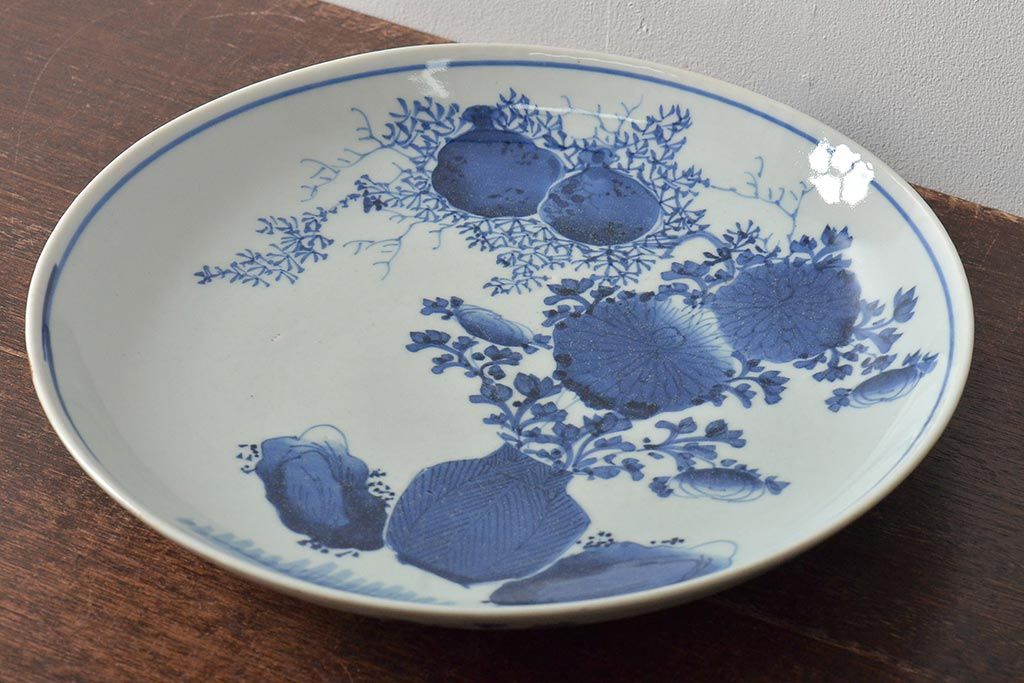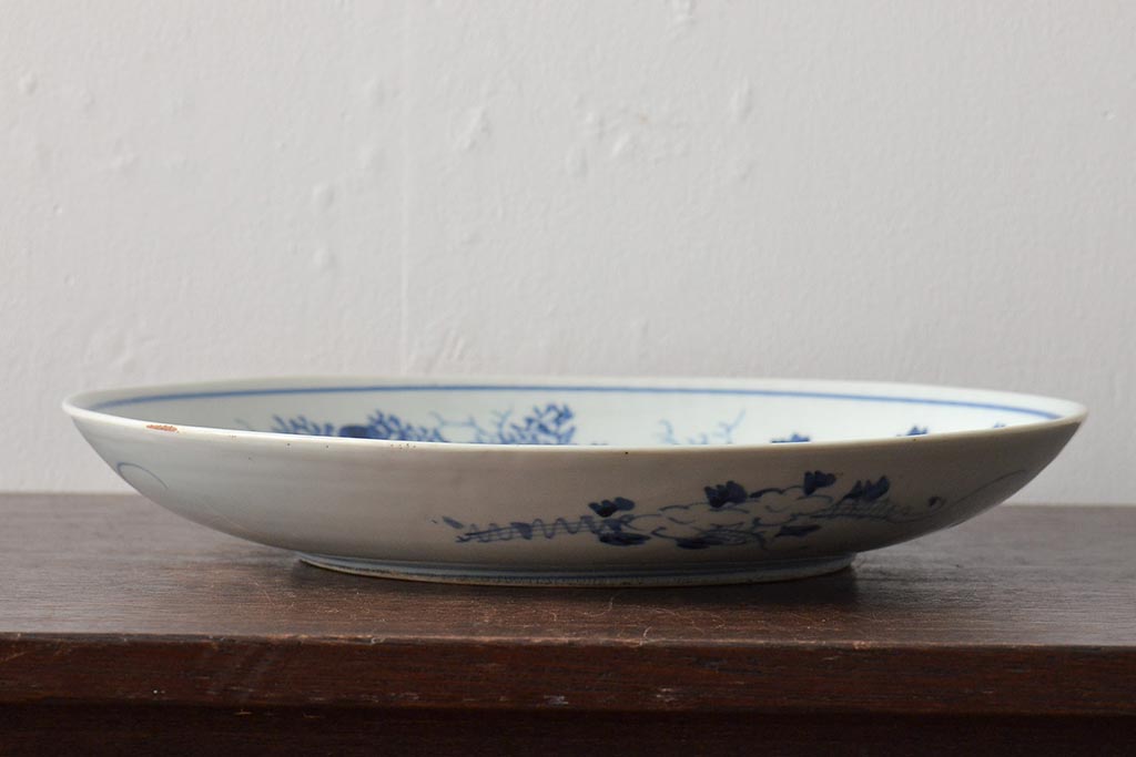 ラフジュ工房> 和食器・茶道具> 皿 > アンティーク雑貨 江戸期 古伊万里 花籠図 染付 尺皿(大皿)(R-043067)