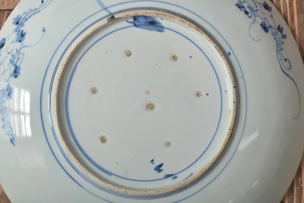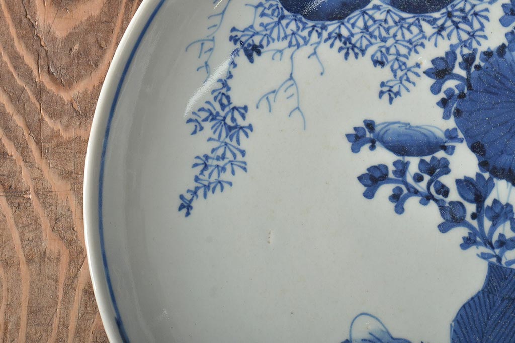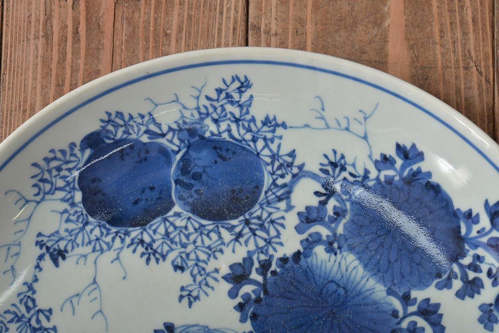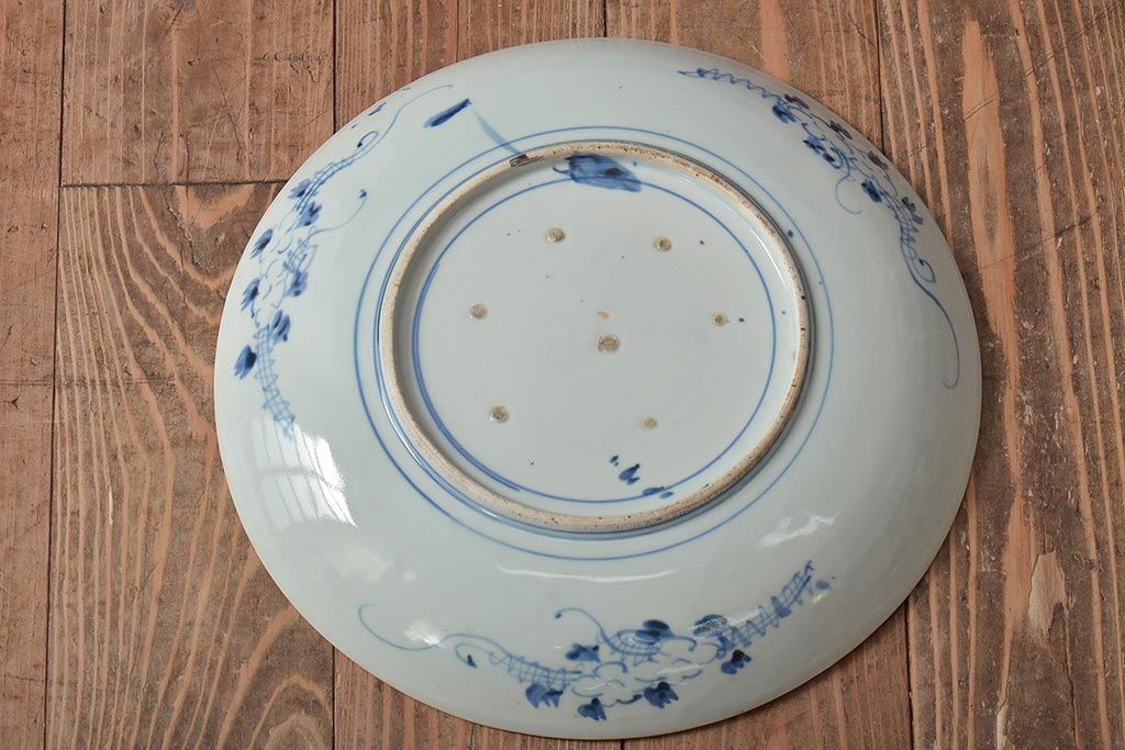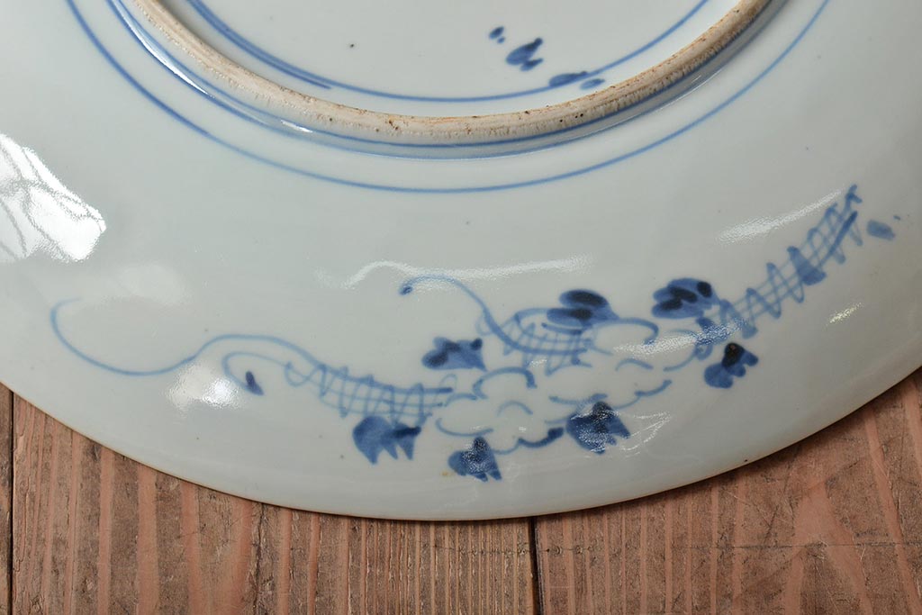 ラフジュ工房> 和食器・茶道具> 皿 > アンティーク雑貨 江戸期 古伊万里 花籠図 染付 尺皿(大皿)(R-043067)