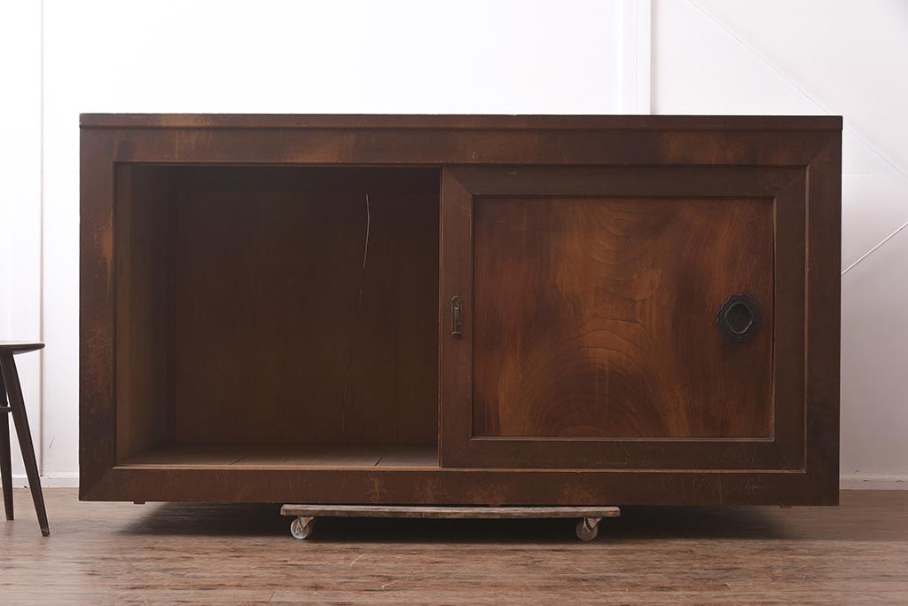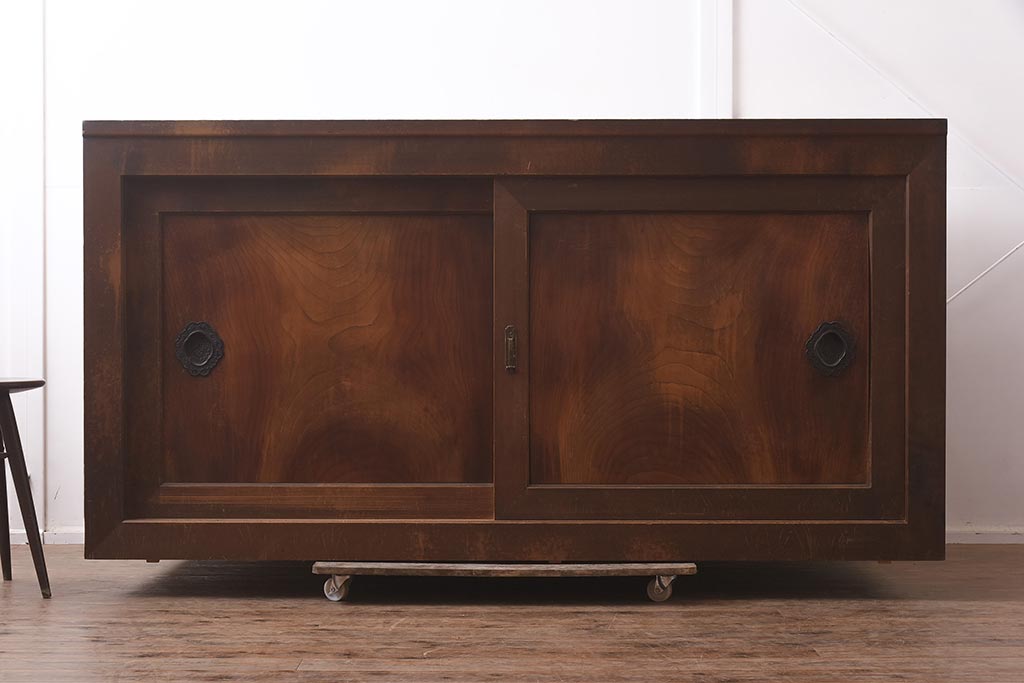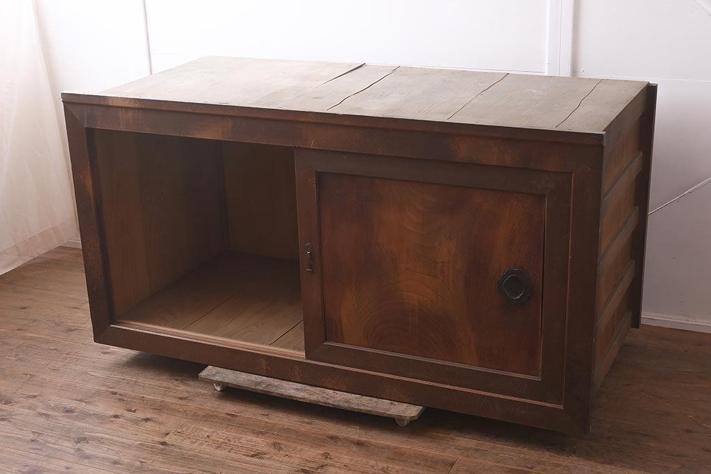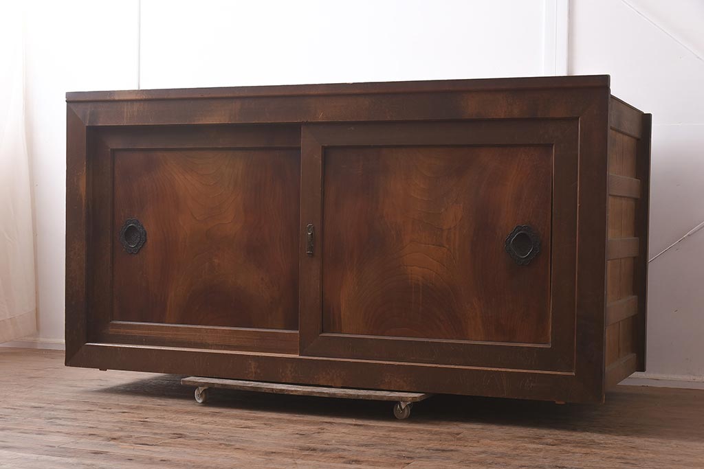 アンティーク家具 明治期 ヒノキ材・欅材 味わいのある収納箪笥(サイドボード、水屋箪笥、戸棚)(R-043248)です。