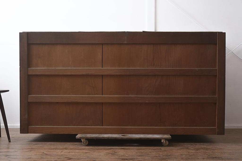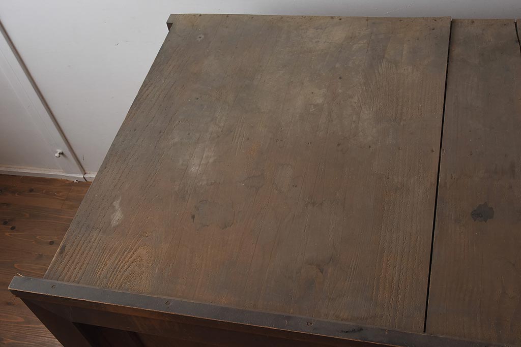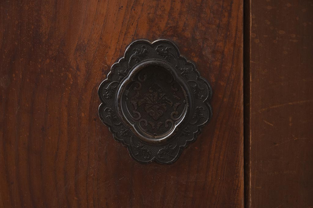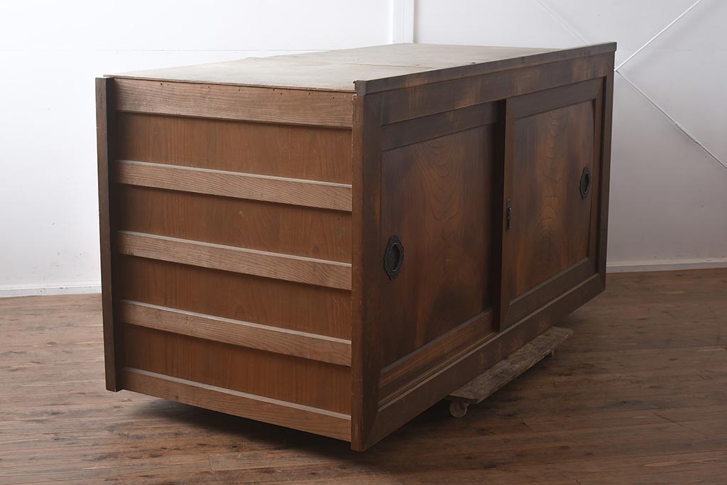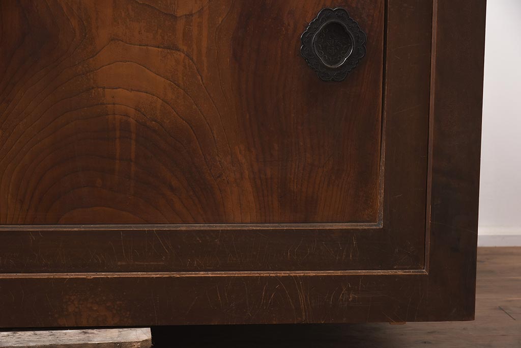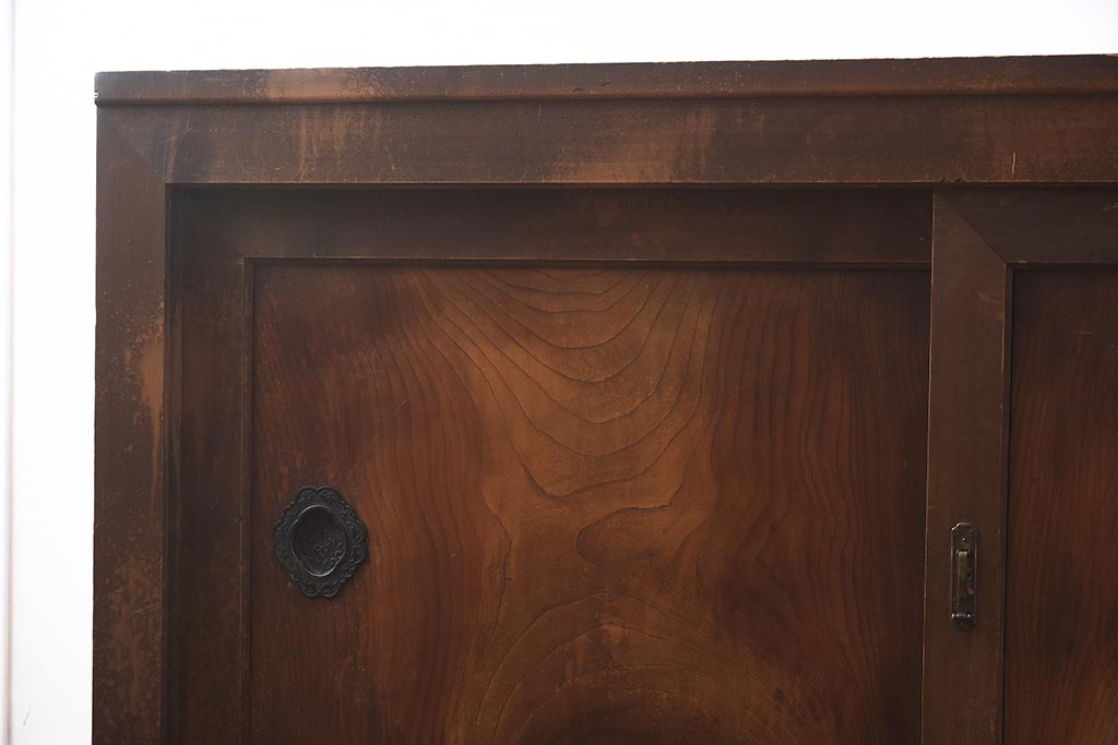 アンティーク家具 明治期 ヒノキ材・欅材 味わいのある収納箪笥(サイドボード、水屋箪笥、戸棚)(R-043248)