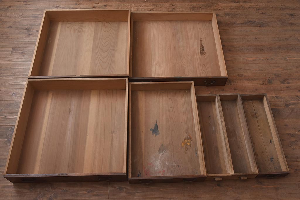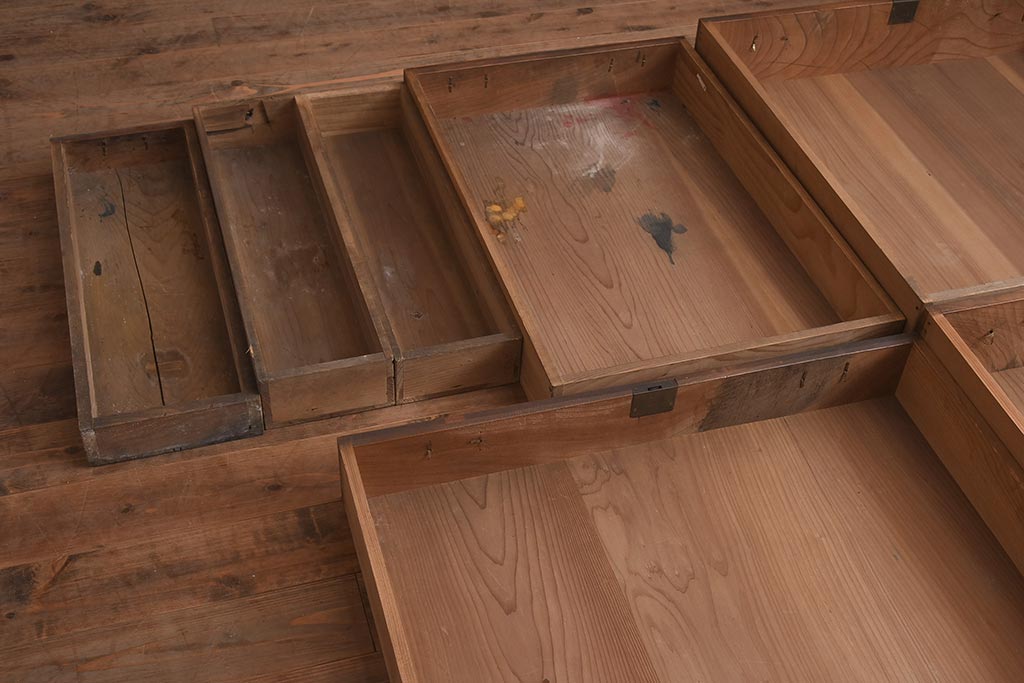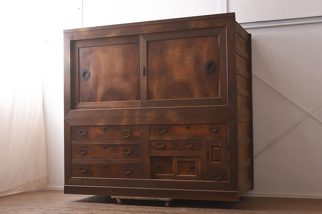 アンティーク家具 明治期 ヒノキ材・欅材 重ね収納箪笥(水屋箪笥、引き出し、チェスト、夜具箪笥、布団箪笥)(R-043250)
