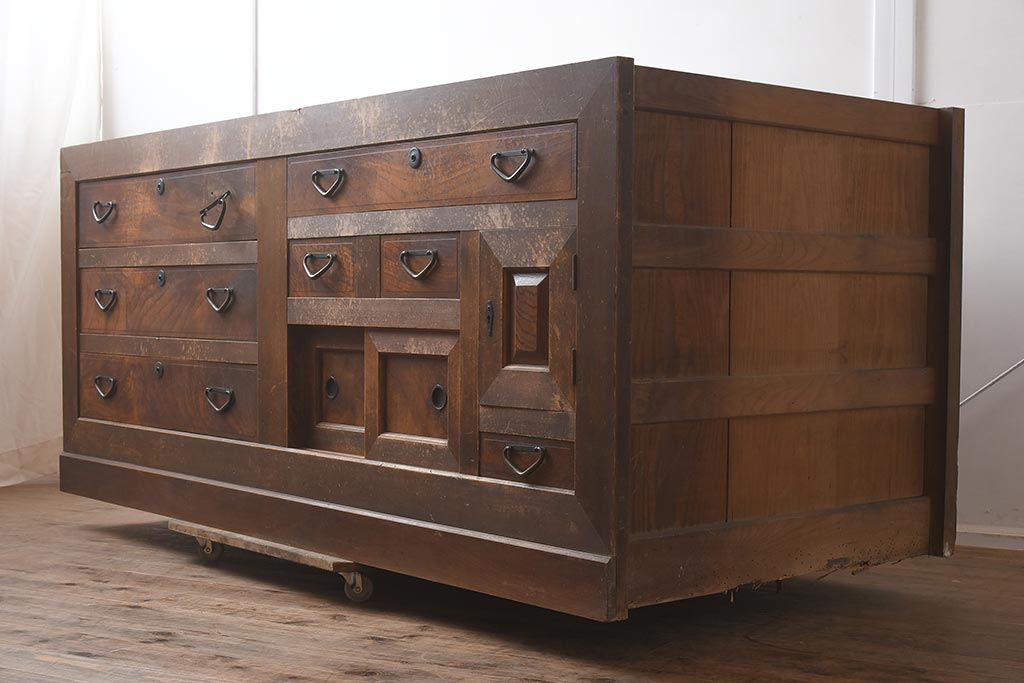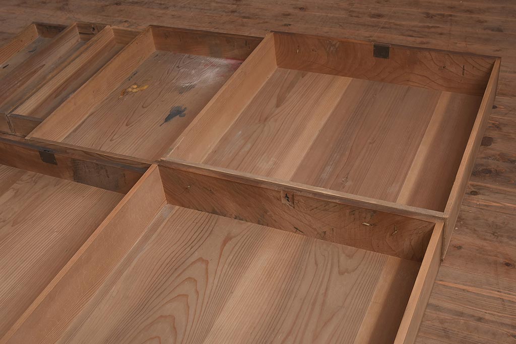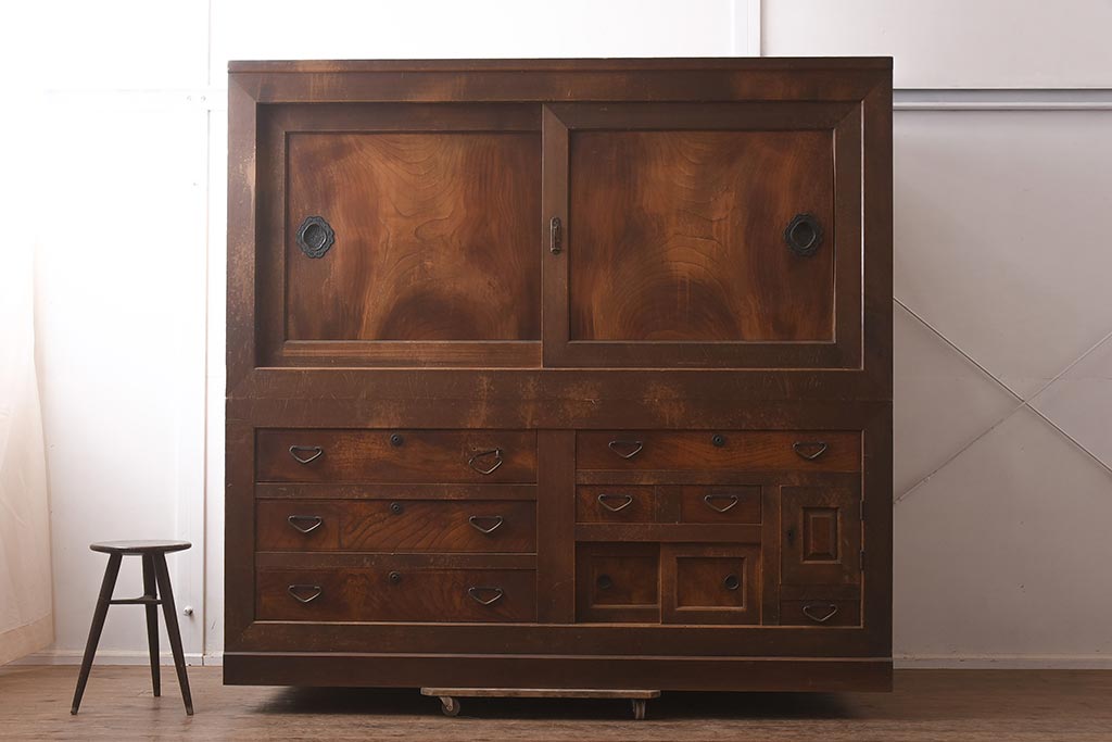 ラフジュ工房> 和箪笥 > アンティーク家具 明治期 ヒノキ材・欅材 重ね収納箪笥(水屋箪笥、引き出し、チェスト、夜具箪笥、布団箪笥)(R-043250)