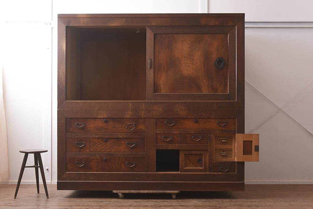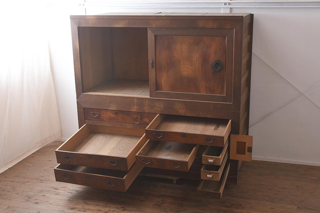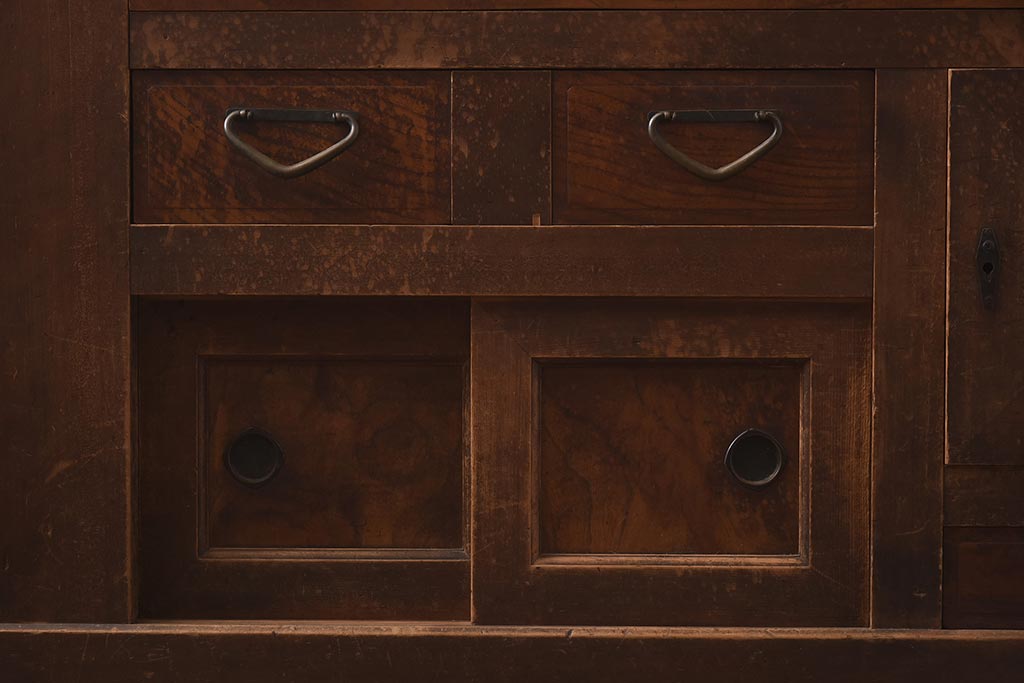 ラフジュ工房> 和箪笥> 水屋箪笥 > アンティーク家具 明治期 ヒノキ材・欅材 重ね収納箪笥(水屋箪笥、引き出し、チェスト、夜具箪笥、布団箪笥)(R-043250)