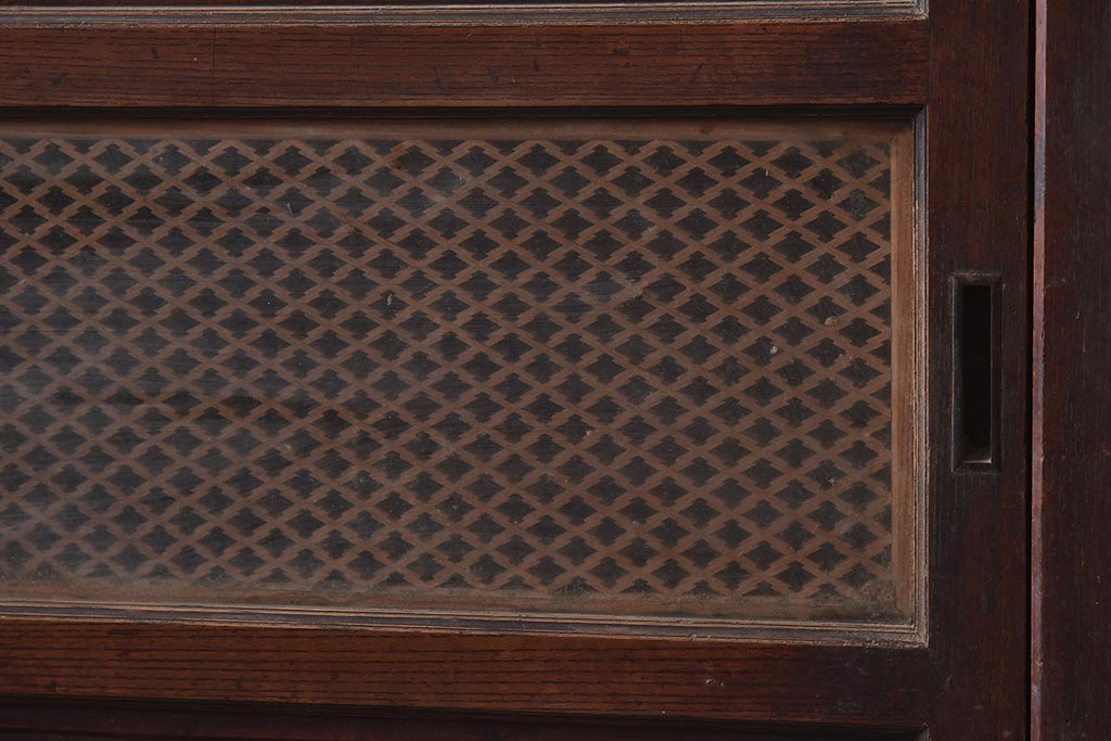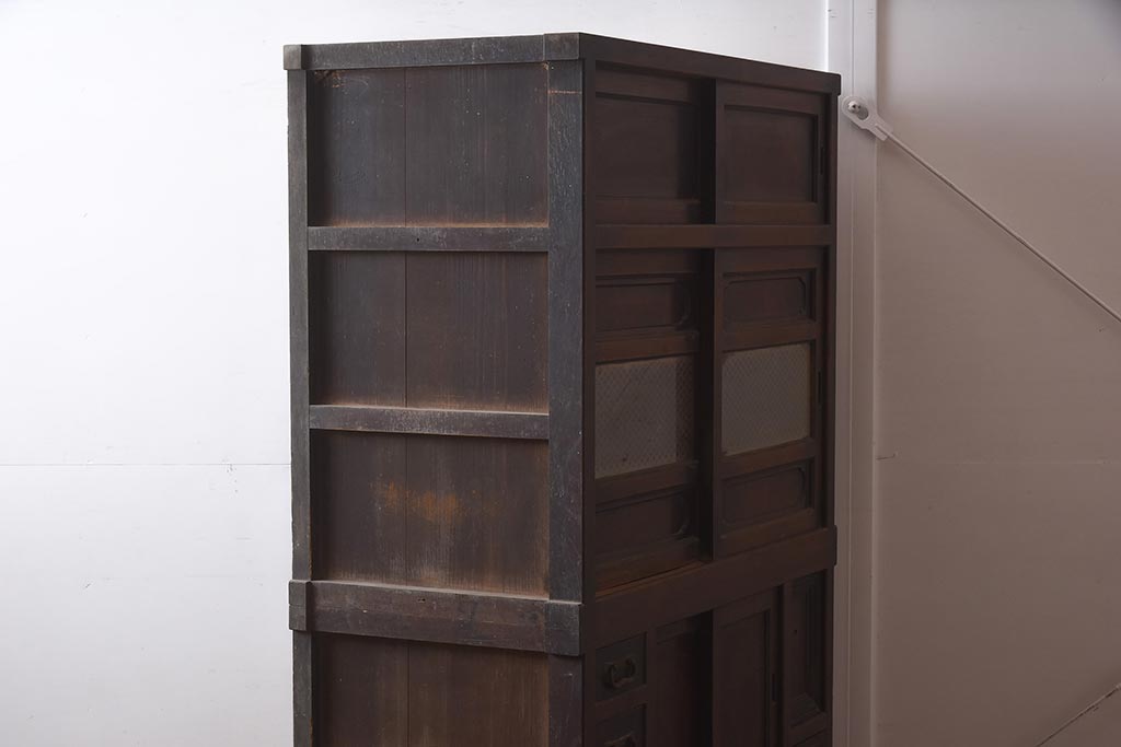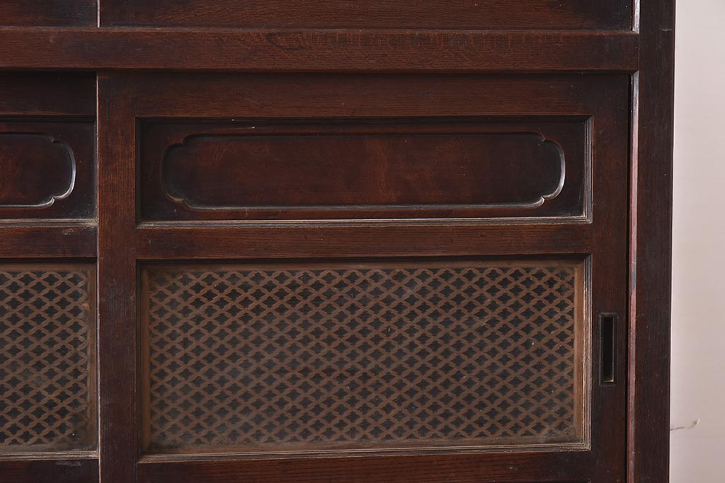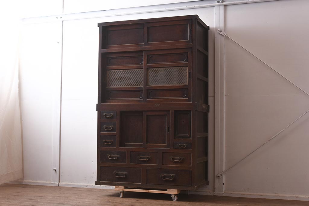 アンティーク家具 上手物! 明治大正期 前面欅(ケヤキ)・玉杢材 3尺 組子入り引き戸の関東水屋箪笥(茶箪笥、重ね戸棚、収納棚)(R-043277)