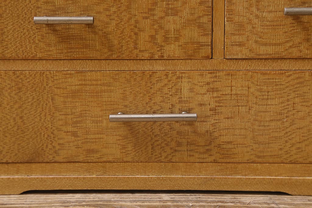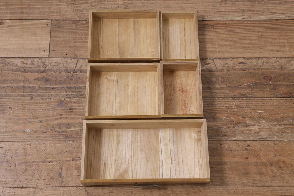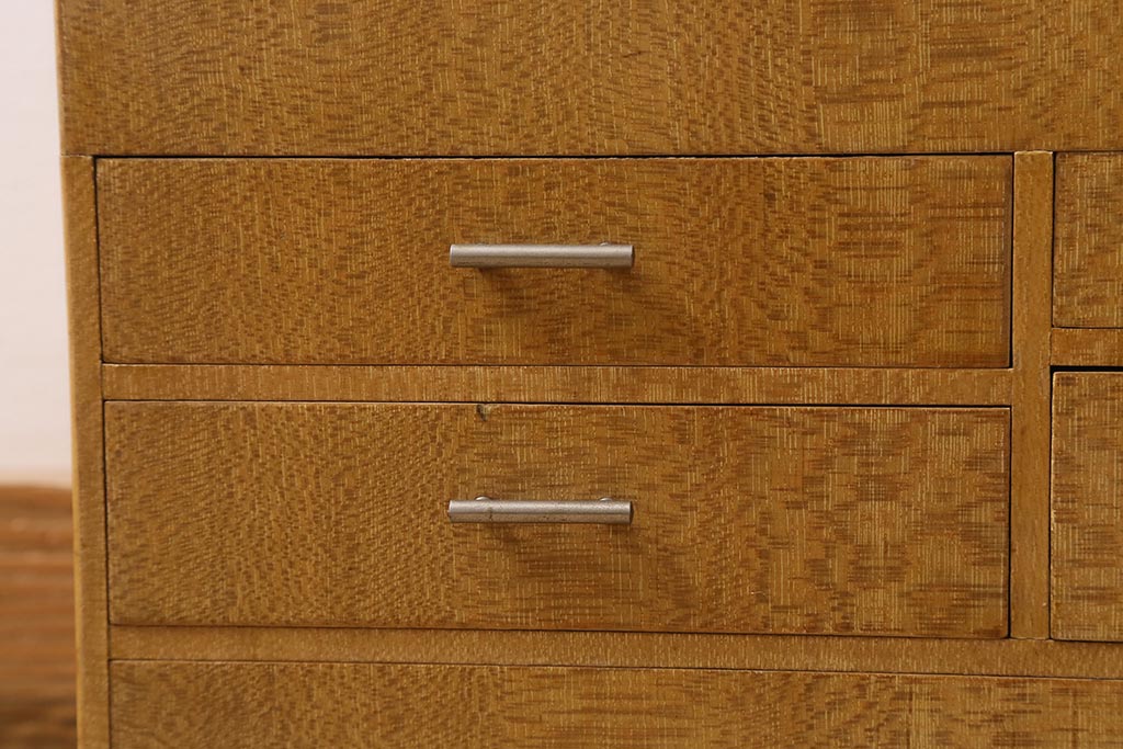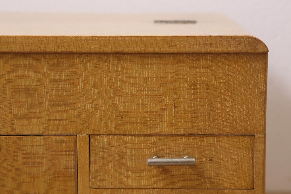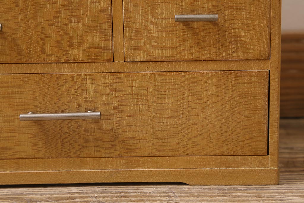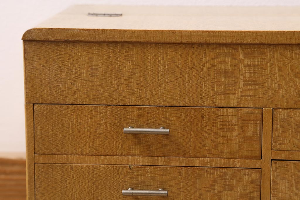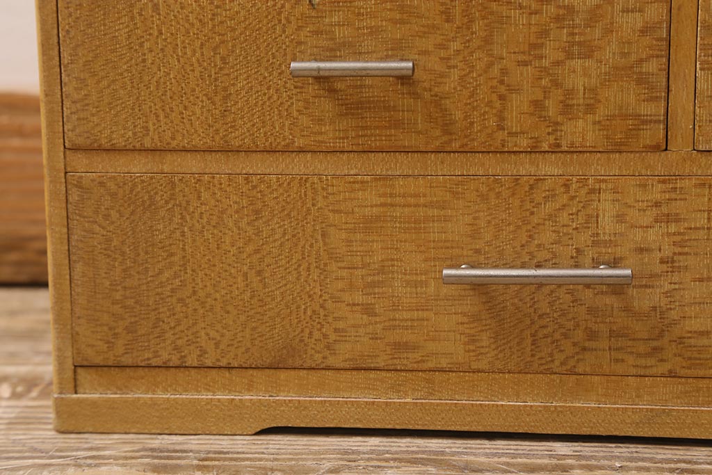 レトロ家具 美品 杢目が素敵な昭和期の裁縫箱(ソーイングボックス、小引き出し)(R-043459)
