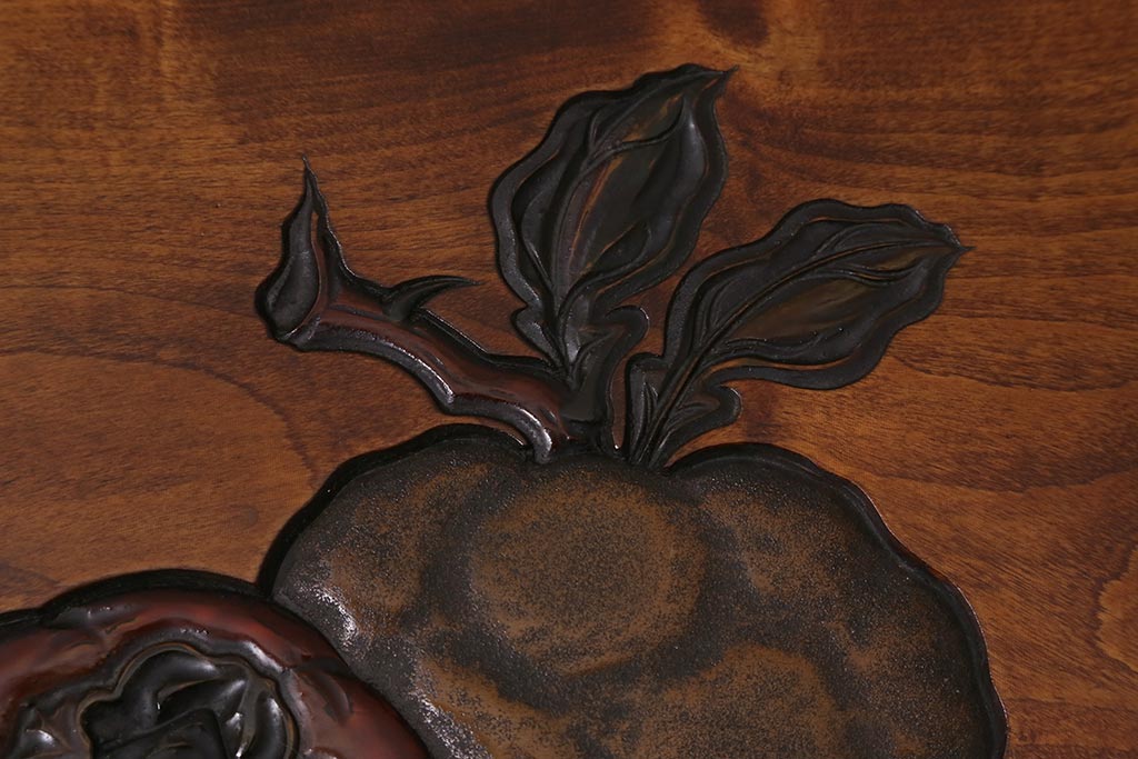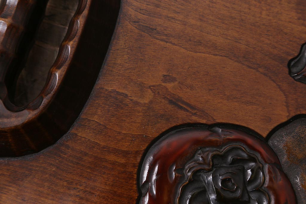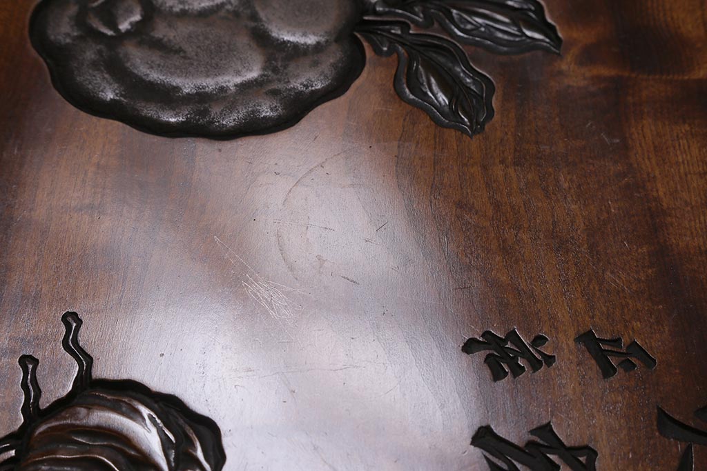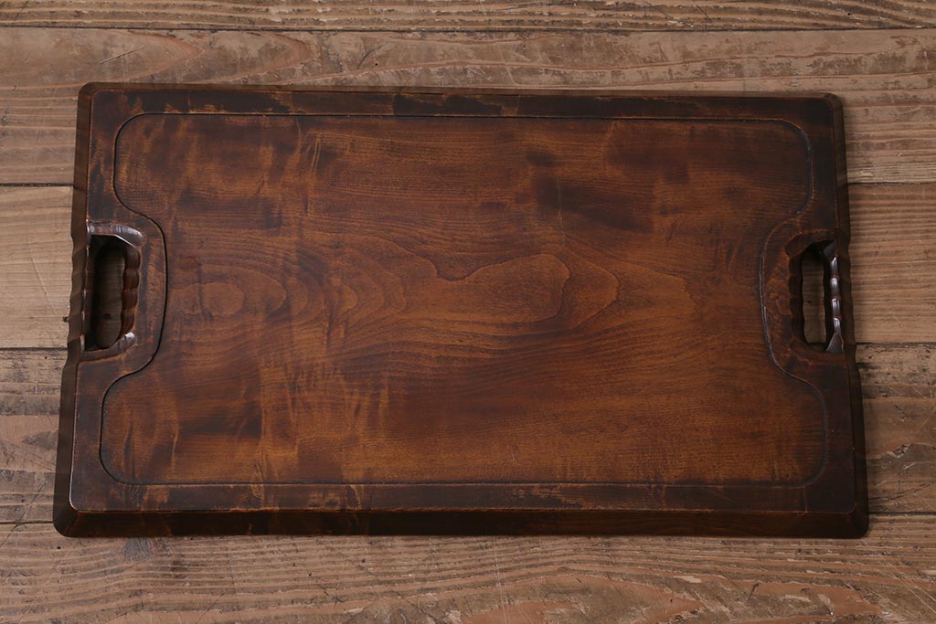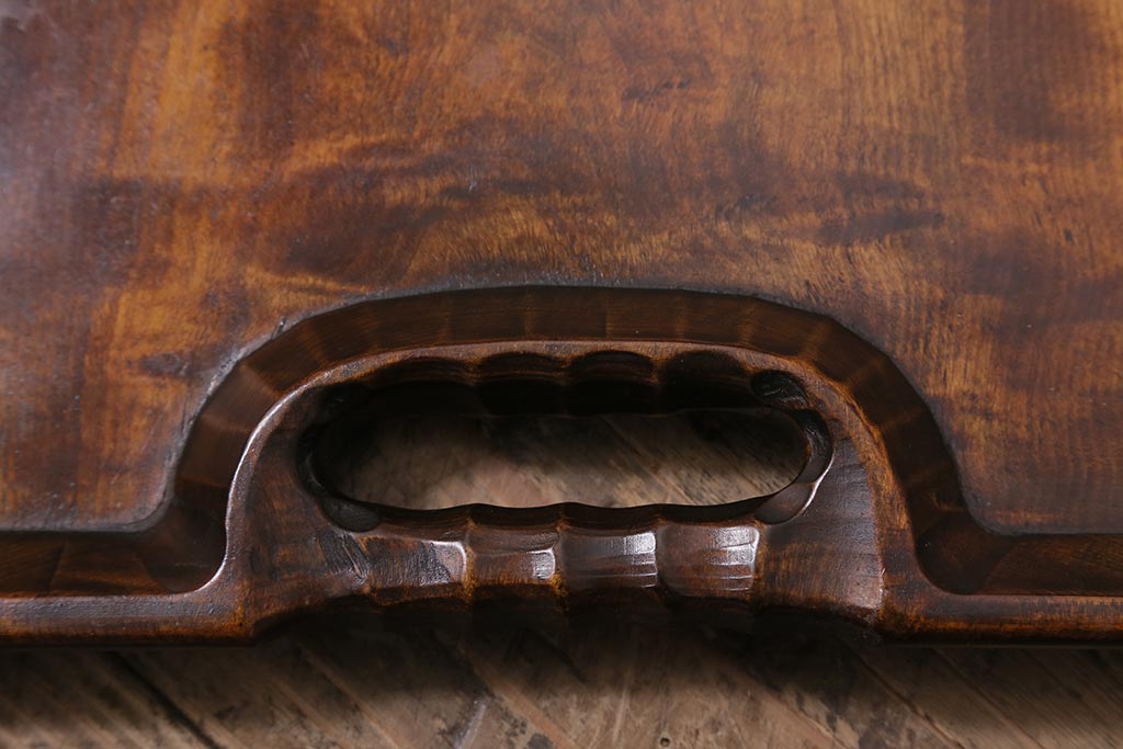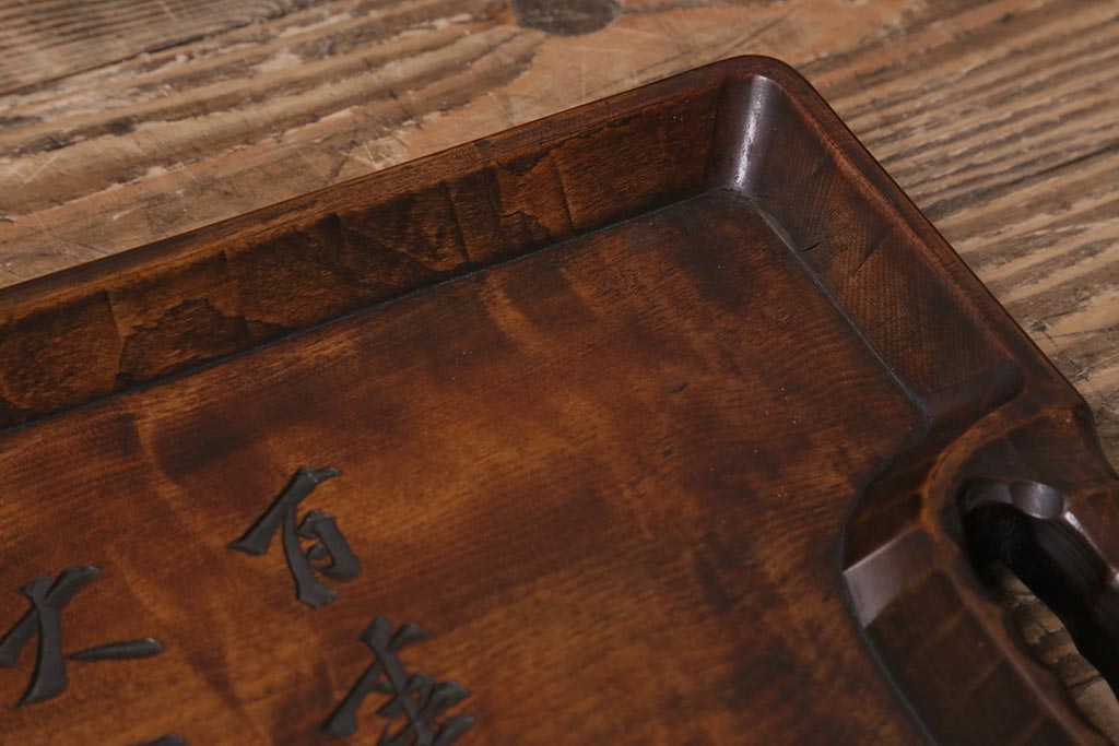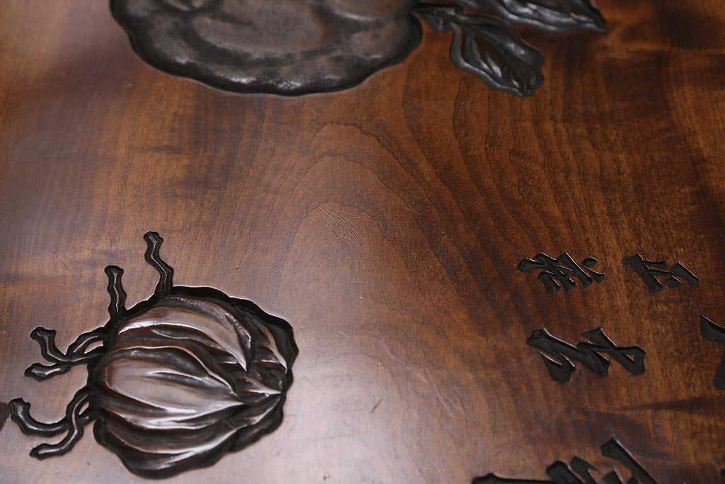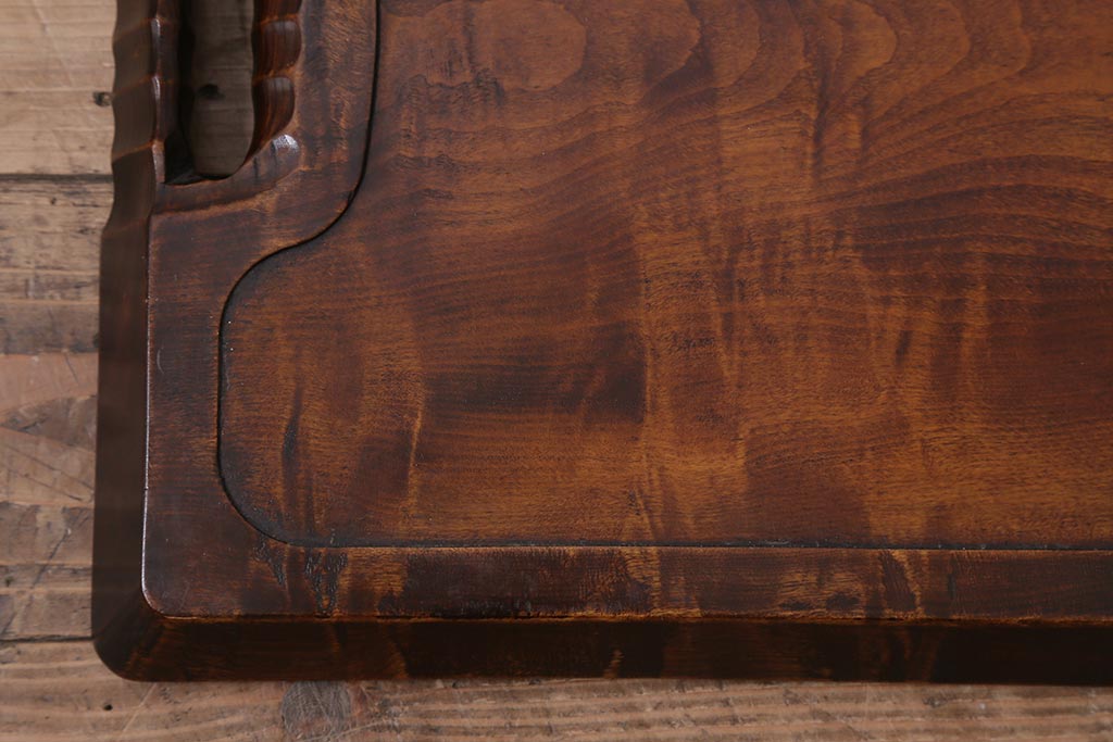 中古 烏城彫り 栃 拭き漆 果物・野菜の図 角膳尺8 手付(盆)(R-043474)