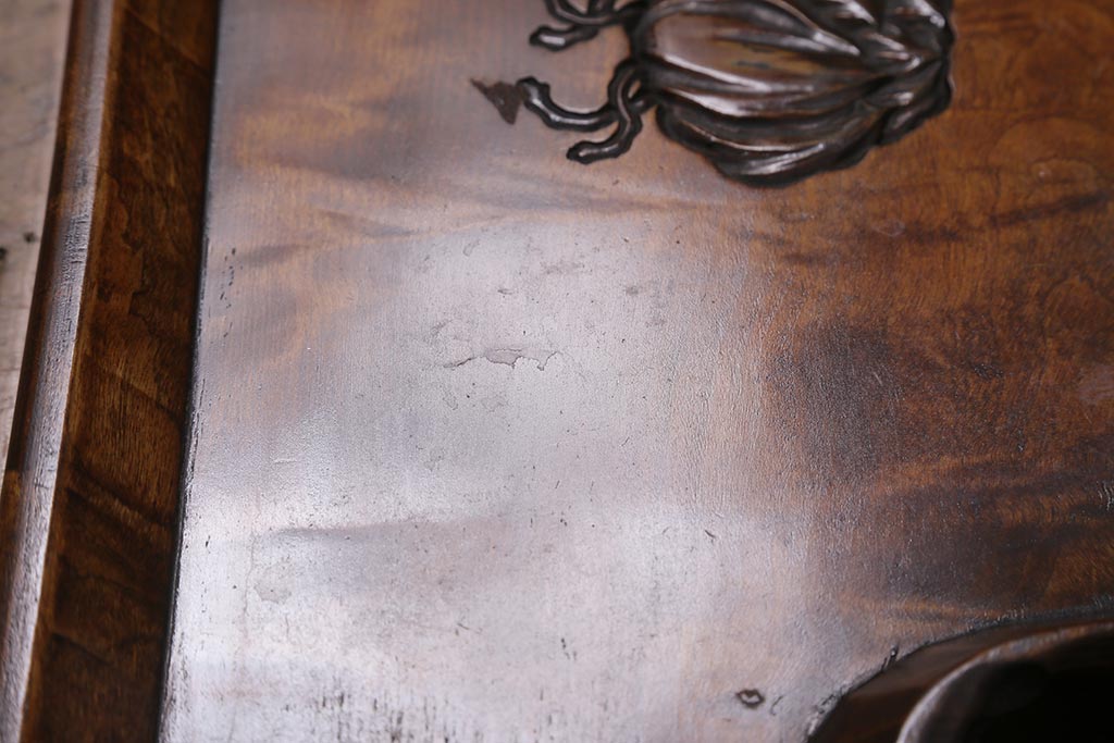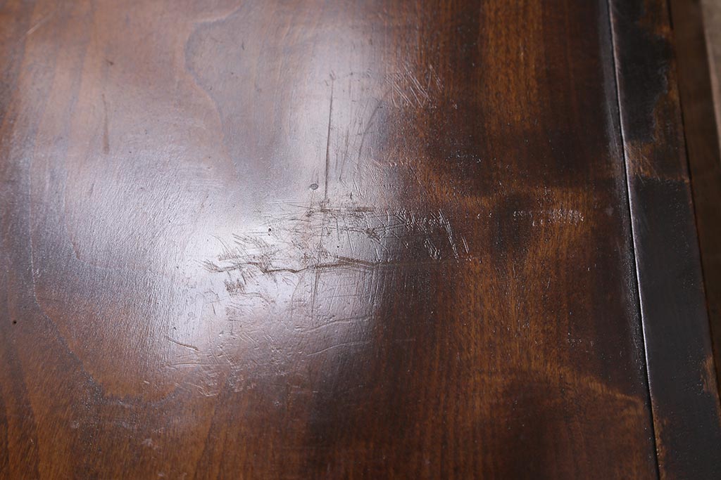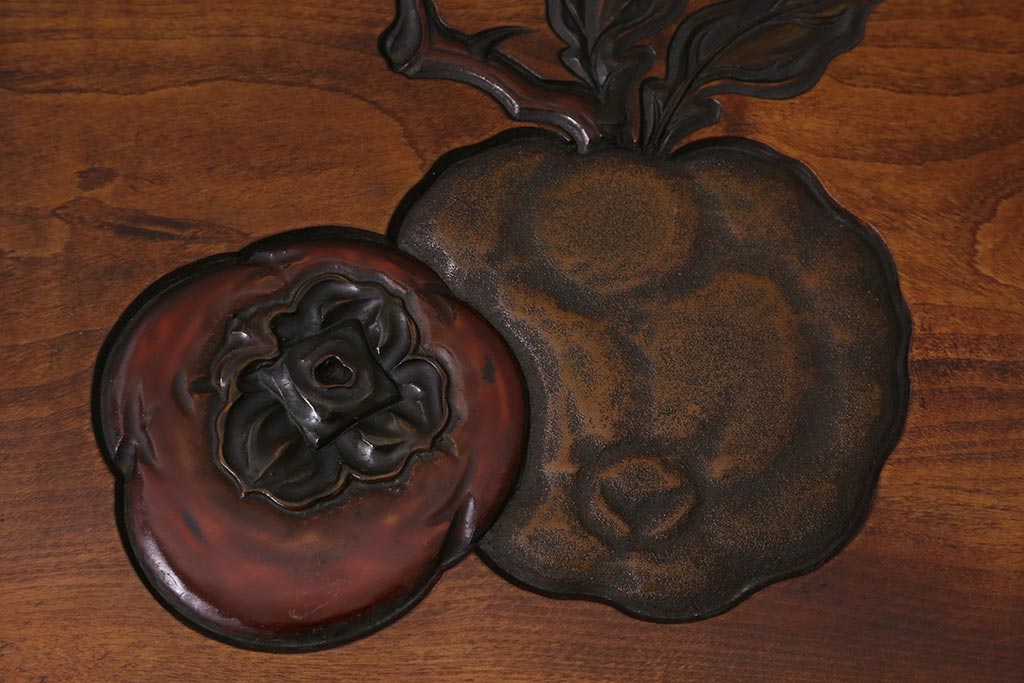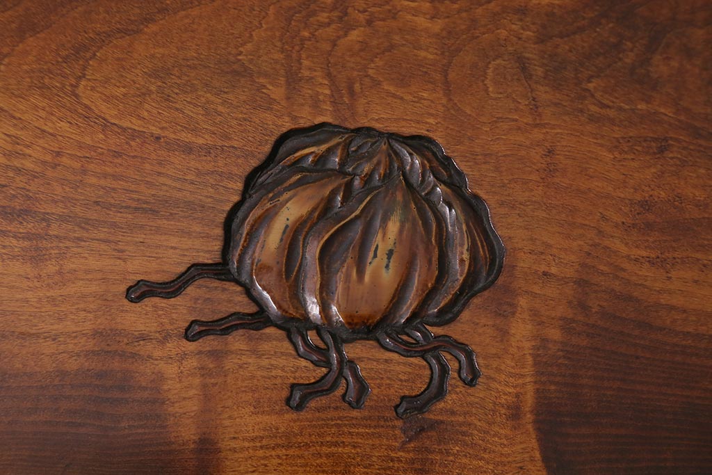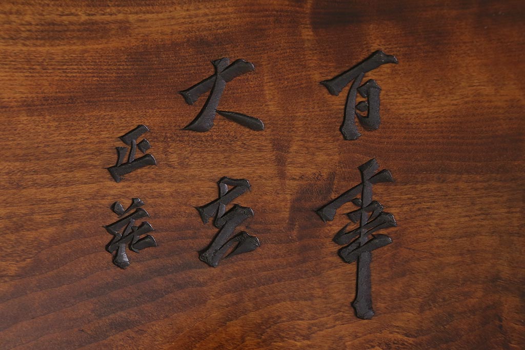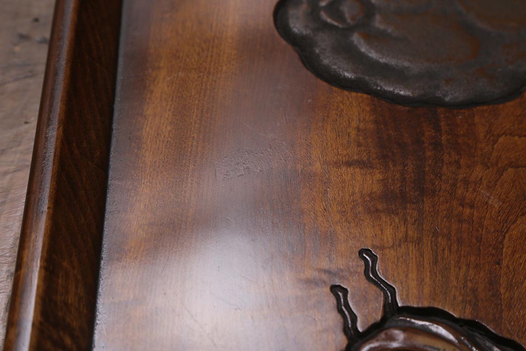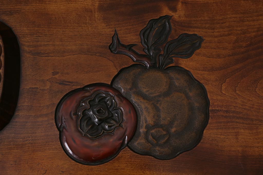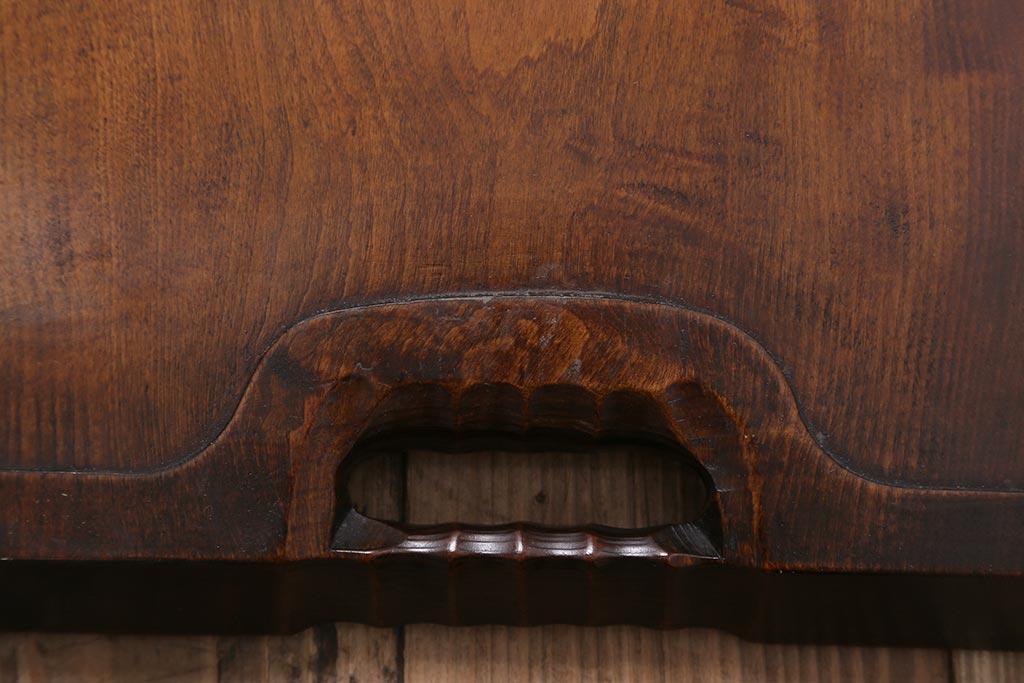 中古 烏城彫り 栃 拭き漆 果物・野菜の図 角膳尺8 手付(盆)(R-043474)