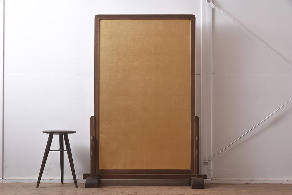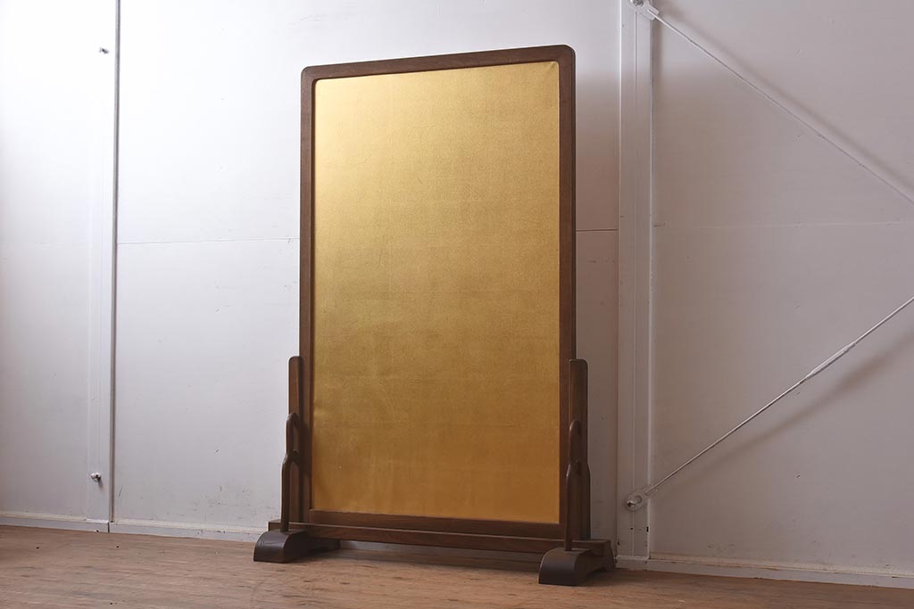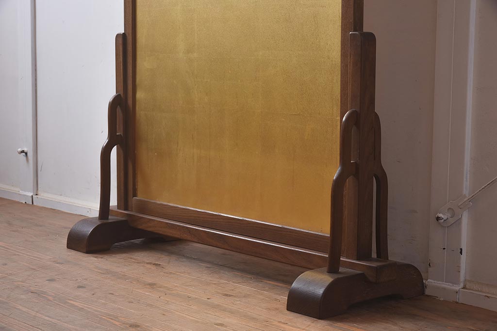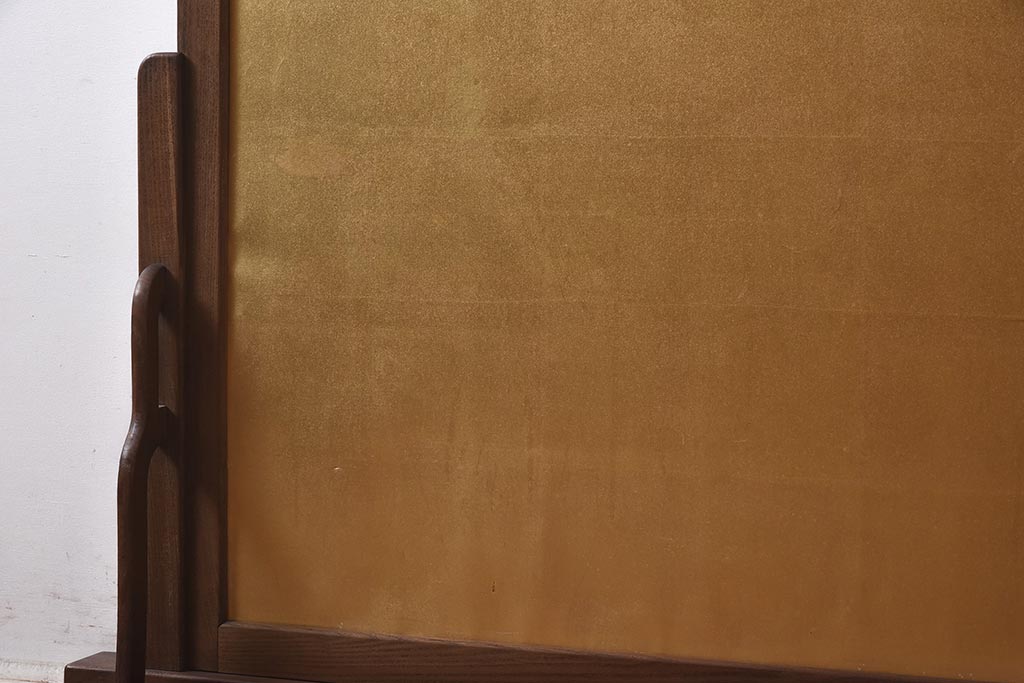 和製アンティーク 昭和初期 桑材 指物家具 お部屋を華やかにする黄金の衝立(パーテーション、つい立)(R-043452)