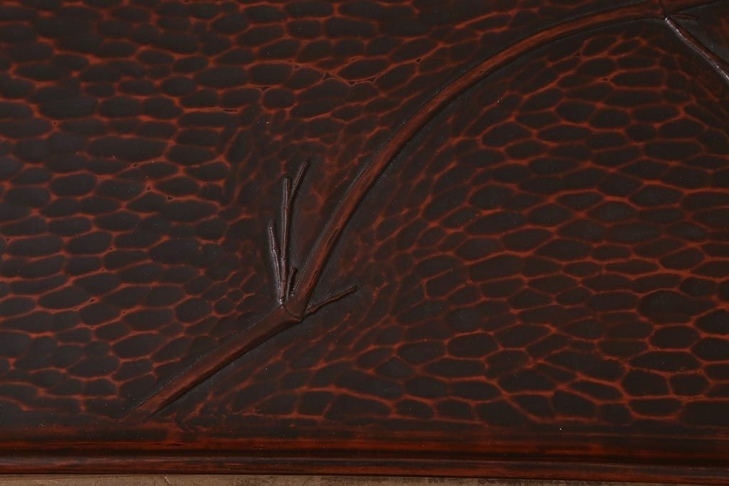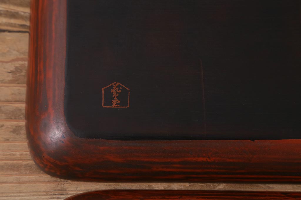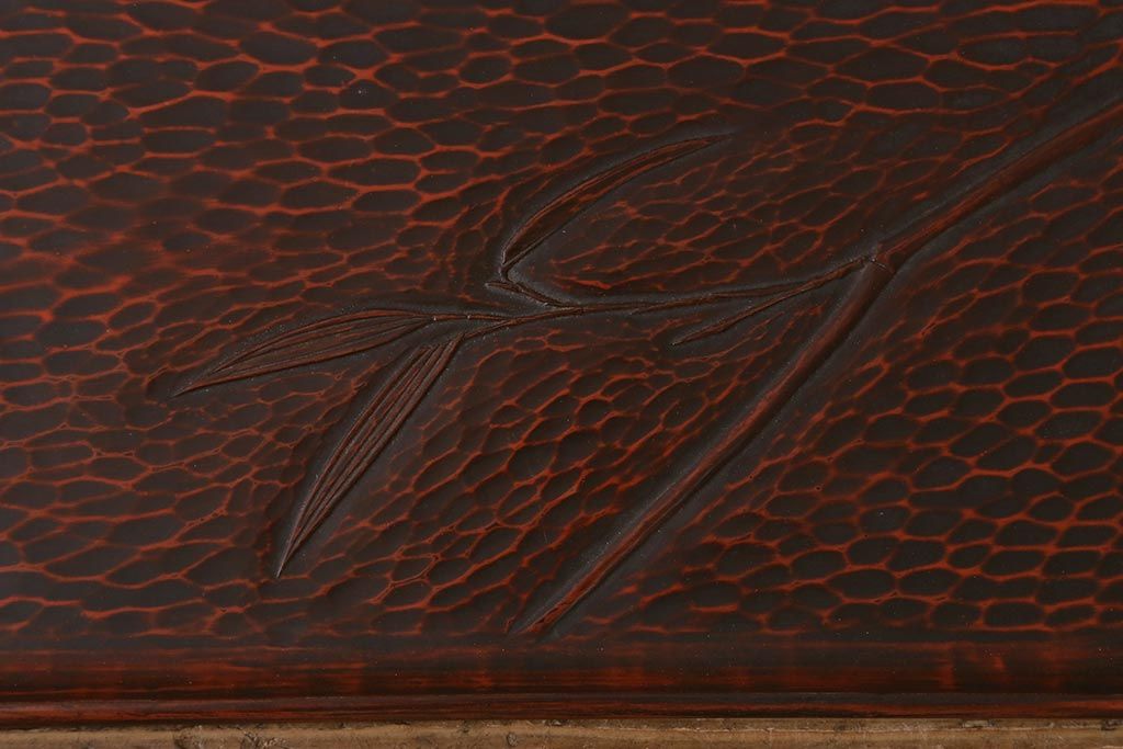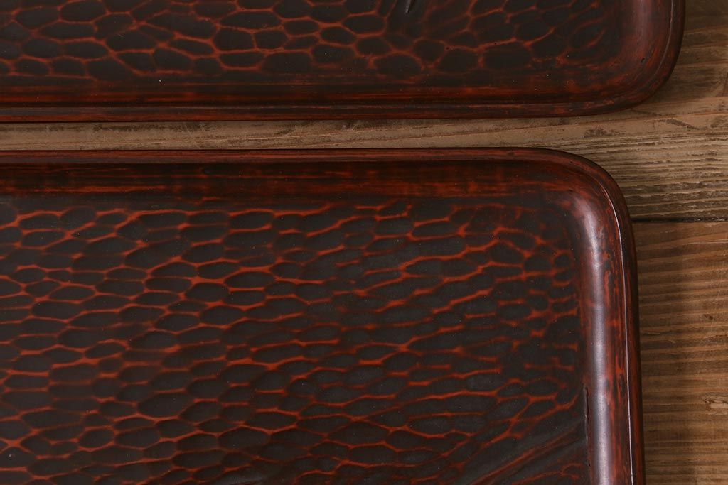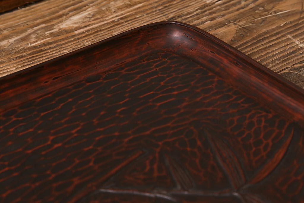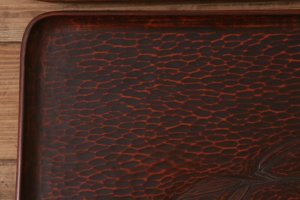 昭和初期 伝統工芸 古い鎌倉彫り 花○堂 笹 お盆2枚セット(角盆、漆器)(R-043005)です。