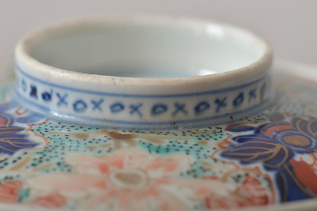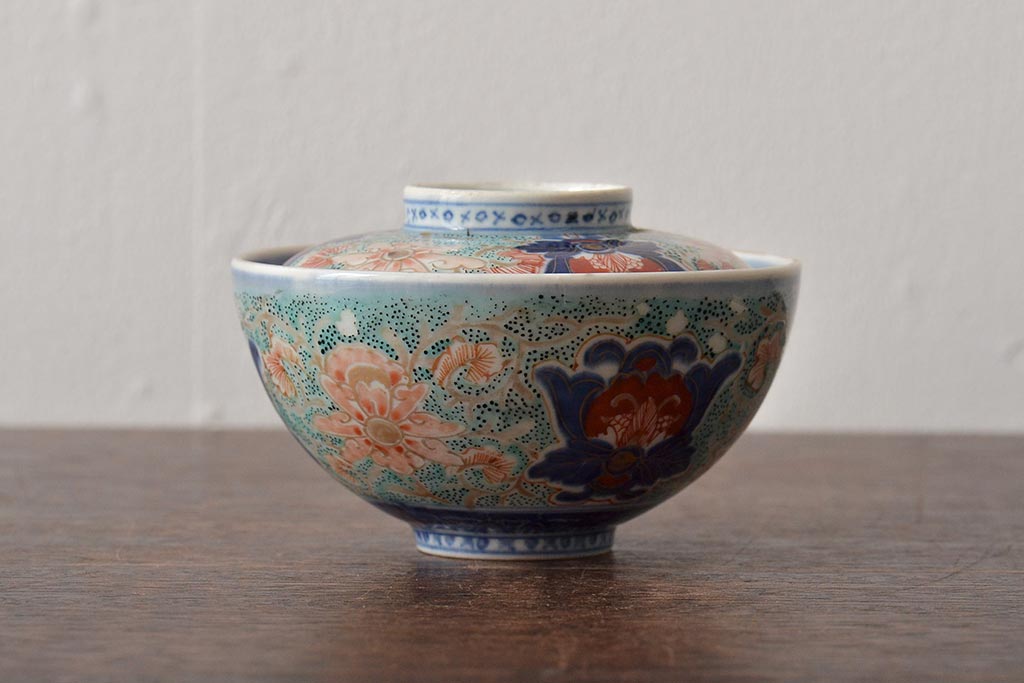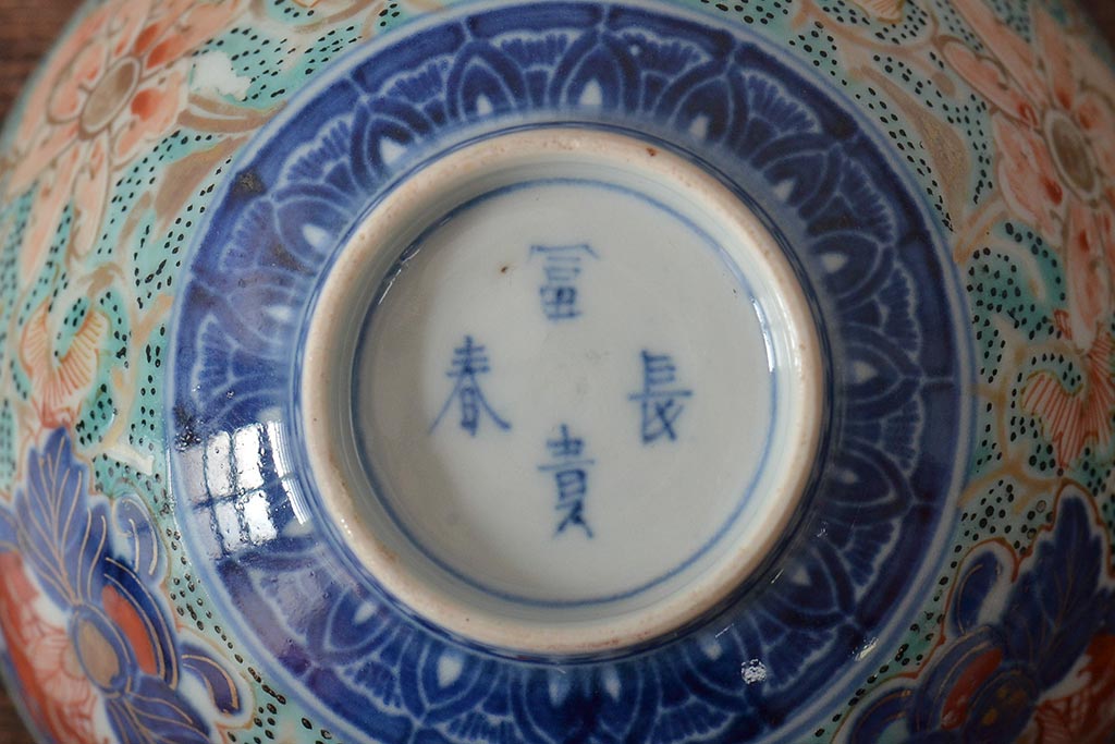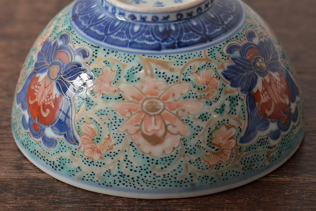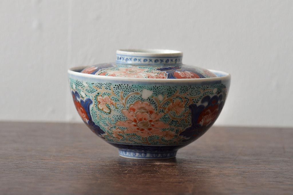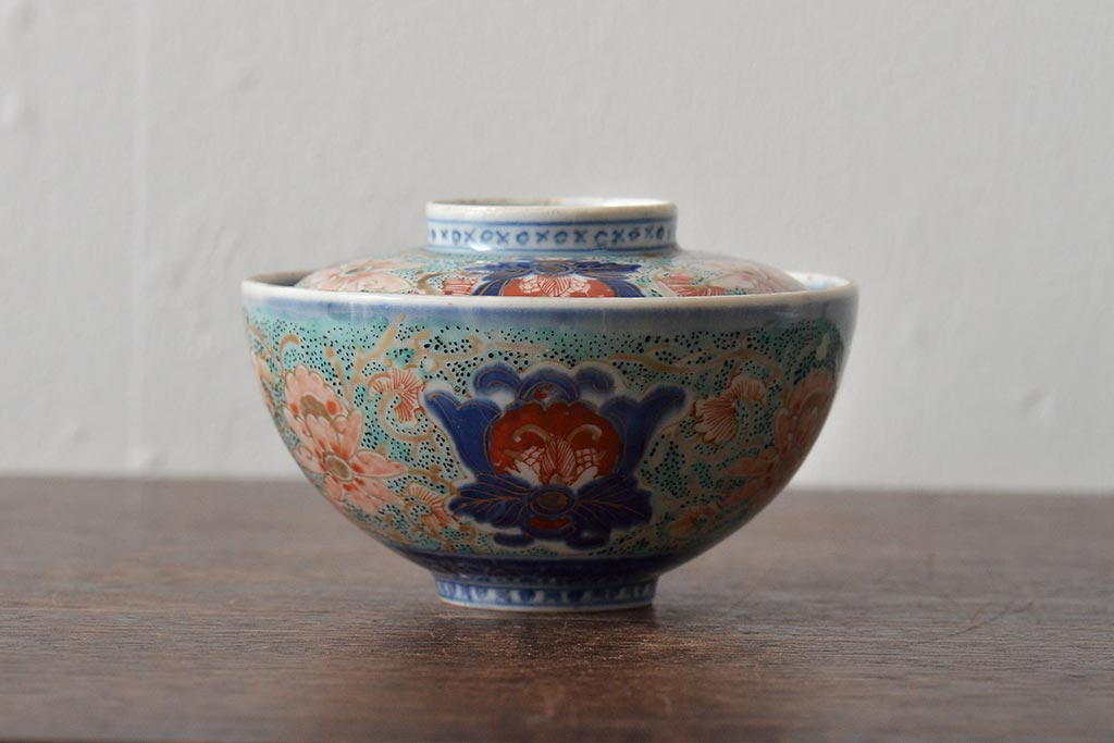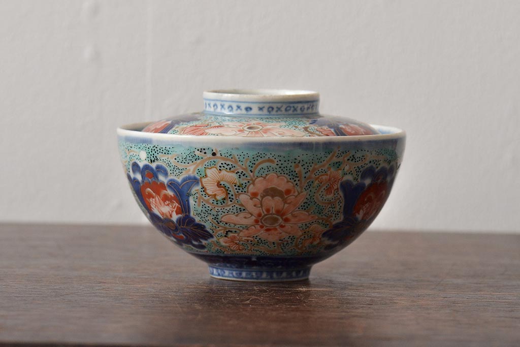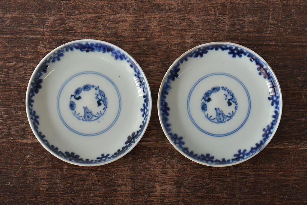 アンティーク雑貨 幕末〜明治 富長貴春銘 色絵染付蓋茶碗2客セット(和食器)(R-043102)