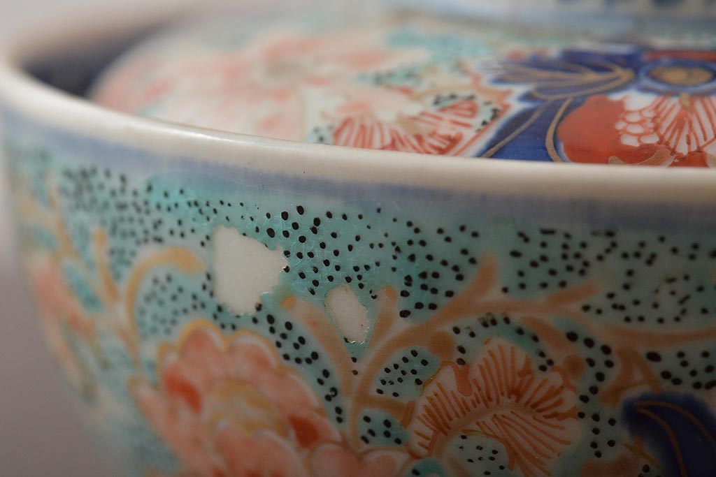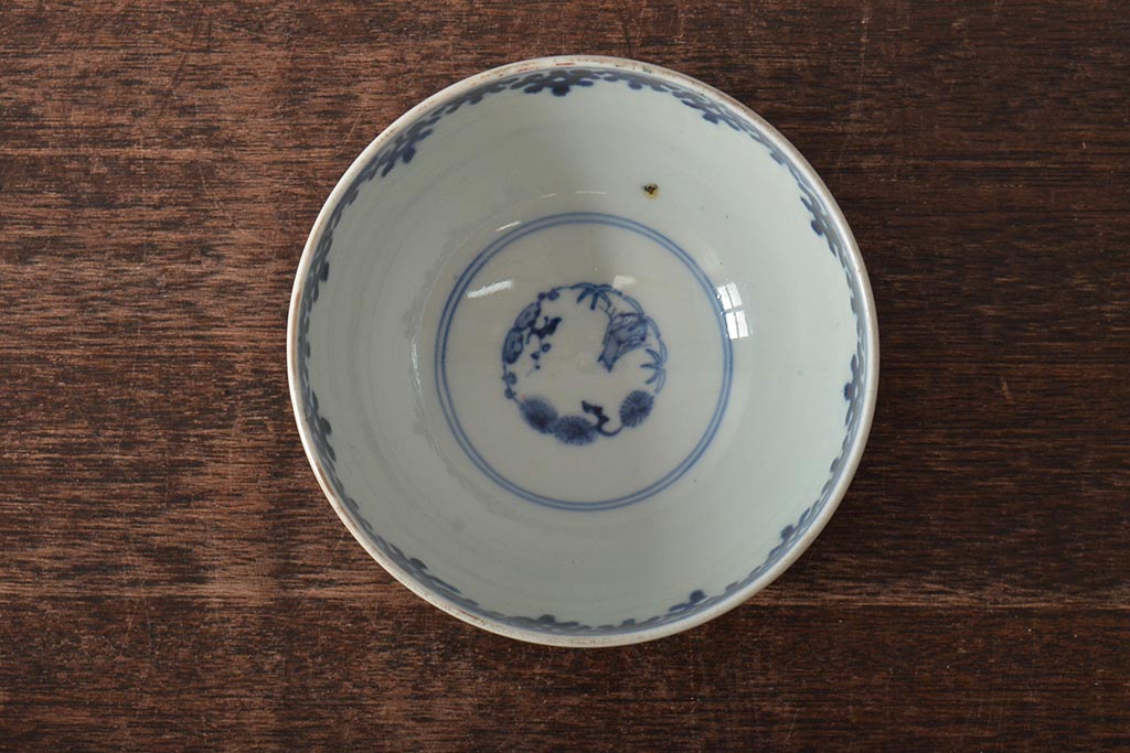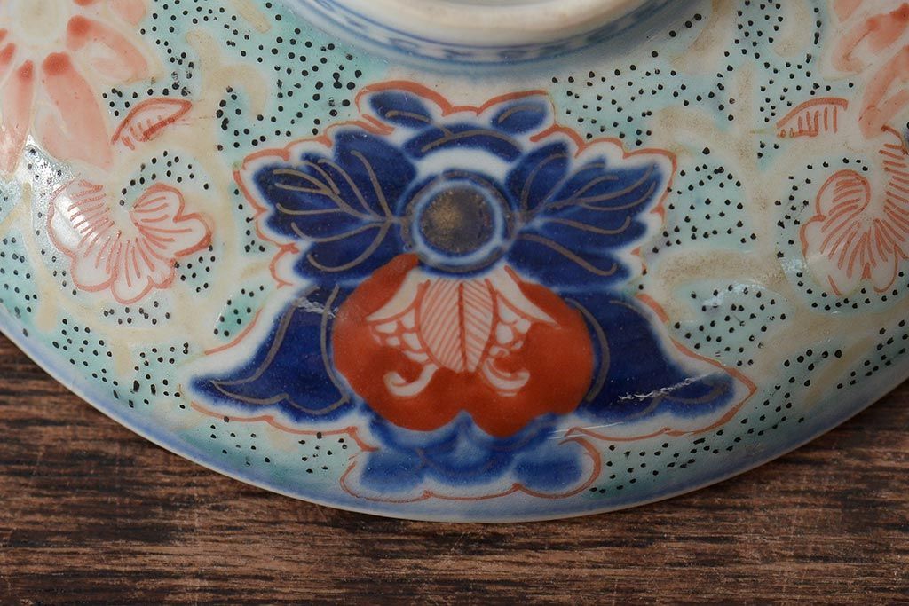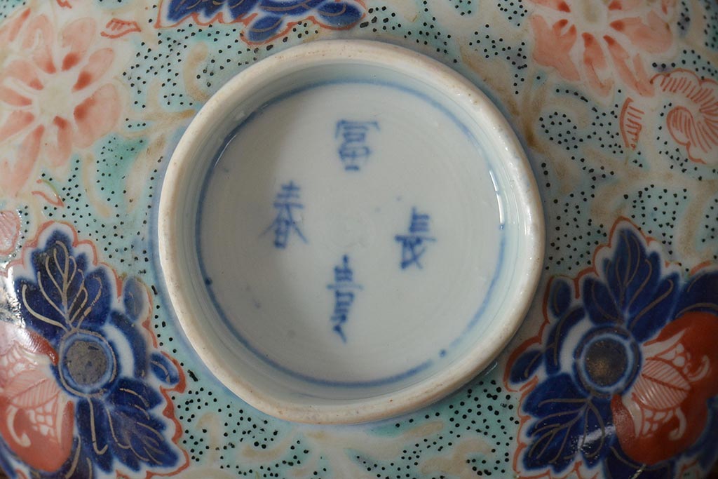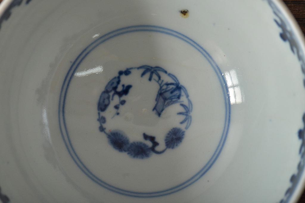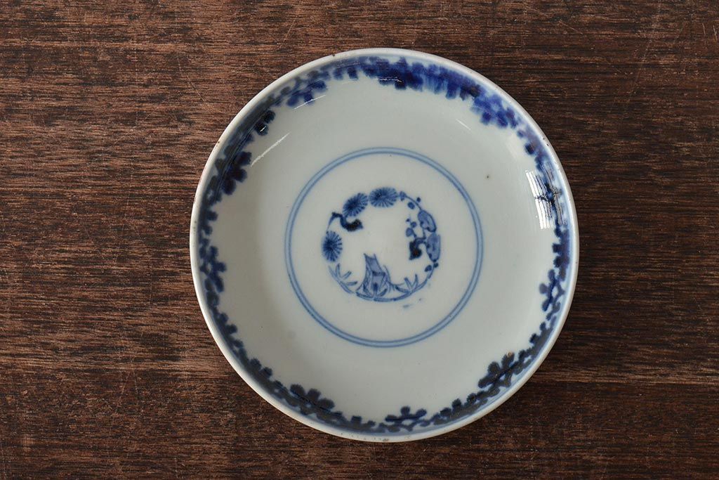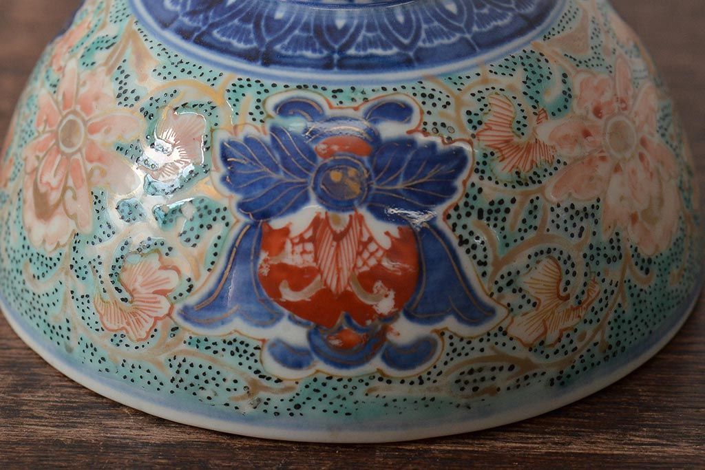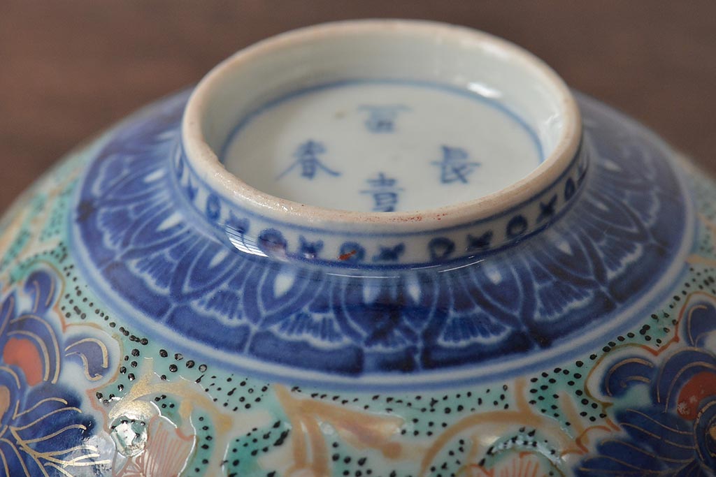 アンティーク雑貨 幕末〜明治 富長貴春銘 色絵染付蓋茶碗2客セット(和食器)(R-043102)