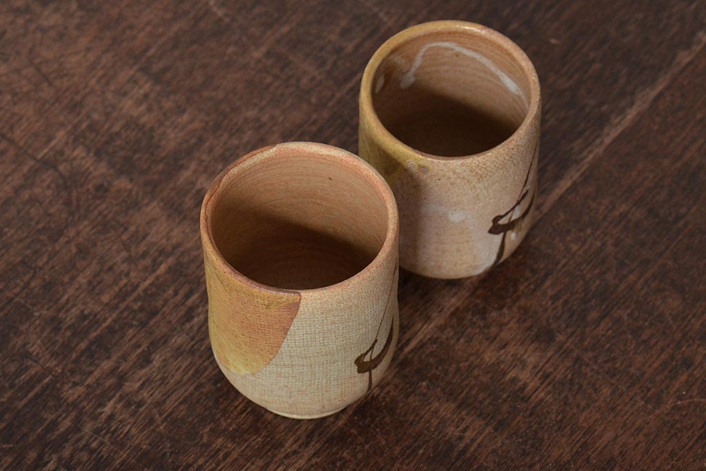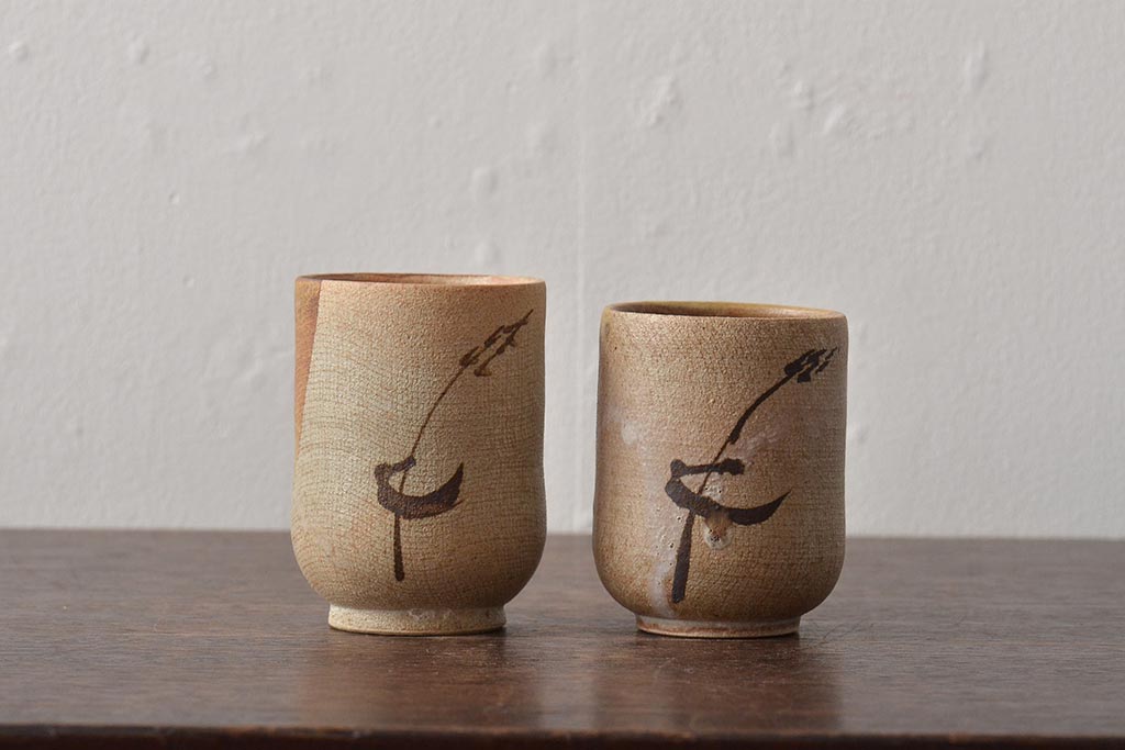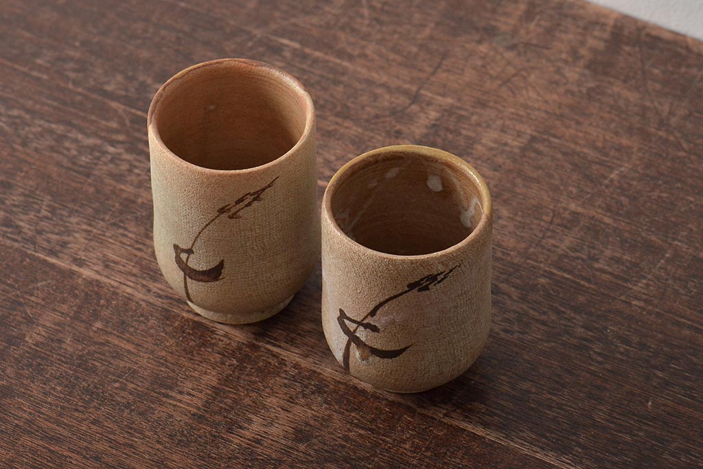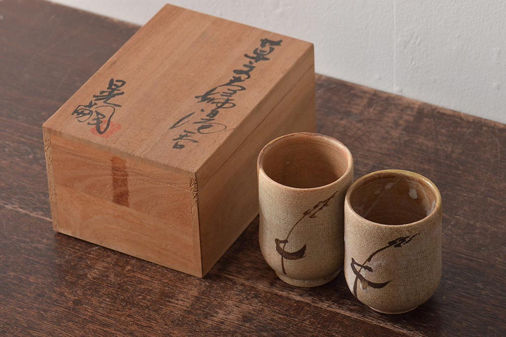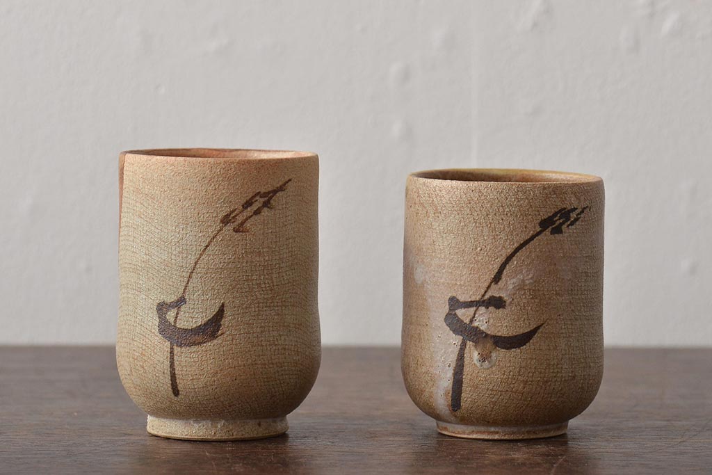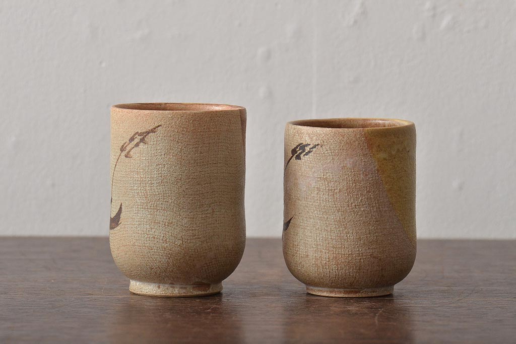 ラフジュ工房> 伝統工芸品> 笠間焼 > 未使用 笠間焼 中野晃嗣 草文夫婦湯呑(共箱、和食器)(R-043469)