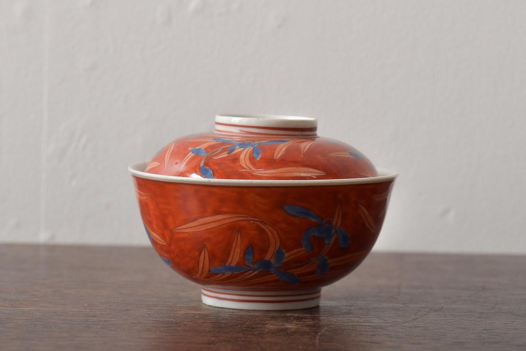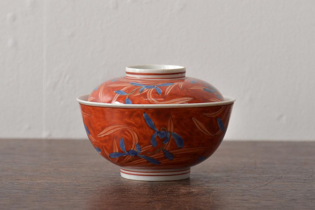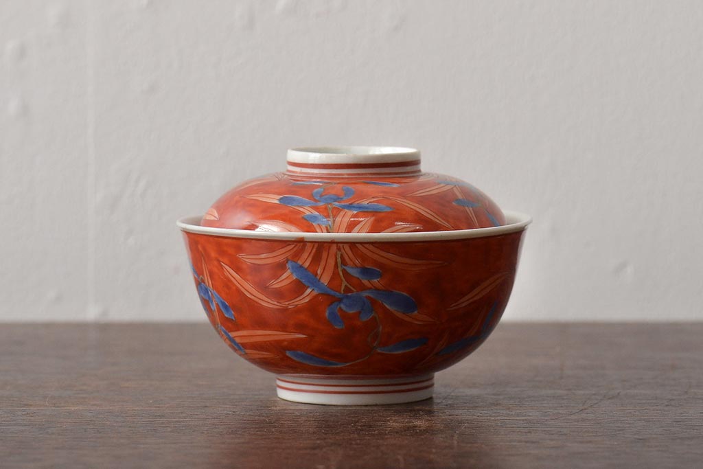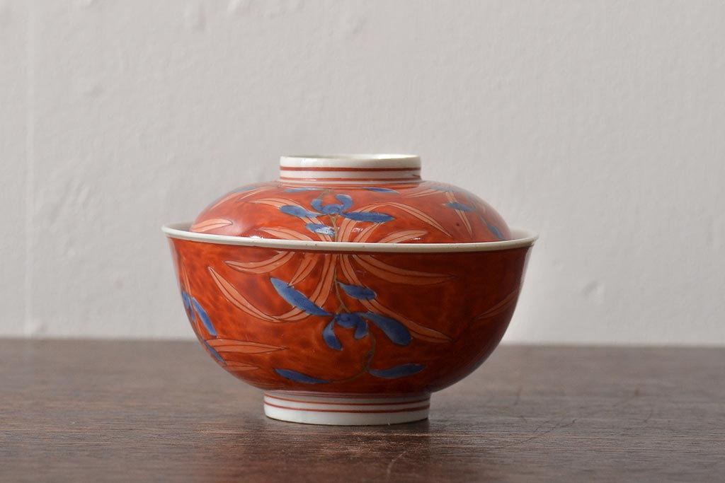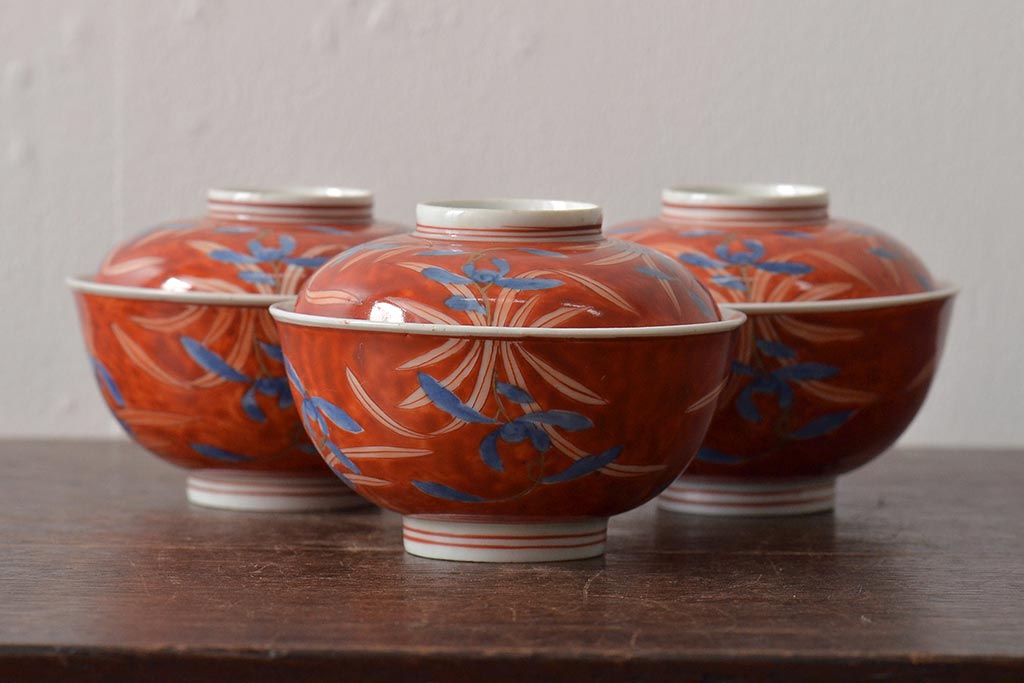ラフジュ工房> 和食器・茶道具> お椀・茶碗 > アンティーク雑貨 江戸期 古伊万里 赤絵蘭模様蓋茶碗3客セット(和食器)(R-043103)
