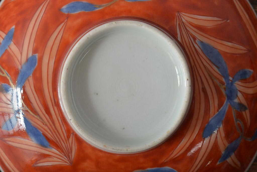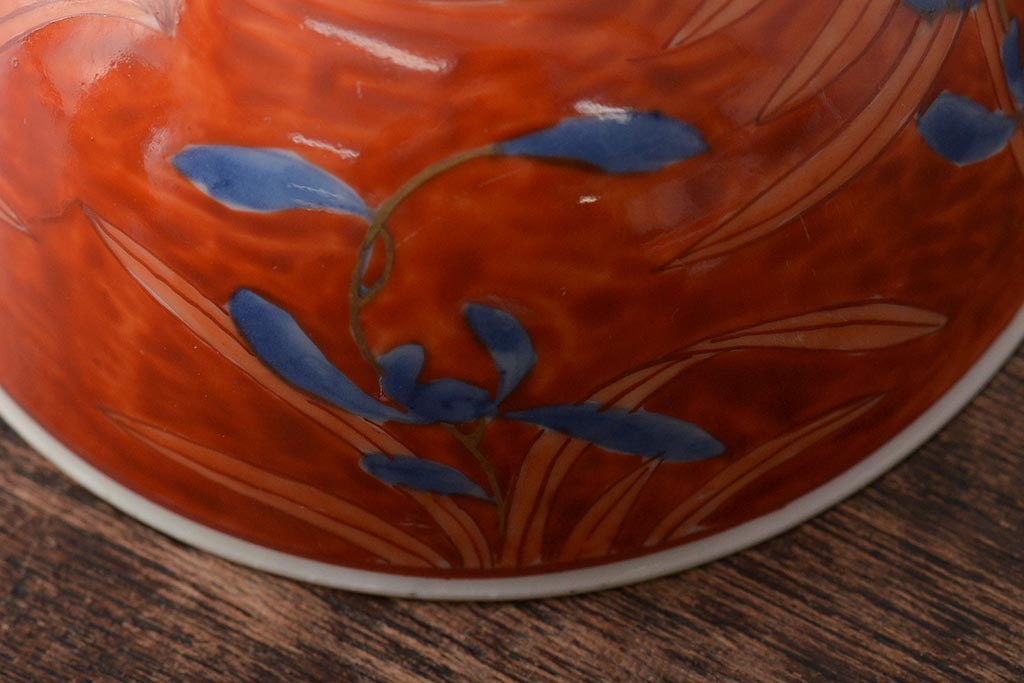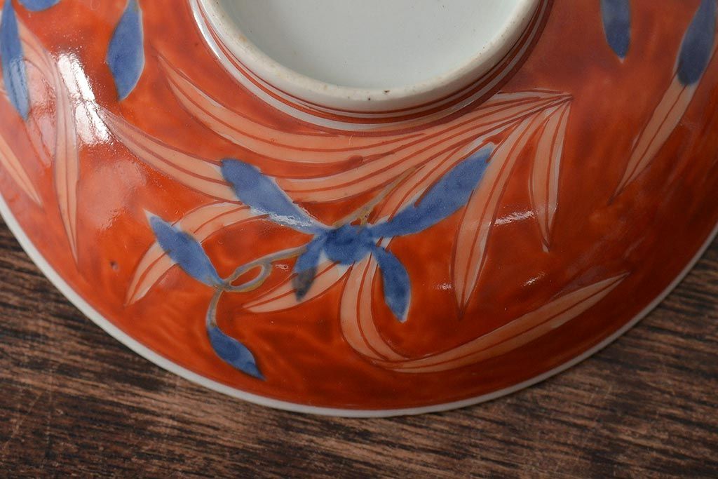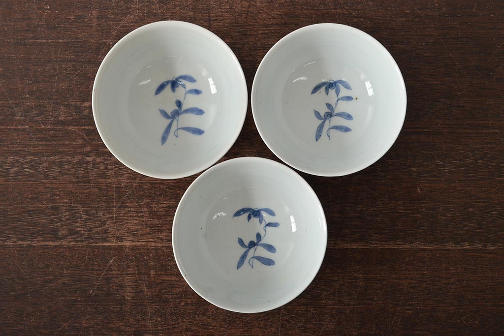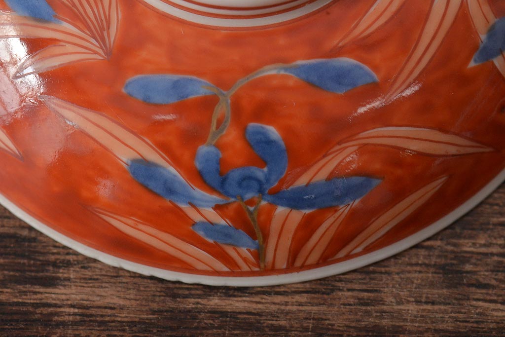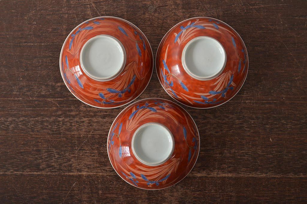 ラフジュ工房> 骨董・美術品> 骨董-陶磁器 > アンティーク雑貨 江戸期 古伊万里 赤絵蘭模様蓋茶碗3客セット(和食器)(R-043103)