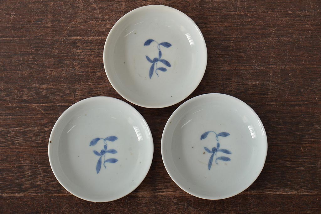アンティーク雑貨 江戸期 古伊万里 赤絵蘭模様蓋茶碗3客セット(和食器)(R-043103)