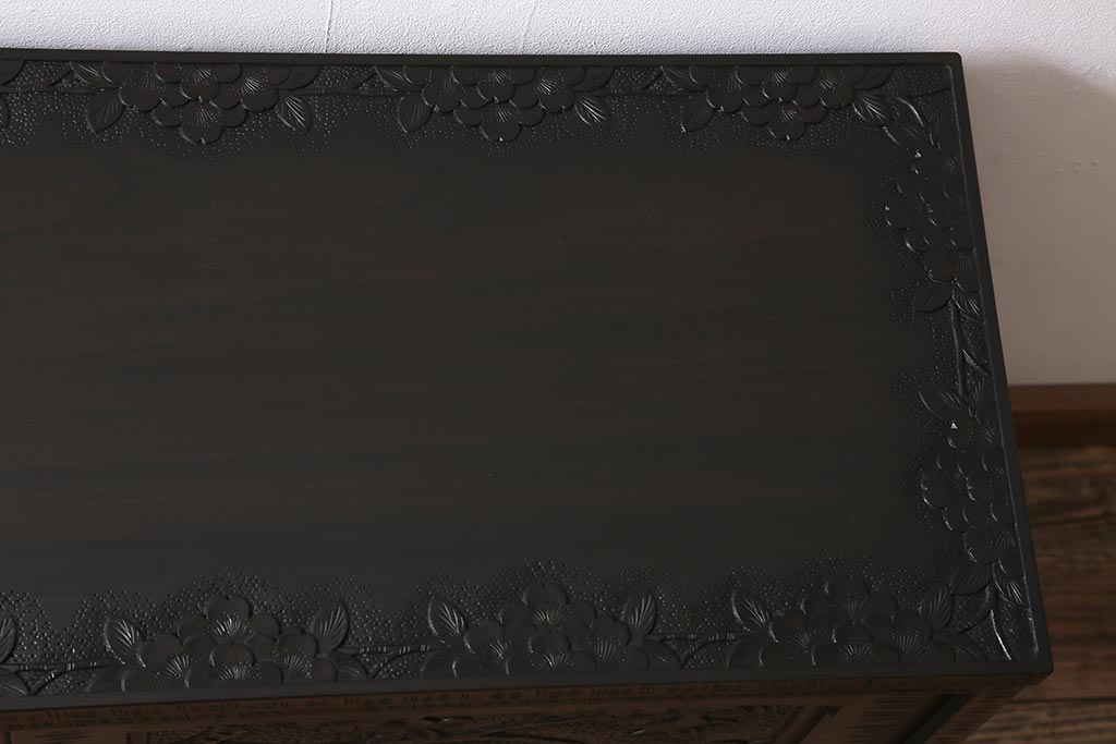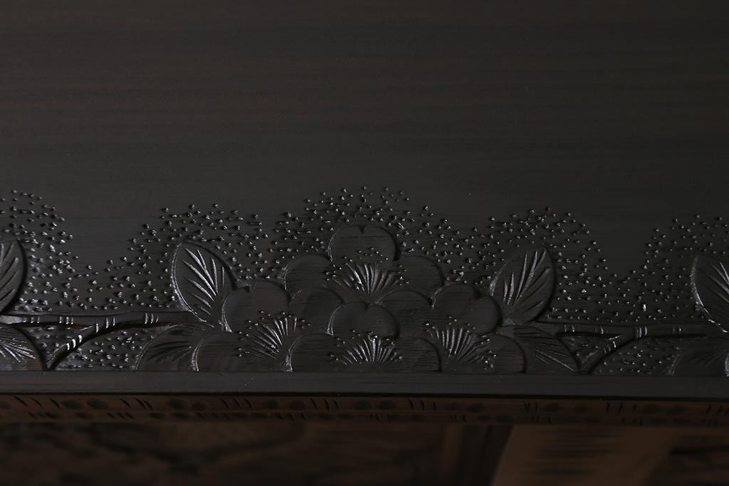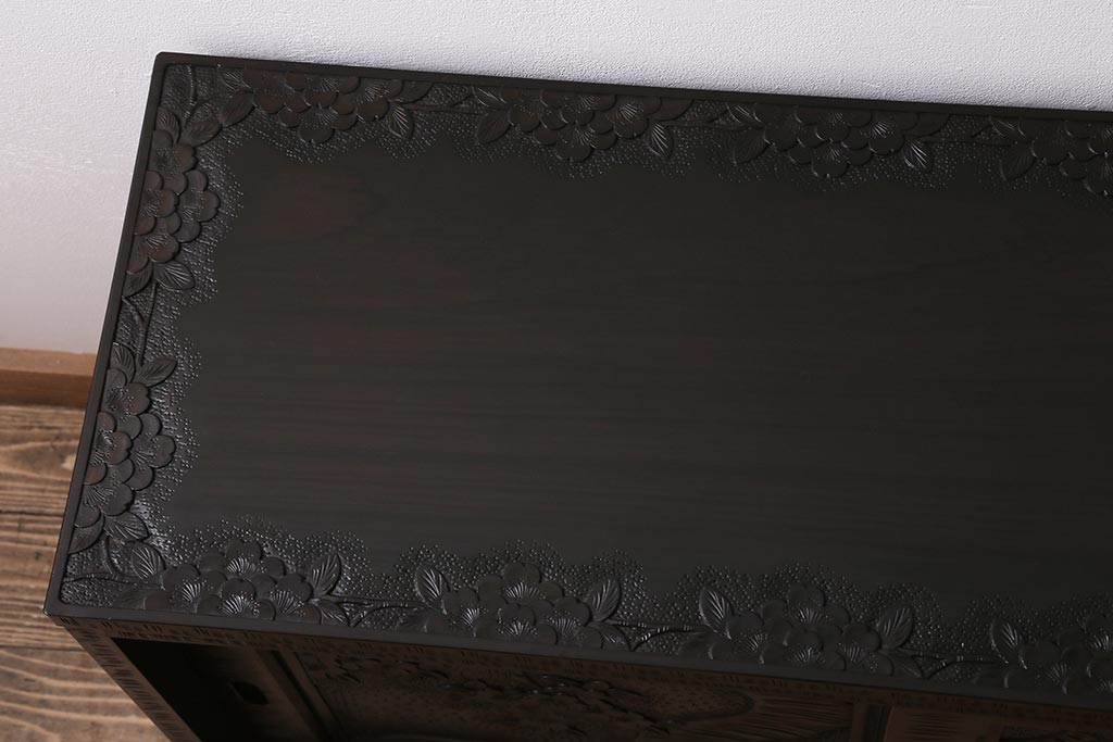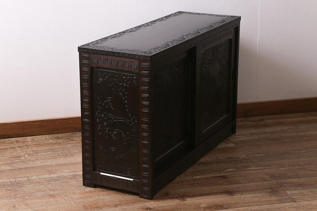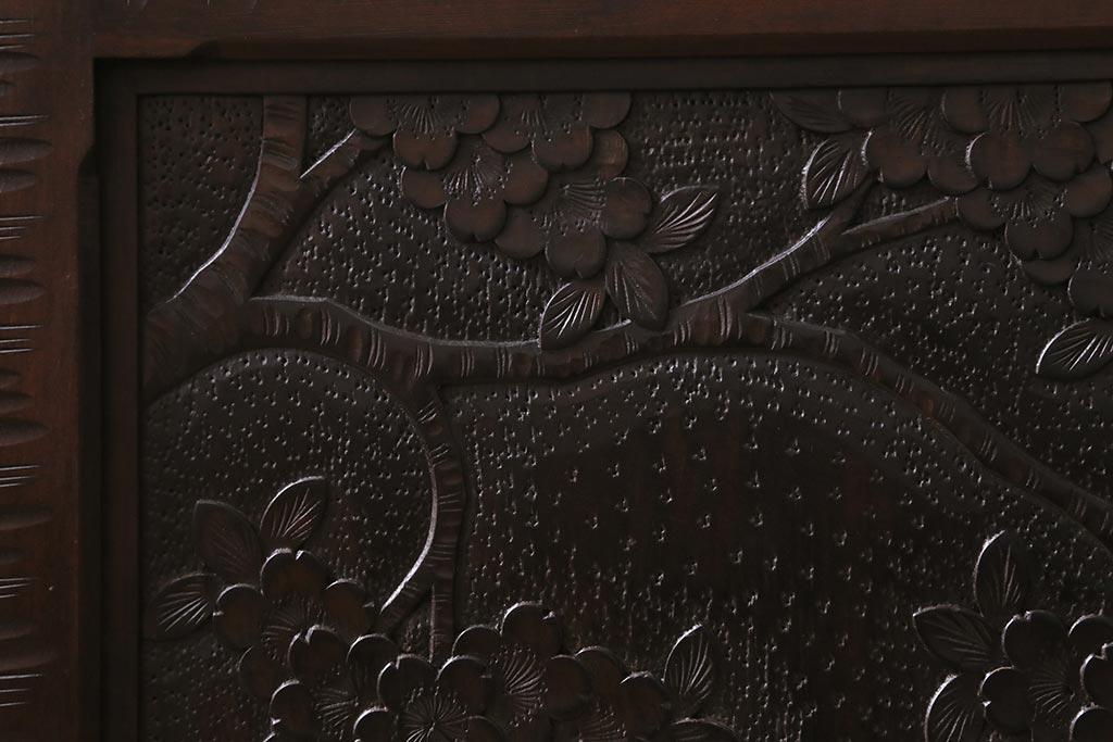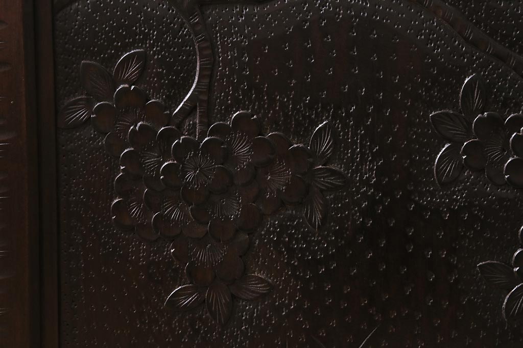 中古 美品 軽井沢彫り 美しい桜の意匠が散りばめられた戸棚(収納棚、キャビネット)(R-043502)です。