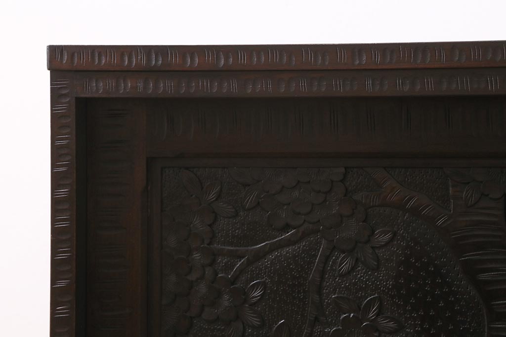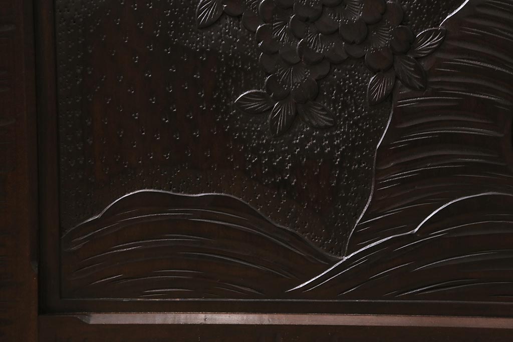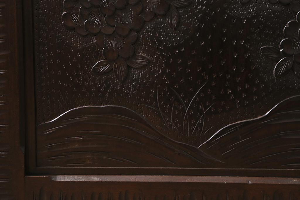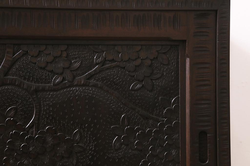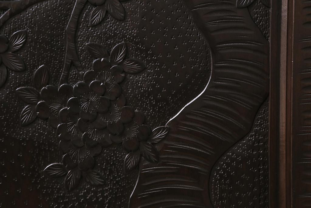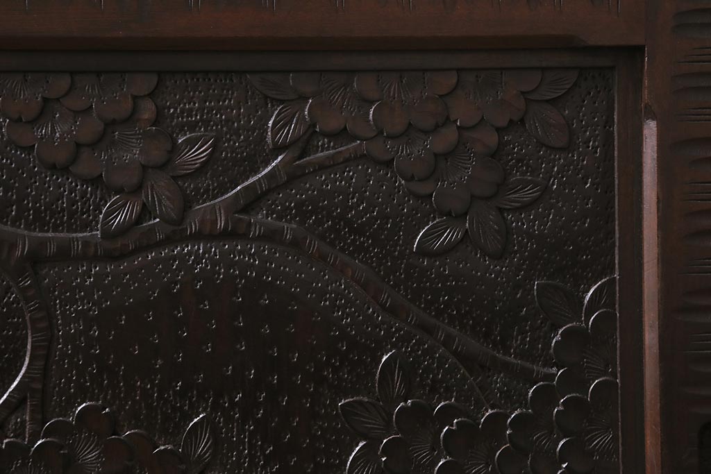 中古 美品 軽井沢彫り 美しい桜の意匠が散りばめられた戸棚(収納棚、キャビネット)(R-043502)