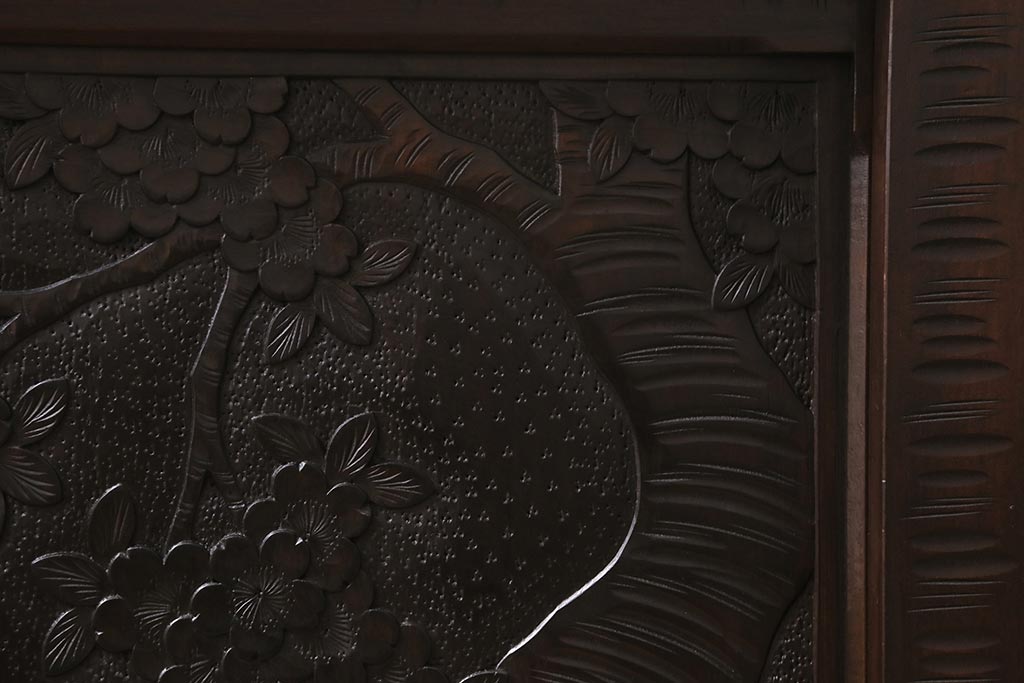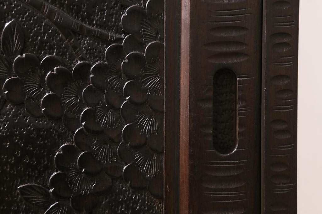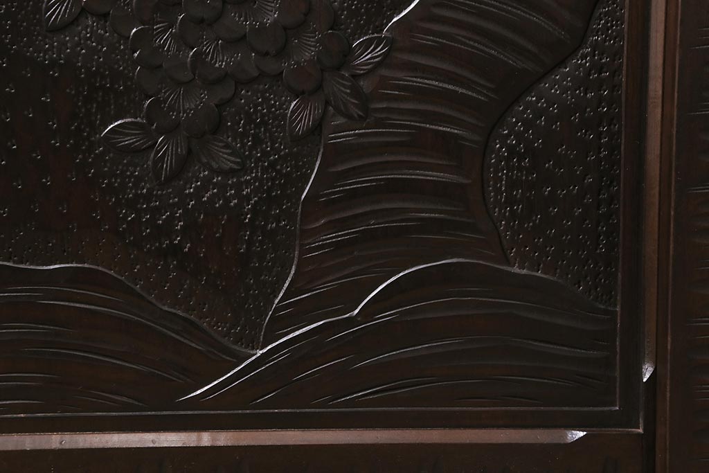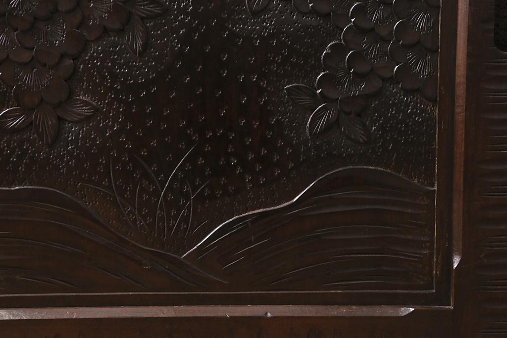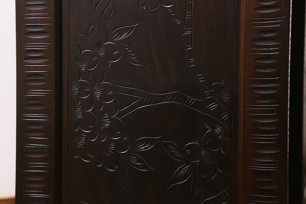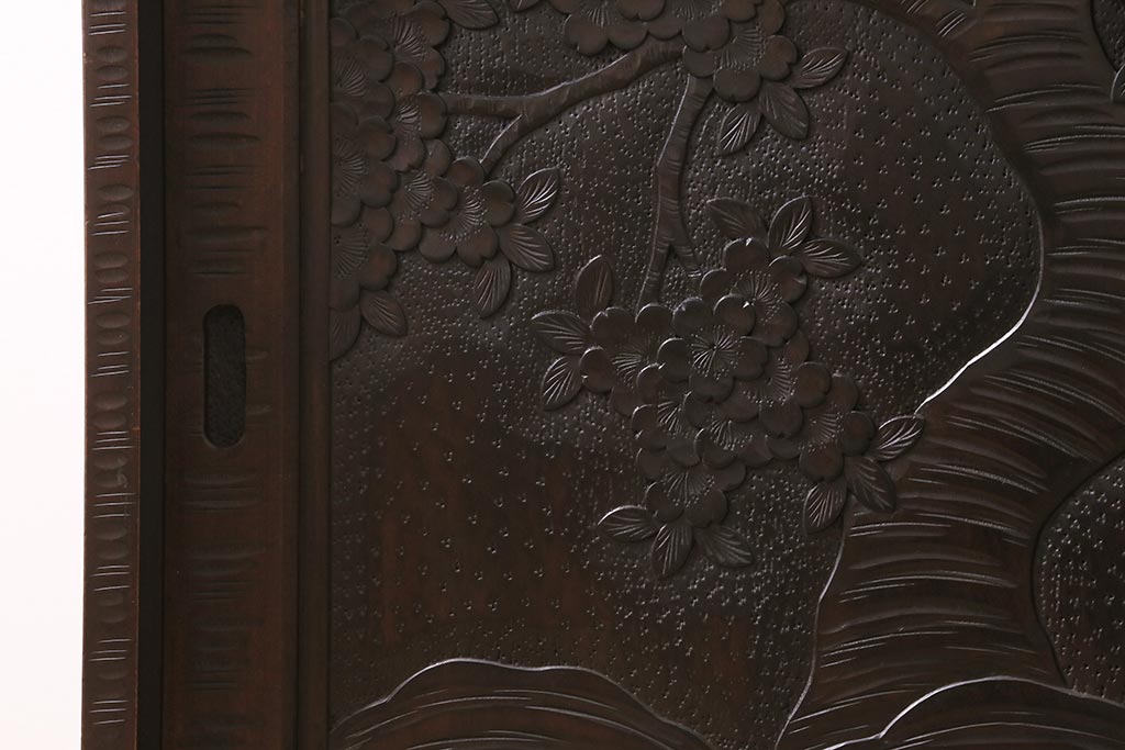 中古 美品 軽井沢彫り 美しい桜の意匠が散りばめられた戸棚(収納棚、キャビネット)(R-043502)
