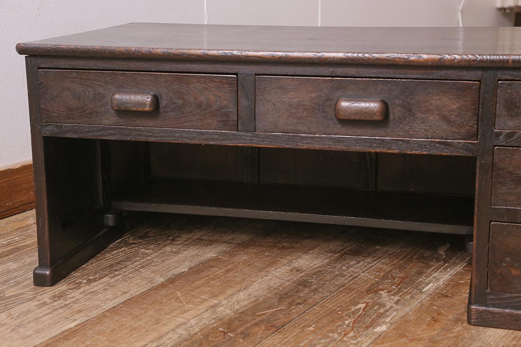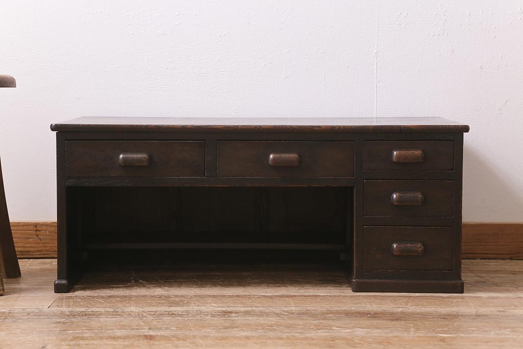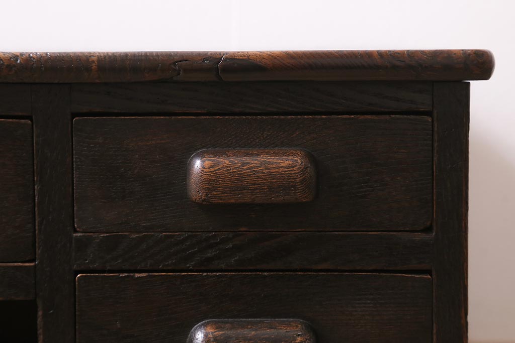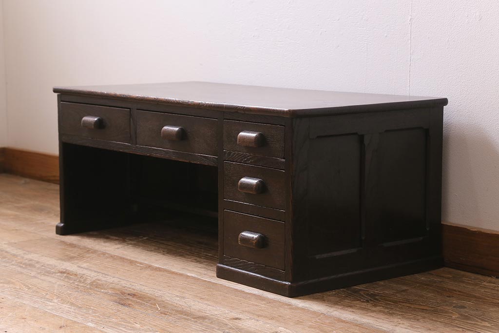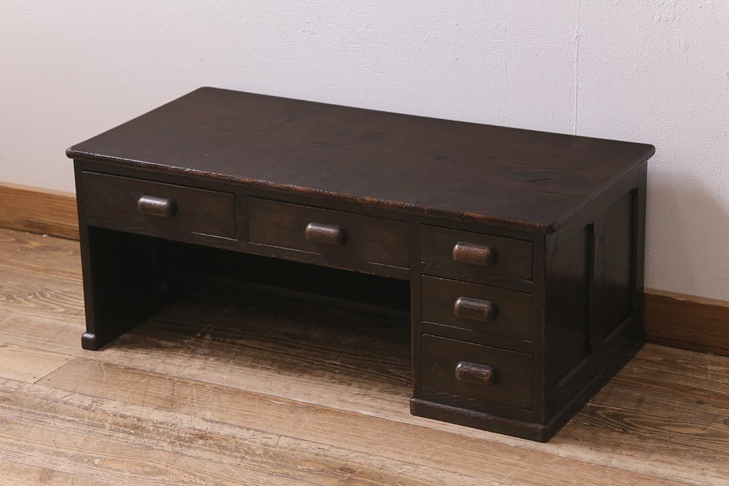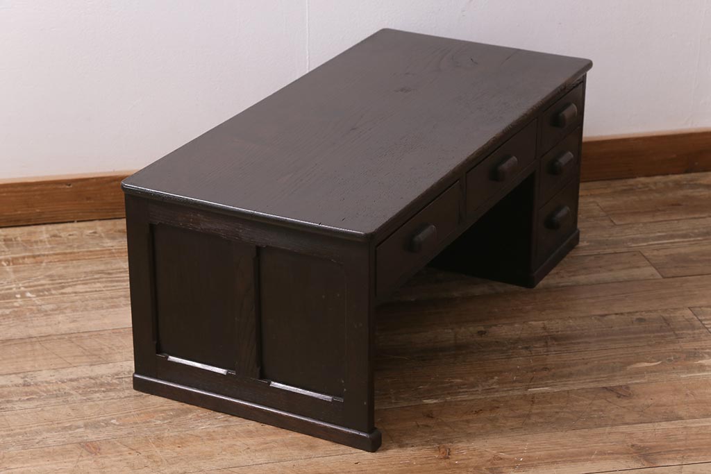アンティーク家具 和製アンティーク 大正昭和初期 栗材 天板一枚板 木の魅力をたっぷり楽しめる文机(ローテーブル、片袖机)(R-043471)