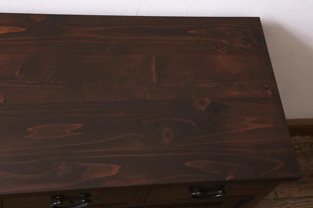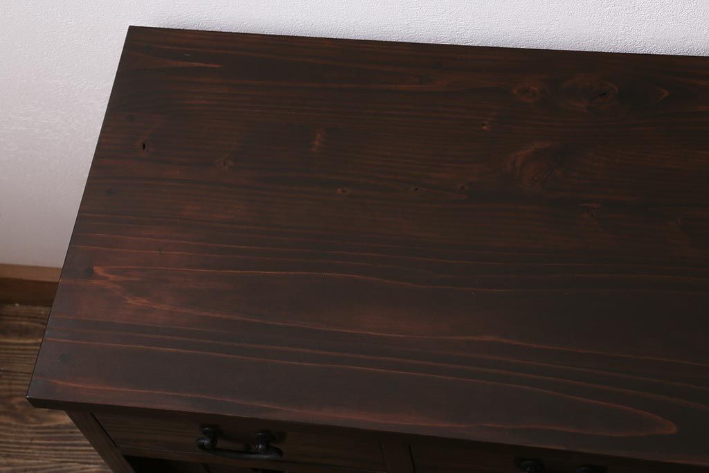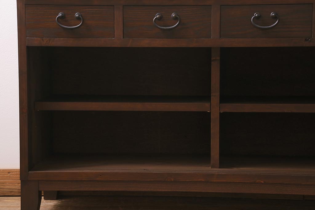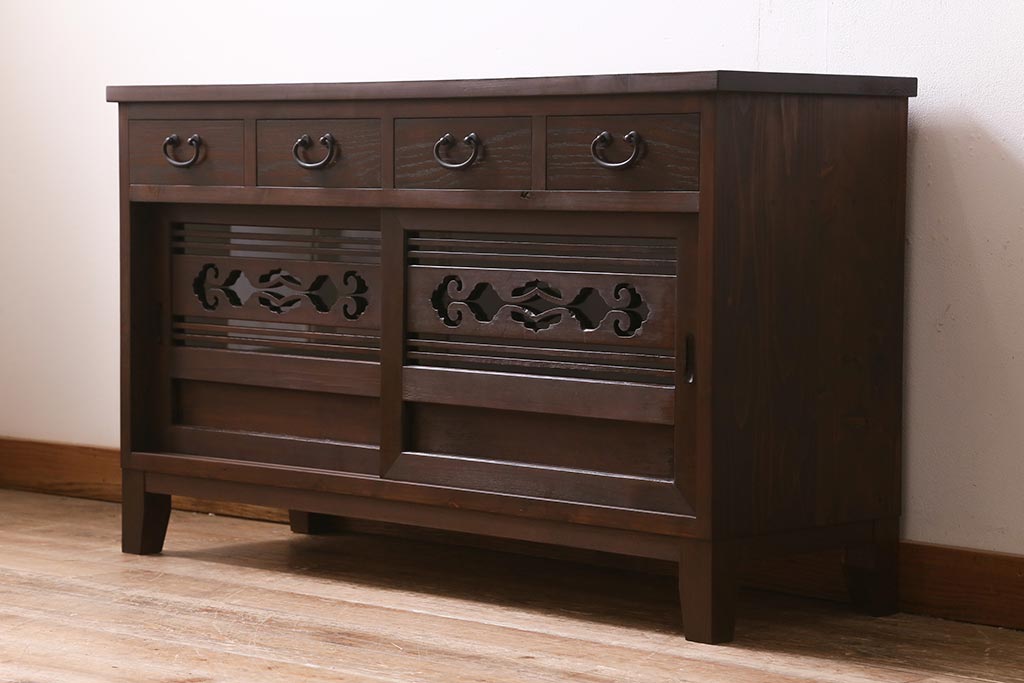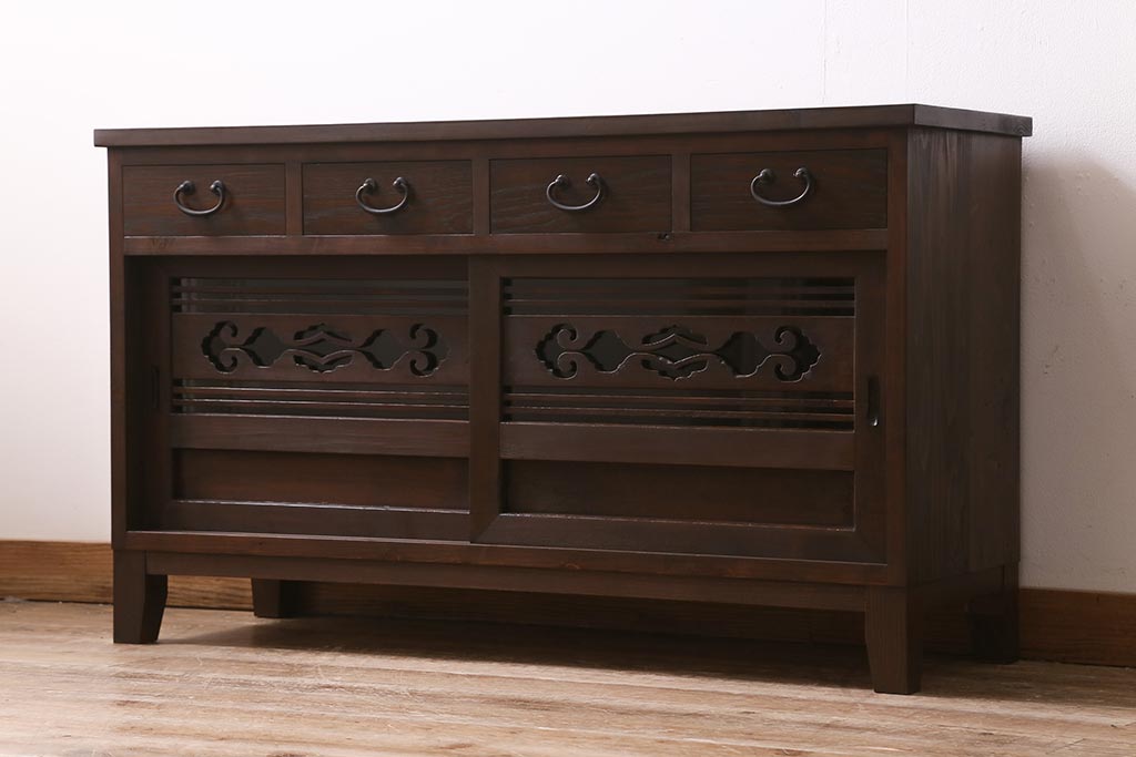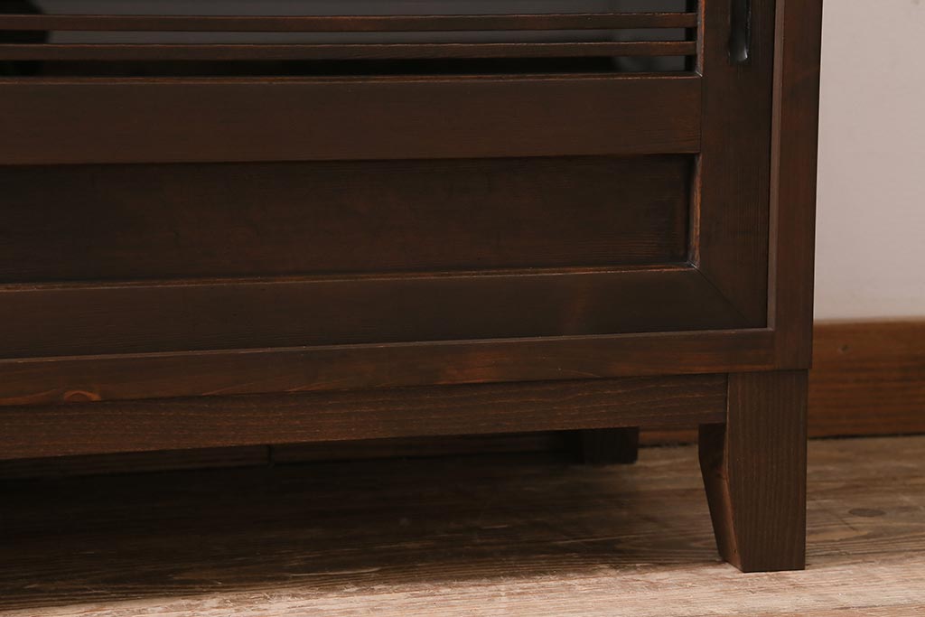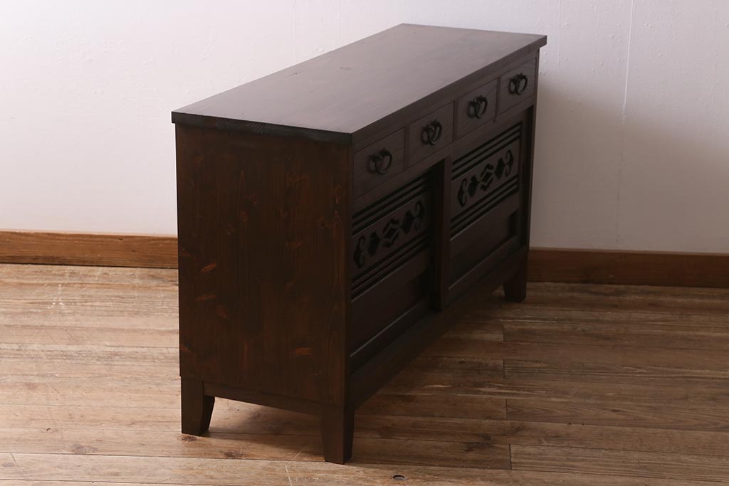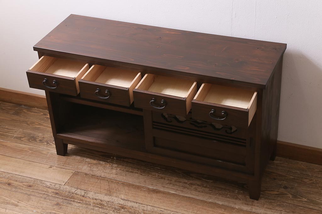ラフジュ工房オリジナル 古建具リメイク 引き出し付き 明治大正期の味わい深いアンティーク建具を使ったローボード(テレビ台、収納棚、戸棚)(R-043472)
