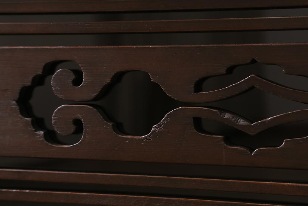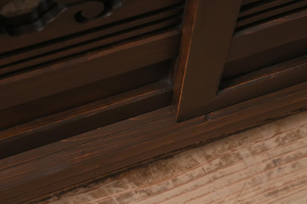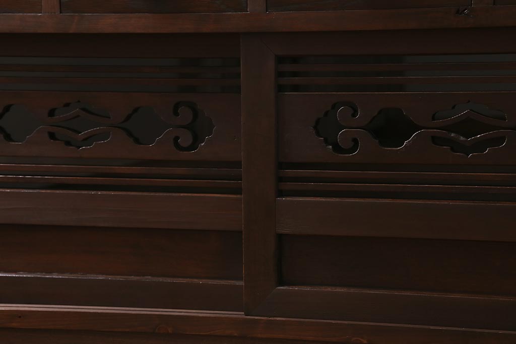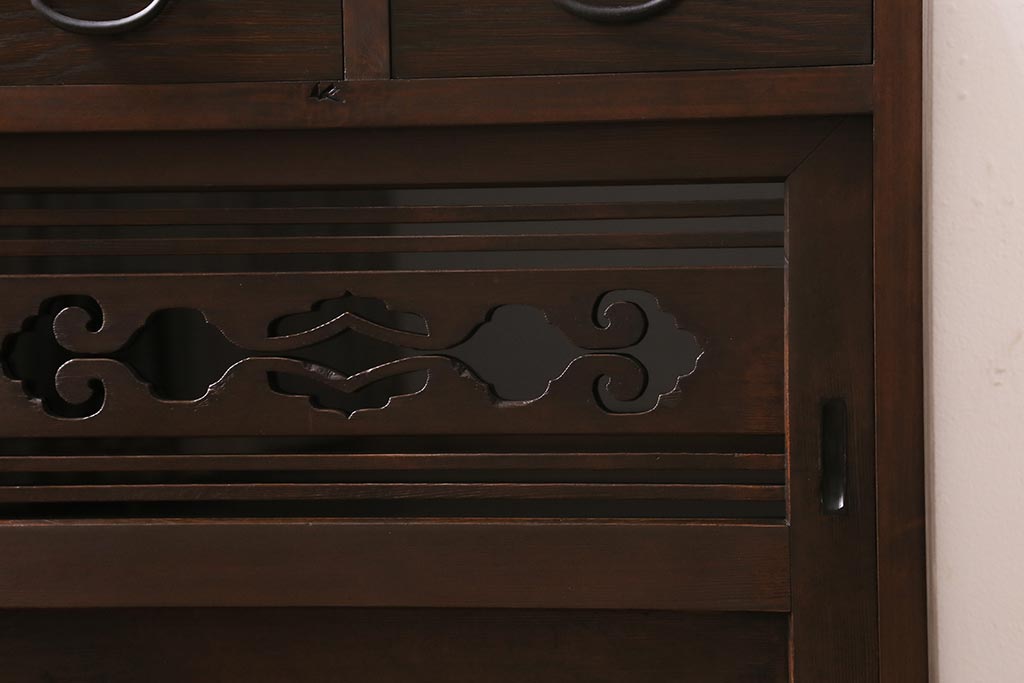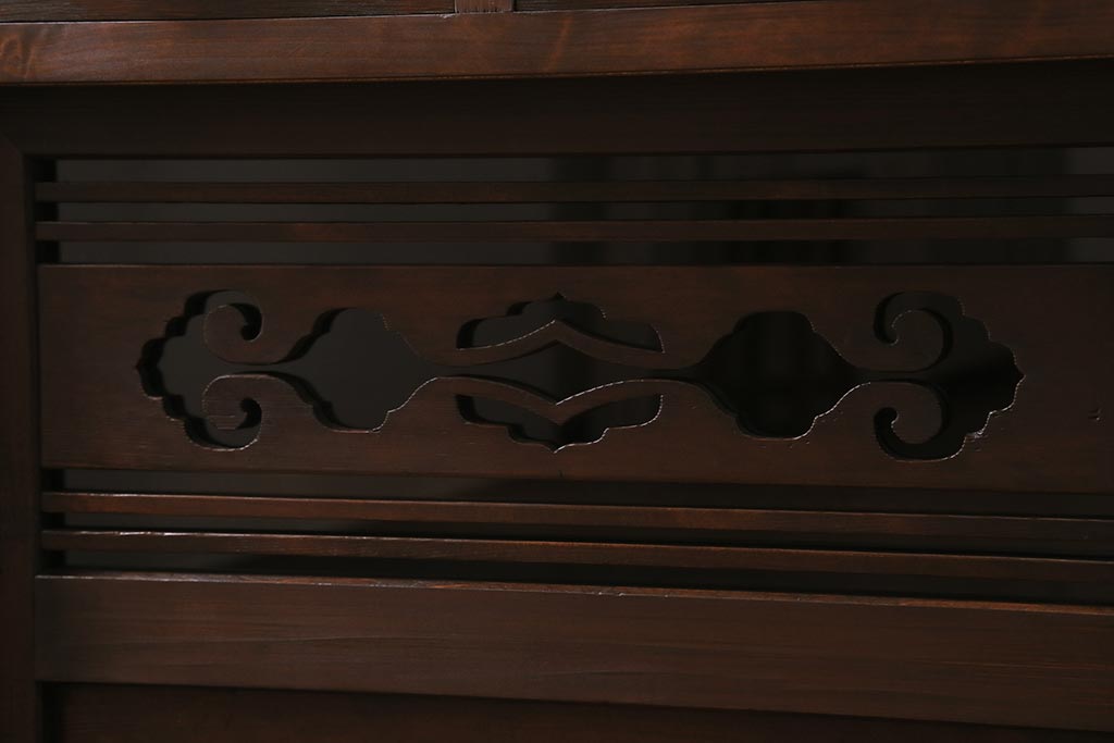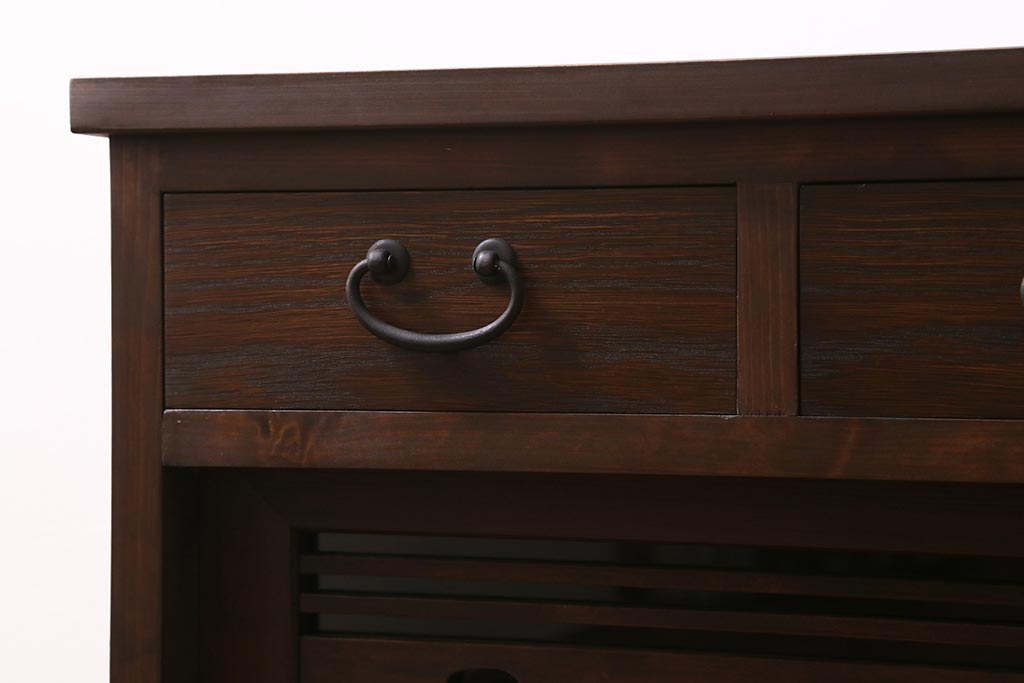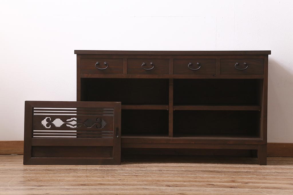 ラフジュ工房> キャビネット・戸棚> テレビ台・ローボード > ラフジュ工房オリジナル 古建具リメイク 引き出し付き 明治大正期の味わい深いアンティーク建具を使ったローボード(テレビ台、収納棚、戸棚)(R-043472)