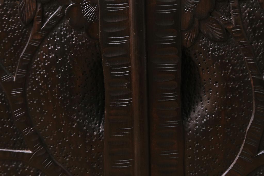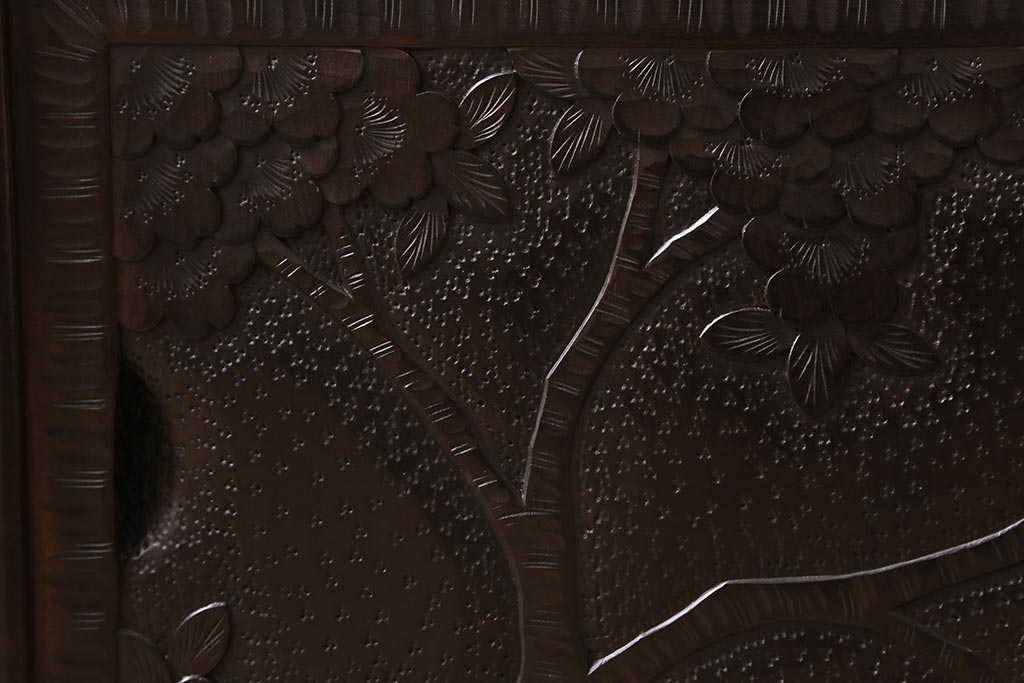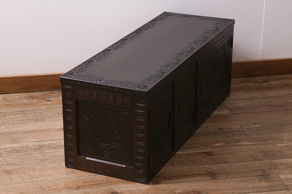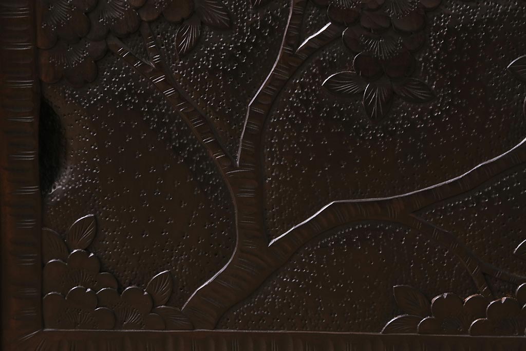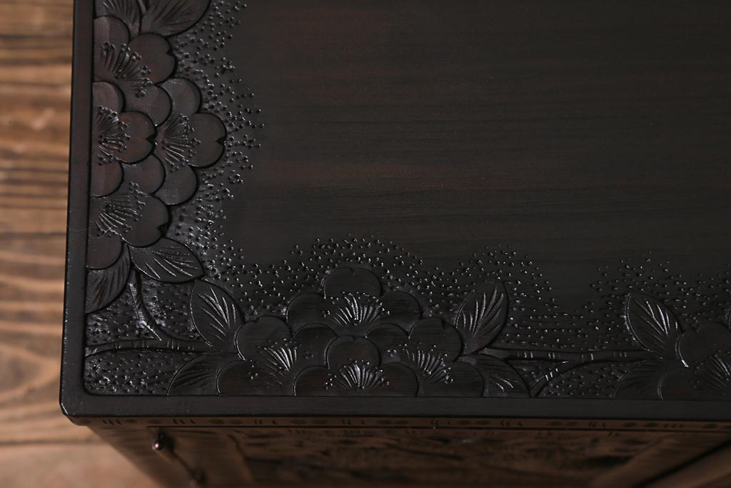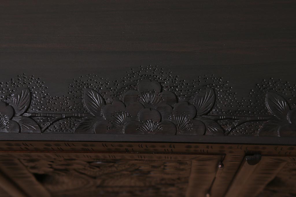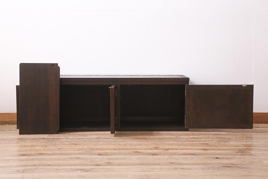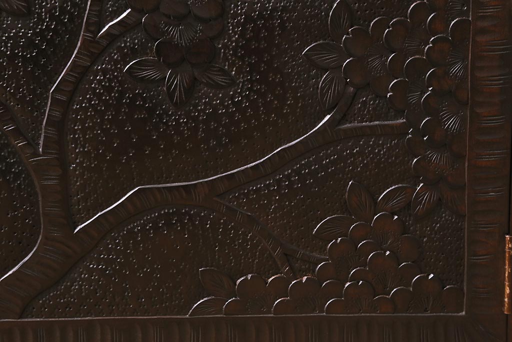 キャビネット・戸棚> テレビ台・ローボード > 中古 美品 軽井沢彫り レアな横長サイズ!美しい桜の意匠が目を惹く戸棚(収納棚、キャビネット、テレビ台、ローボード)(R-043503)