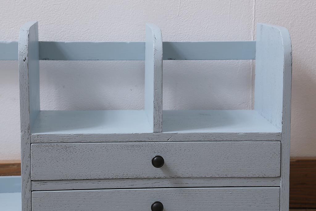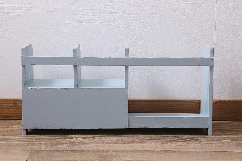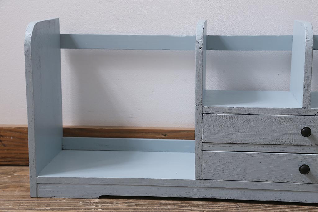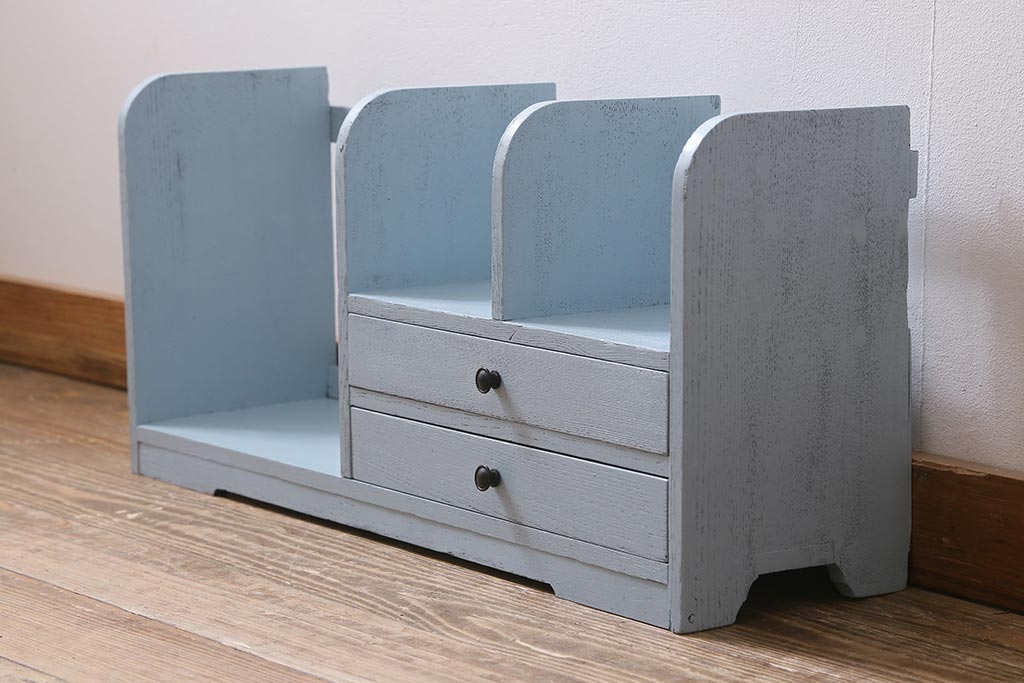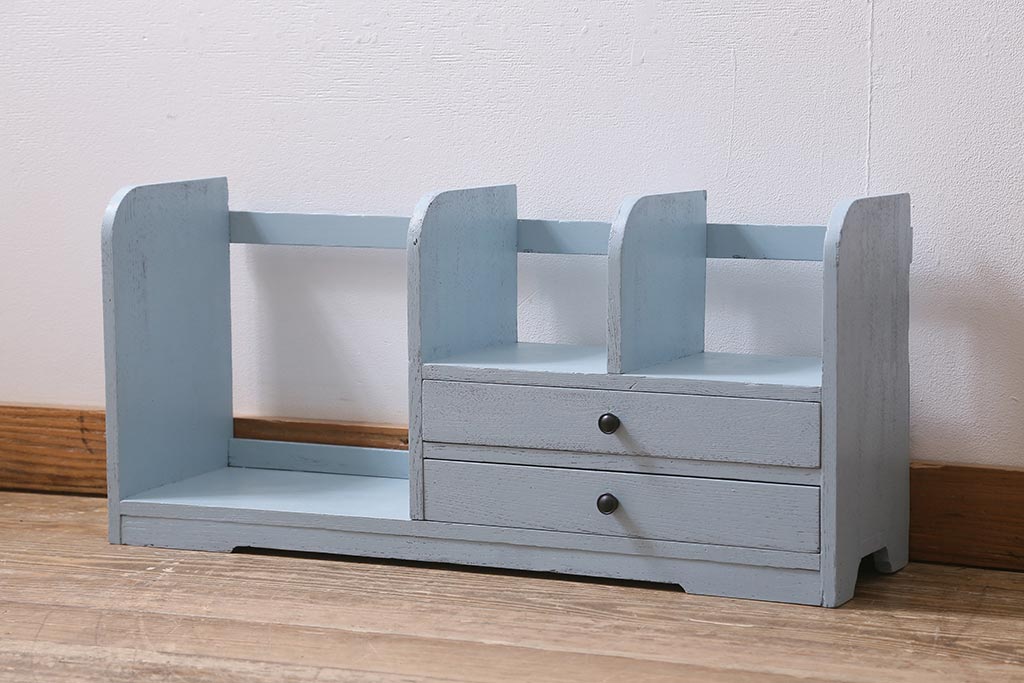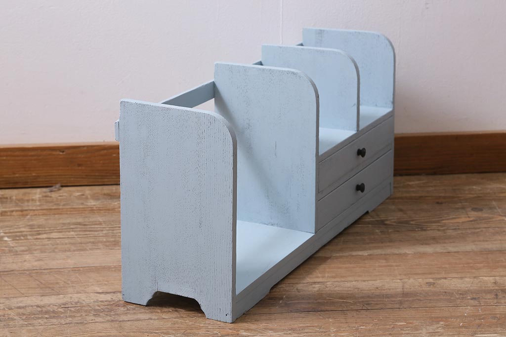 小物収納・トランク > レトロ雑貨 昭和中期 引き出し付き! お洒落なペイントカラーが目を惹く木製の本立て(ブックスタンド)(R-043505)